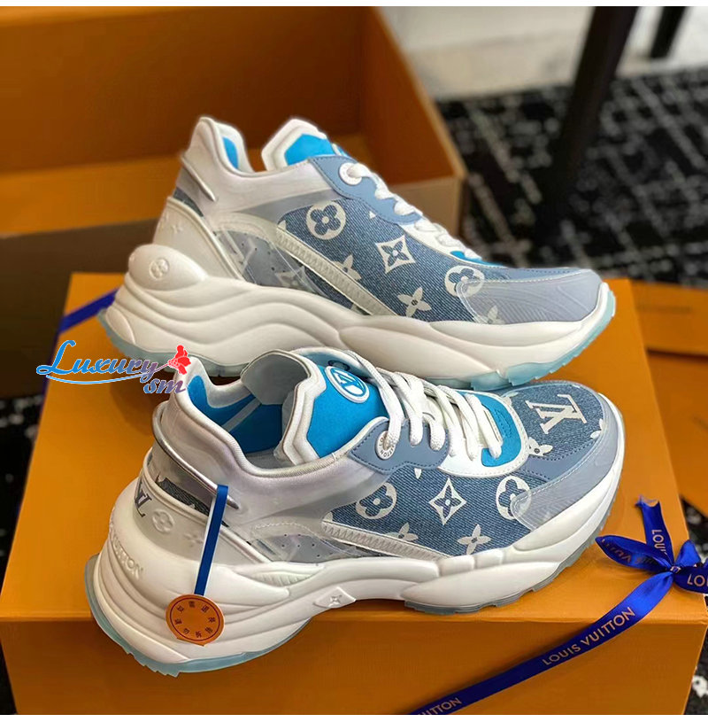 LOUIS VUITTON-1AB39N 루이비통 라이트 블루 모노그램 런 55 스니커즈 여성용