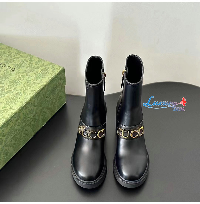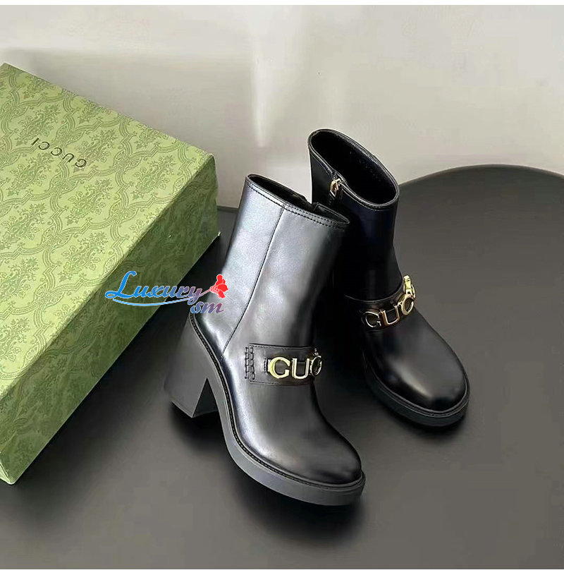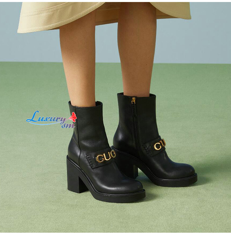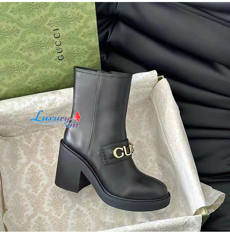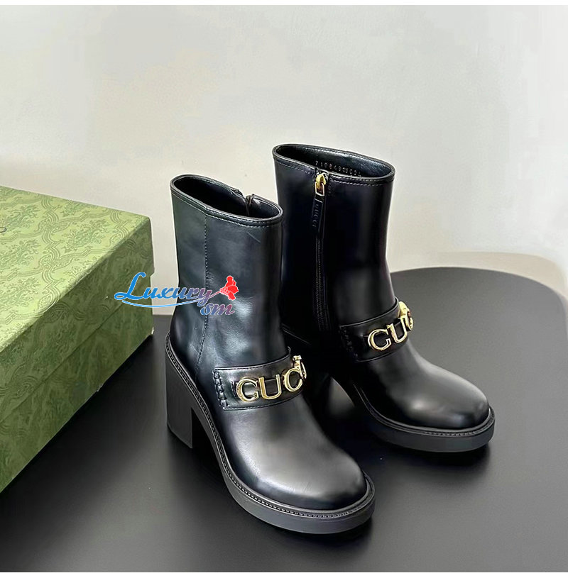 GUCCI-750538 1000 구찌 블랙 스크립트 로고 부츠 여성용
