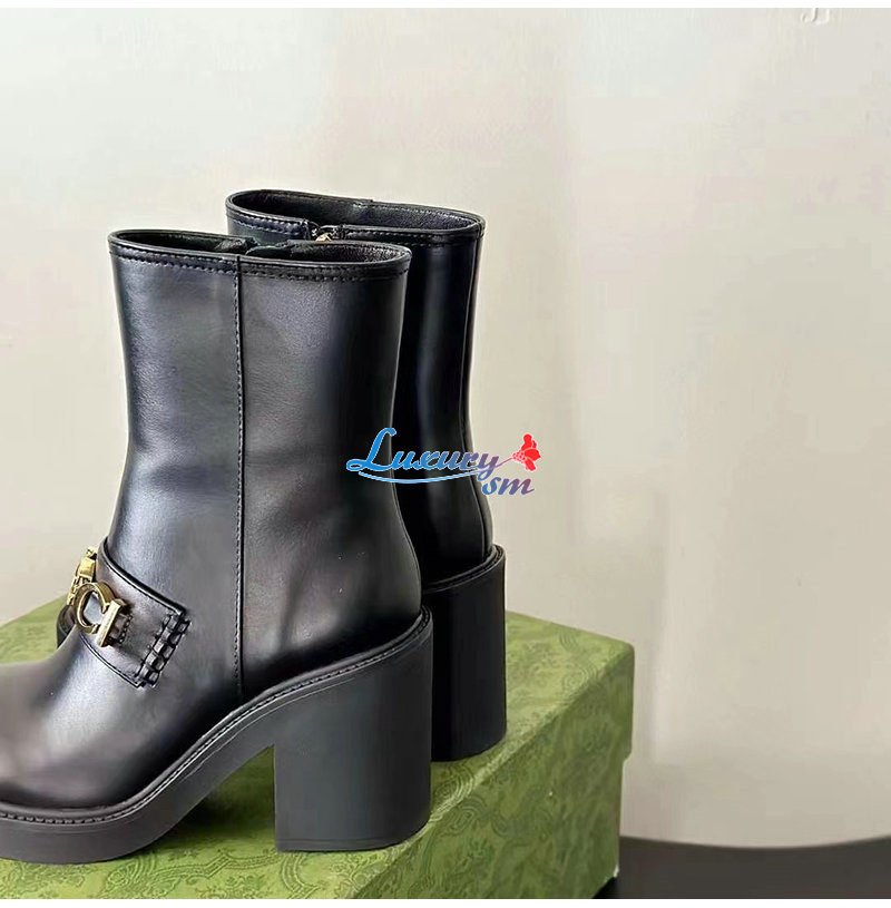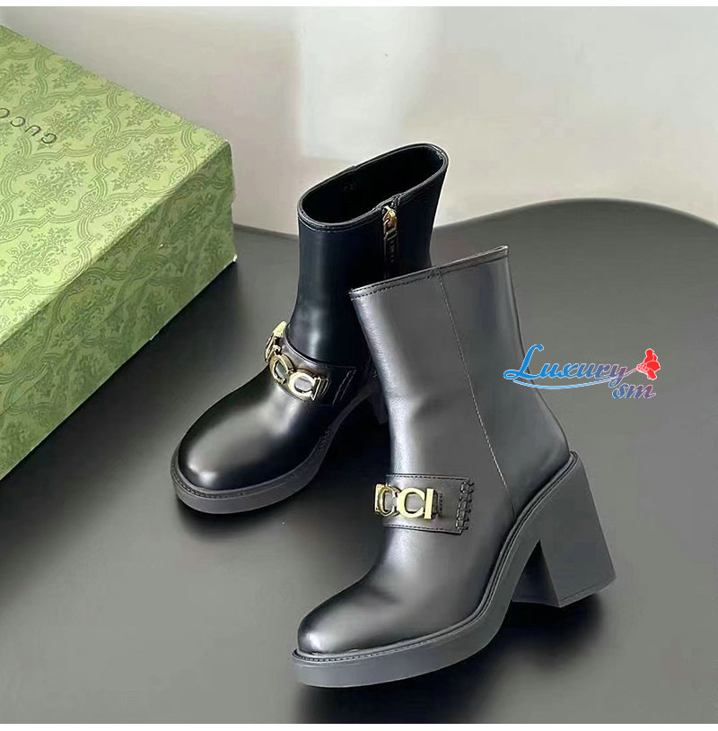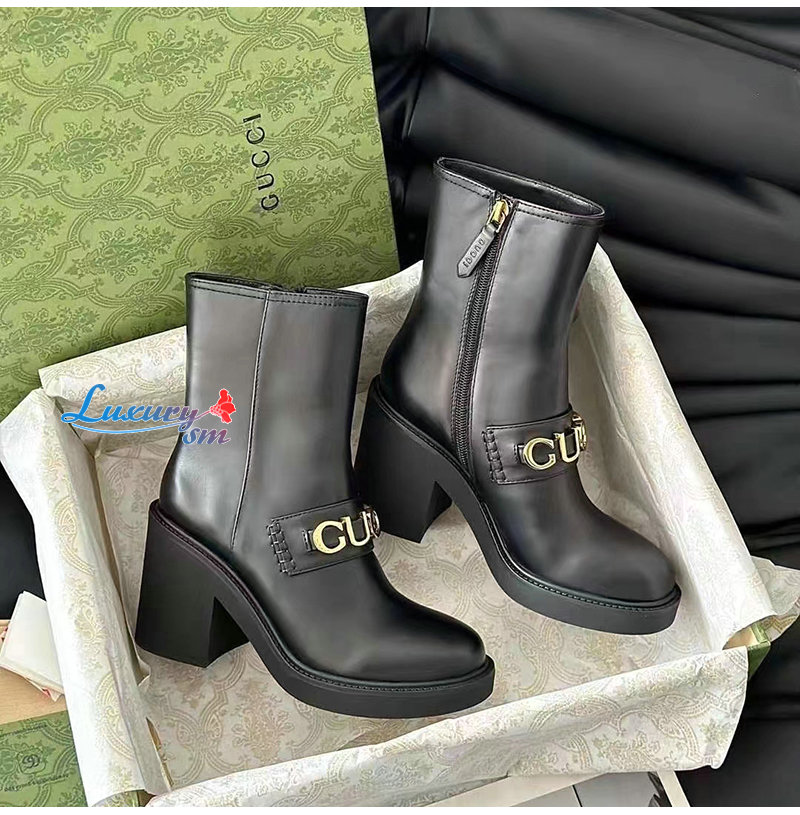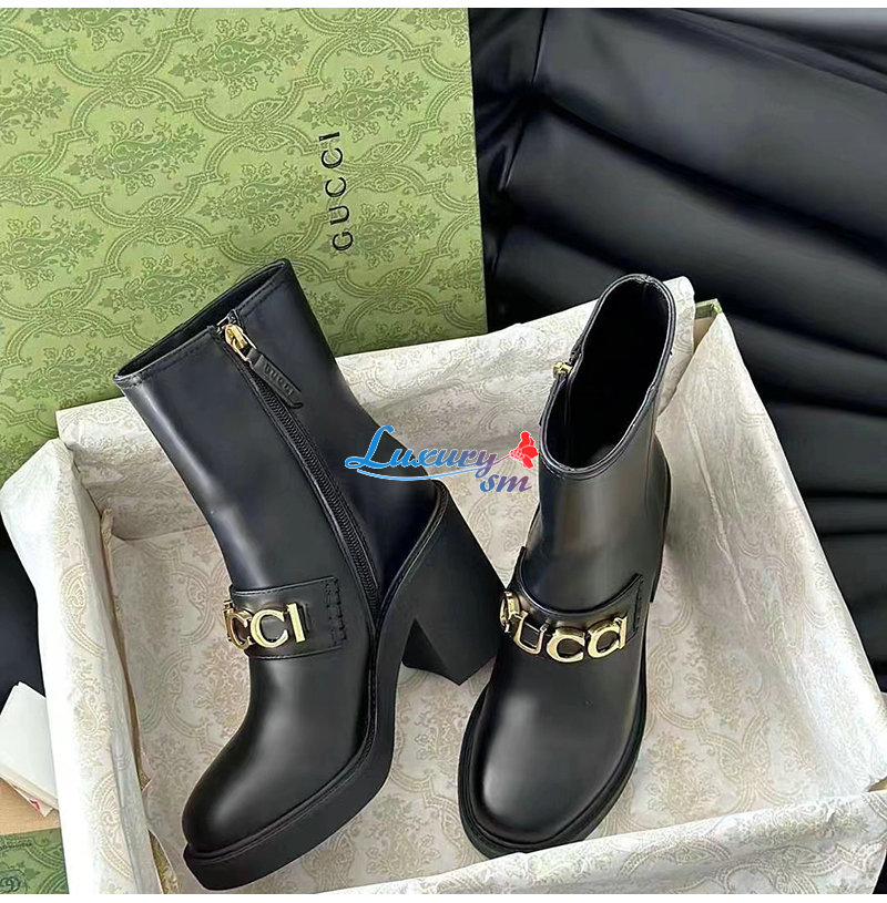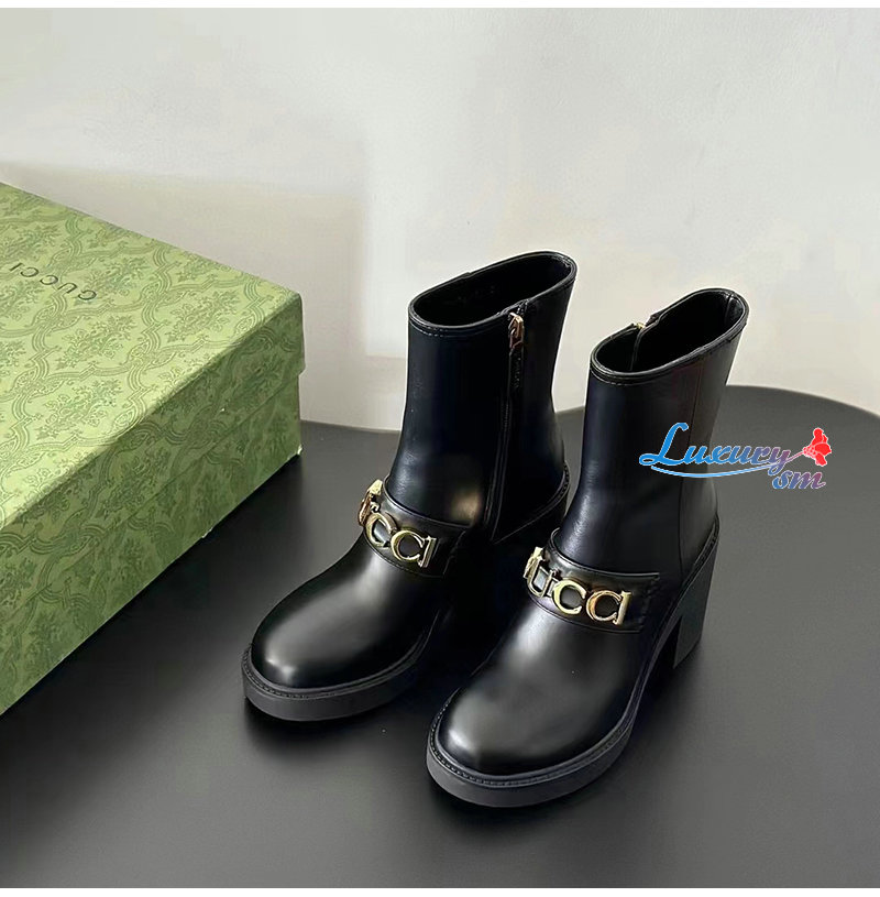 GUCCI-750538 1000 구찌 블랙 스크립트 로고 부츠 여성용
