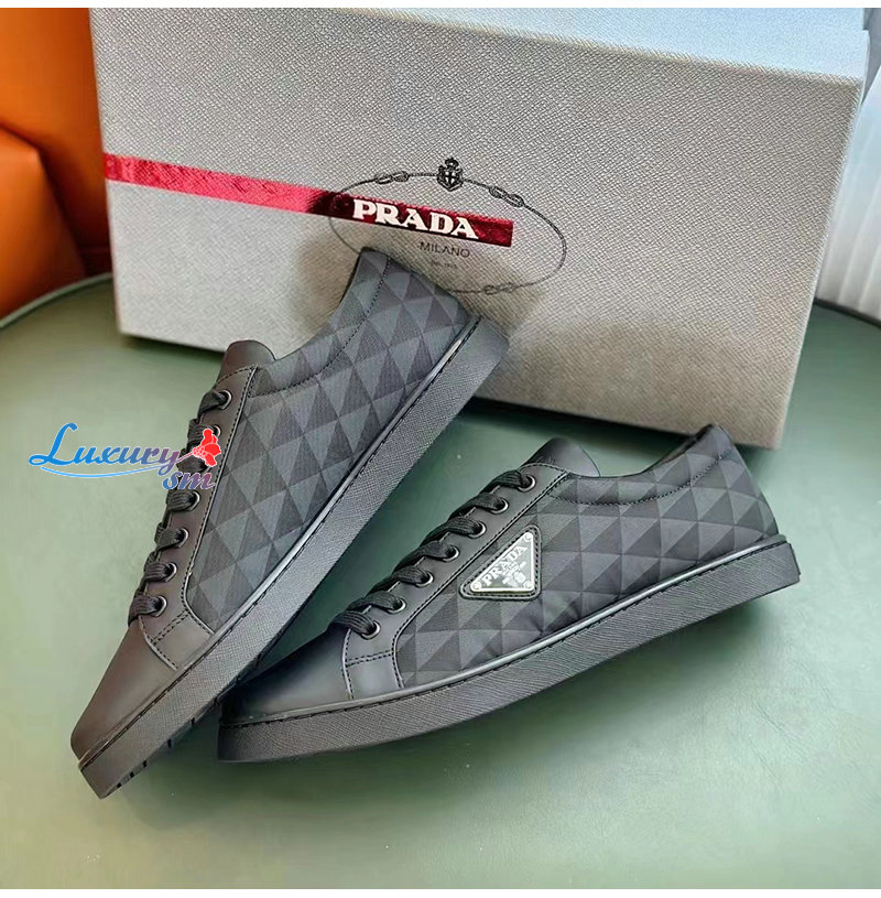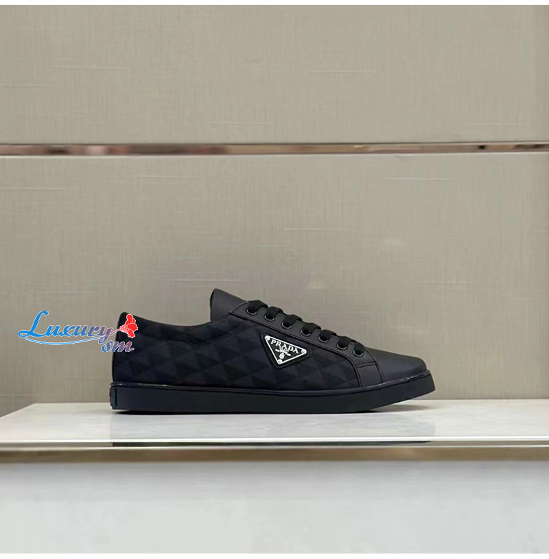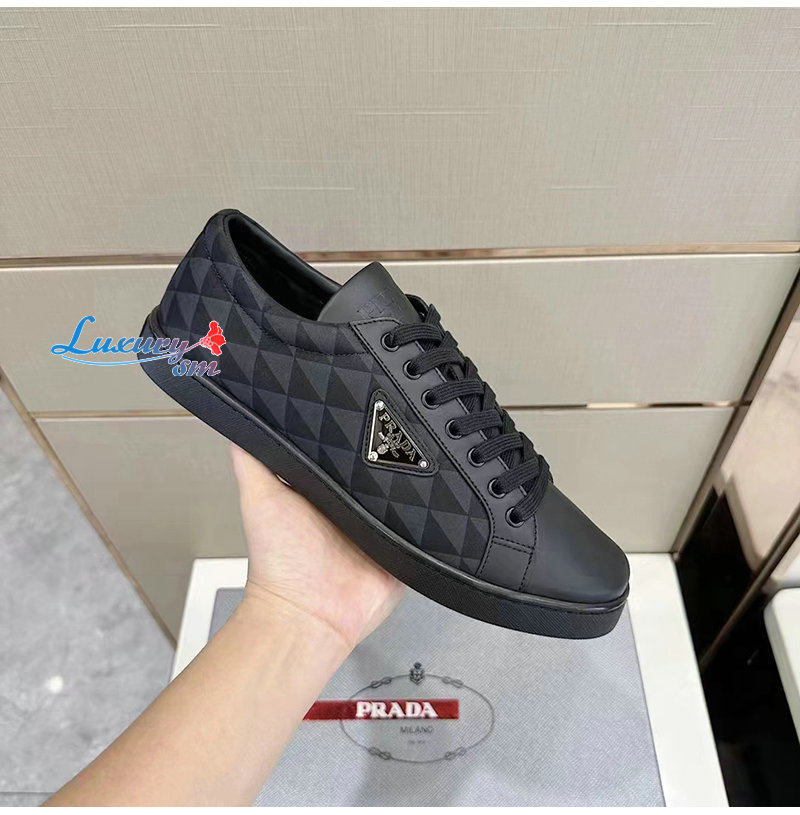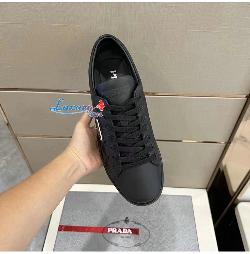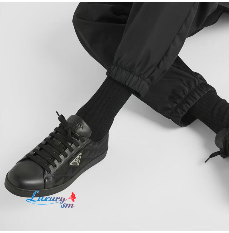 PRADA-2EE376 프라다 블랙 나일론 가죽 스니커즈