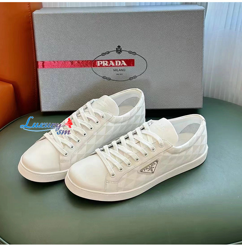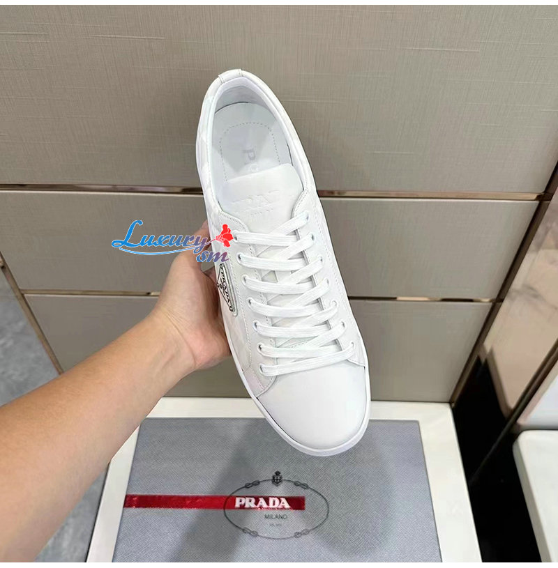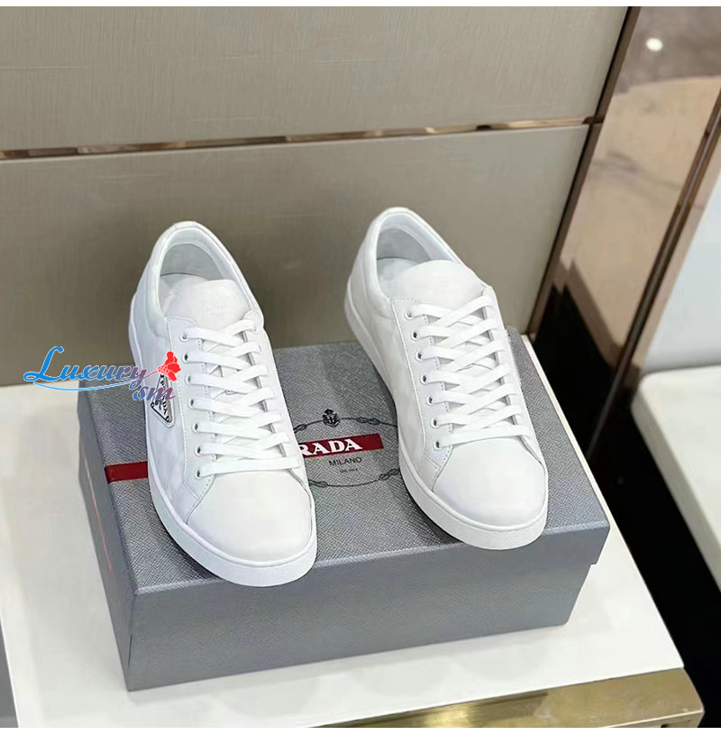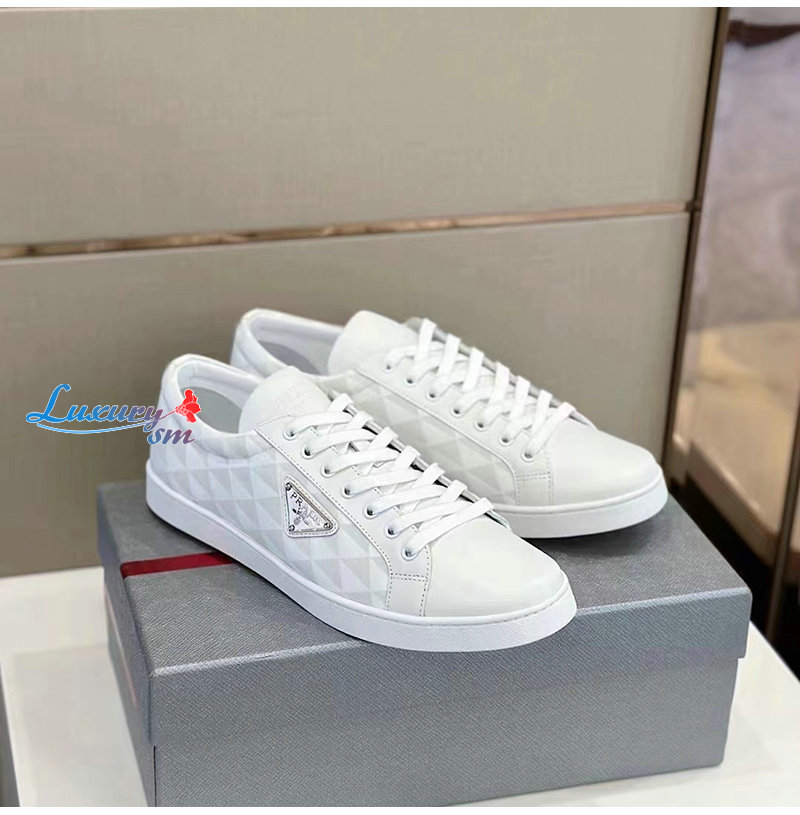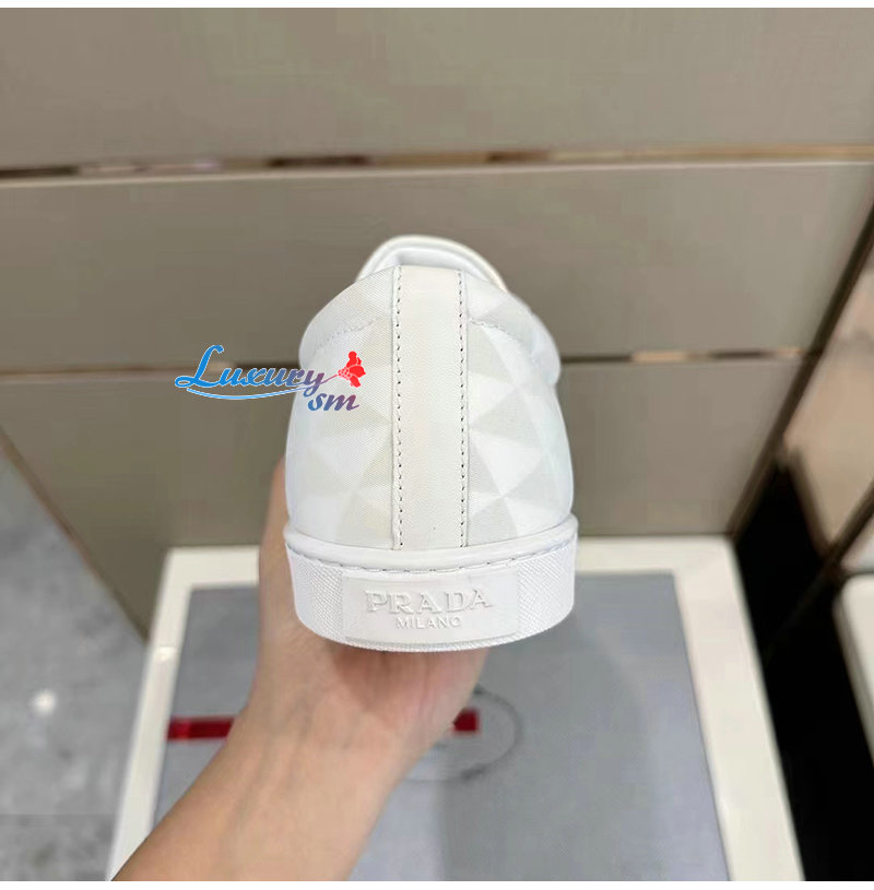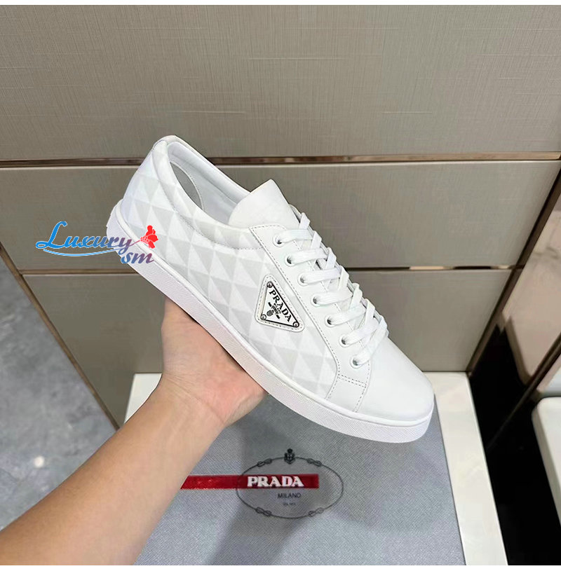 PRADA-2EE376 프라다 화이트 나일론 가죽 스니커즈 남성용