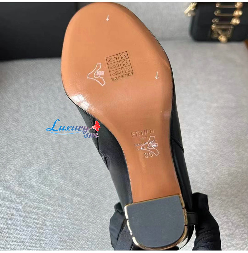 블랙 가죽 소재 컷아웃 디테일과 골드 컬러 메탈 FF