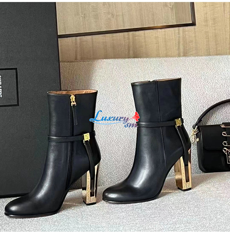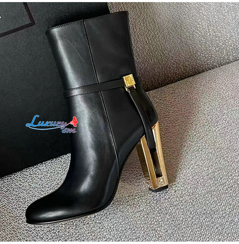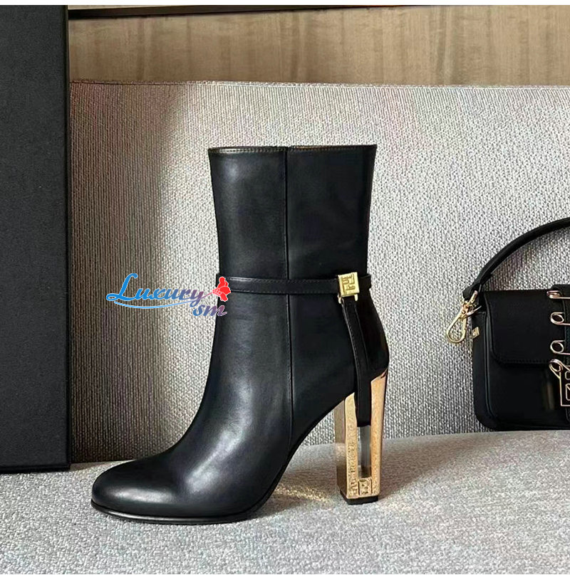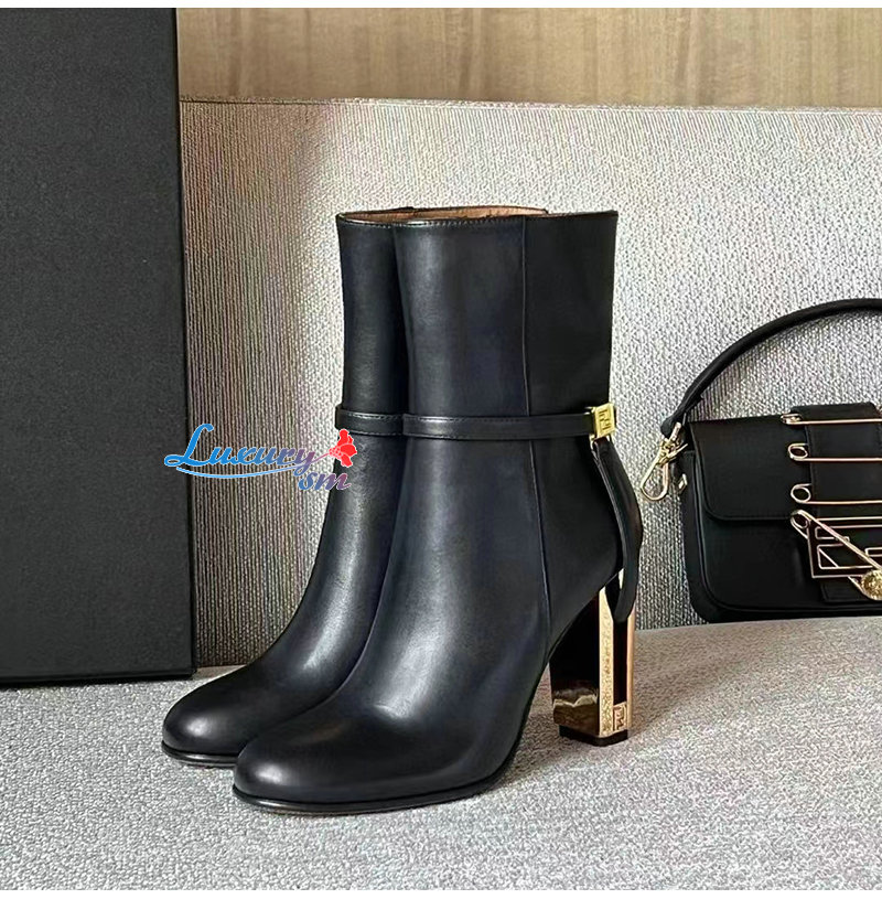 FENDI-8T8454 펜디 블랙 델피나 하이힐 앵클 부츠