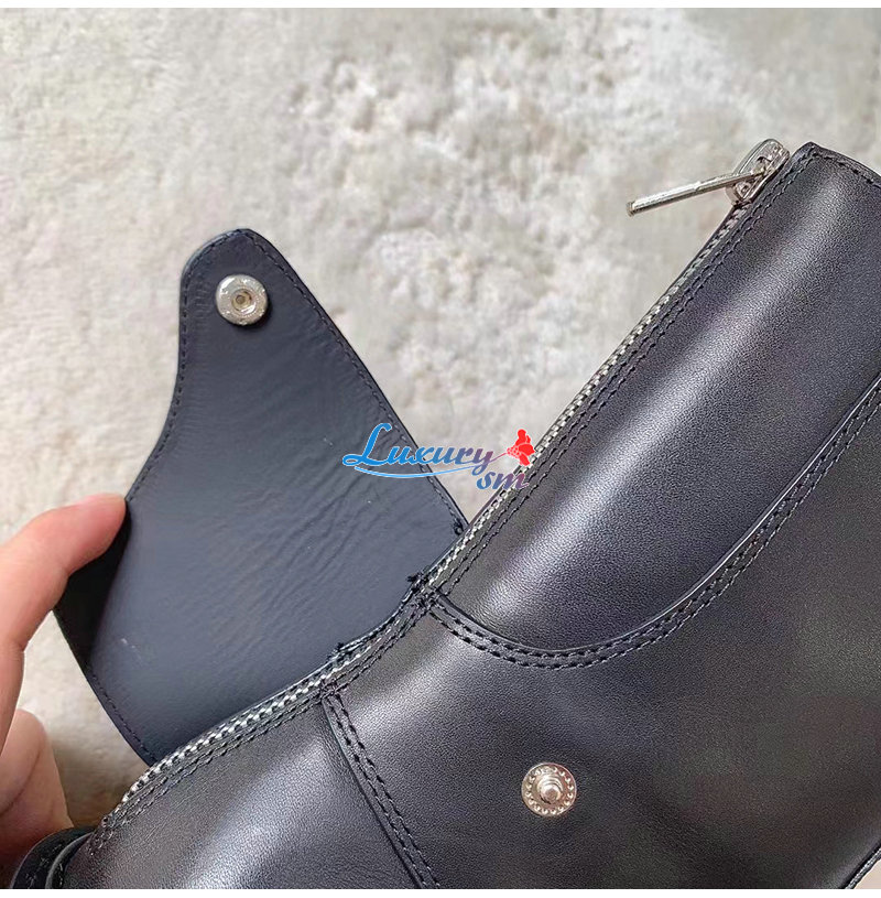 *슈즈 뒷면에 메탈 지퍼 커버 가죽 플랩