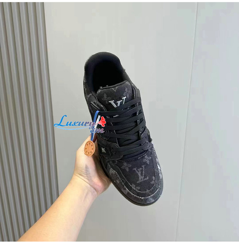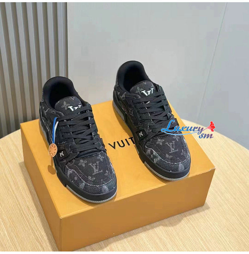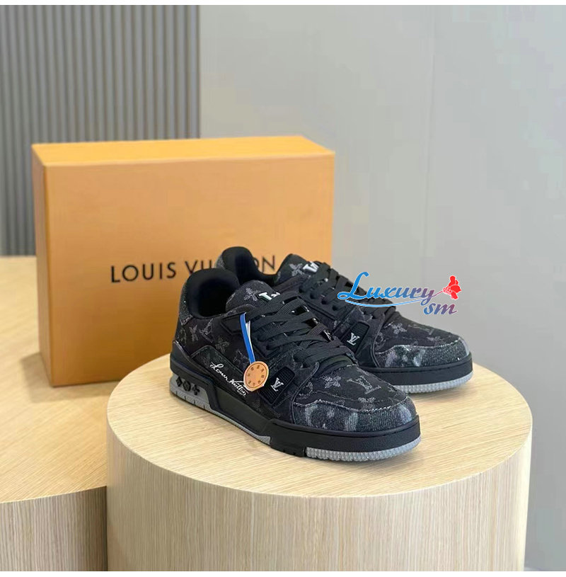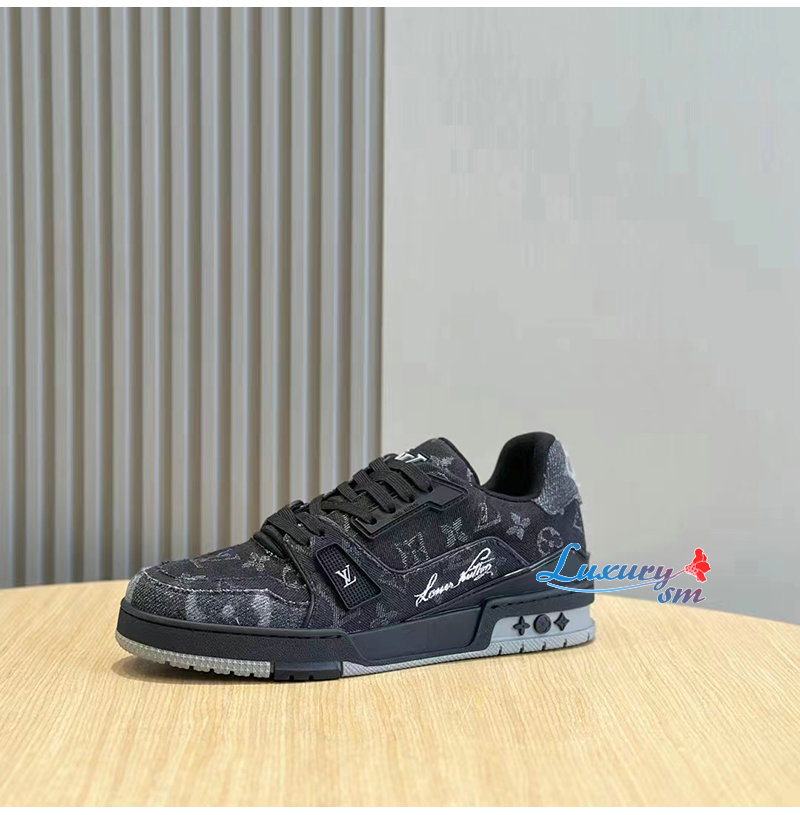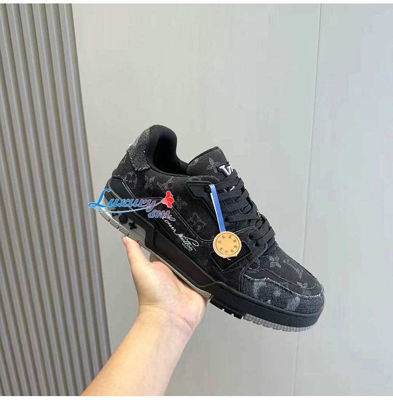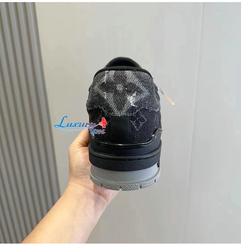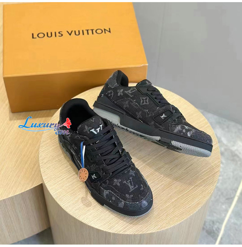 LOUIS VUITTON-1AC4ZD 루이비통 블랙 모노그램 데님 LV 트레이너 스니커즈 남성용
