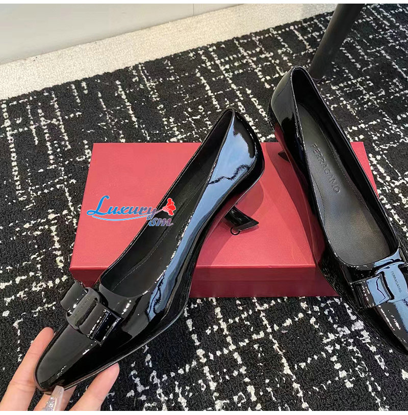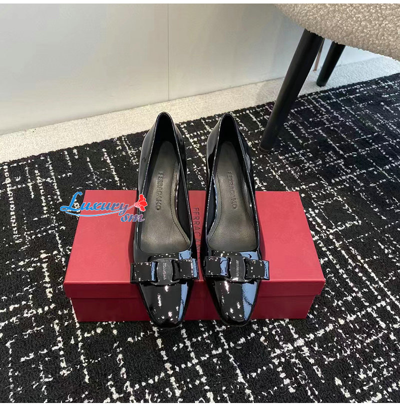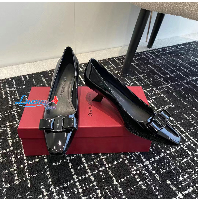Ferragamo-01F594 페라가모 블랙 바라 보우 펌프스