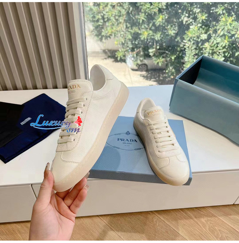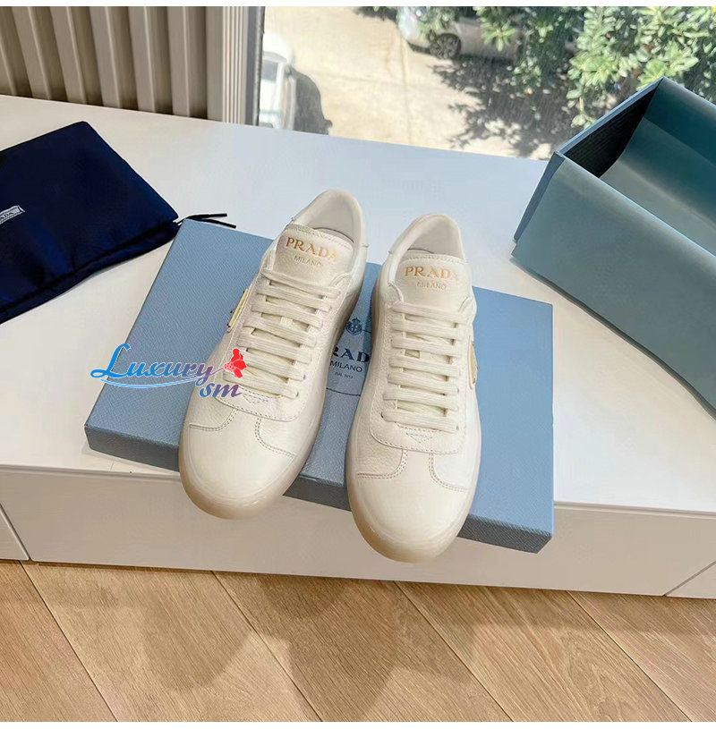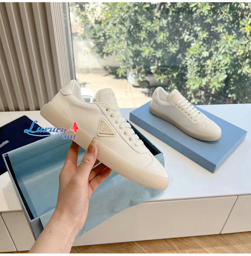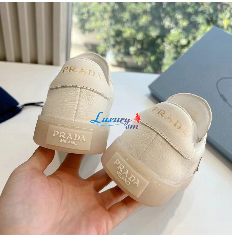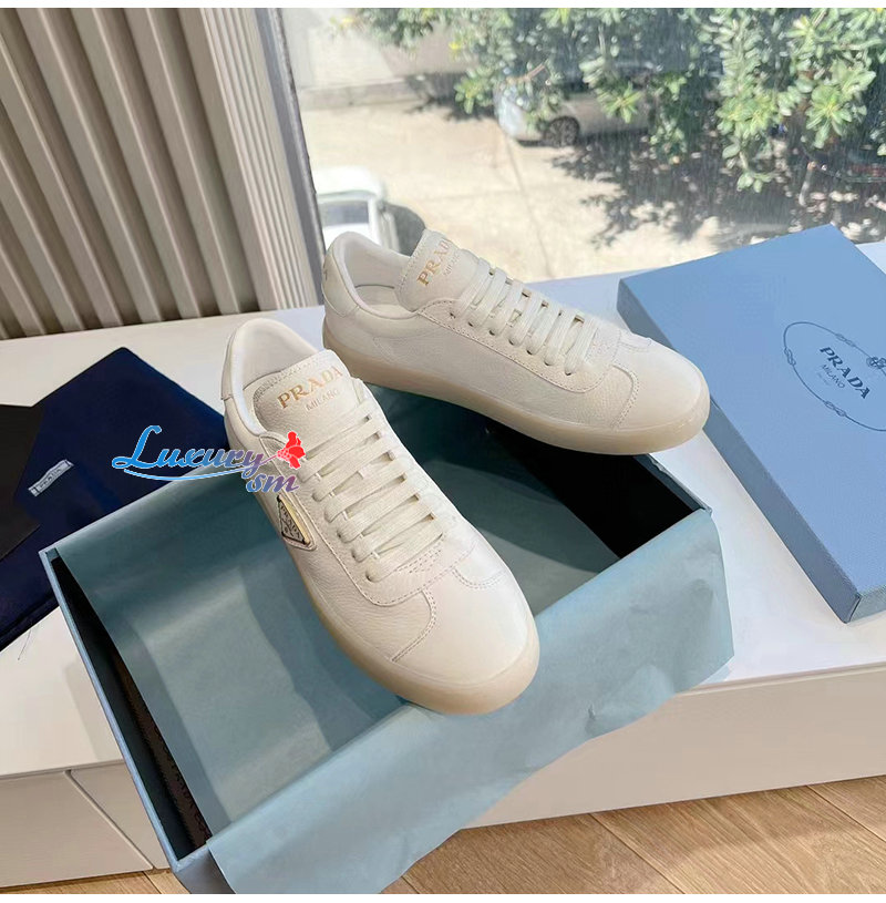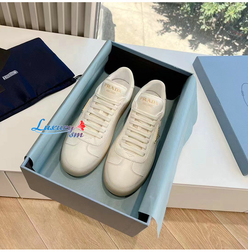 PRADA-1E413N 프라다 아이보리 가죽 스니커즈 여성용