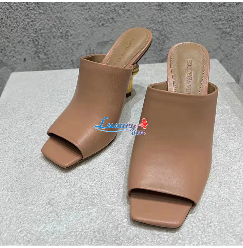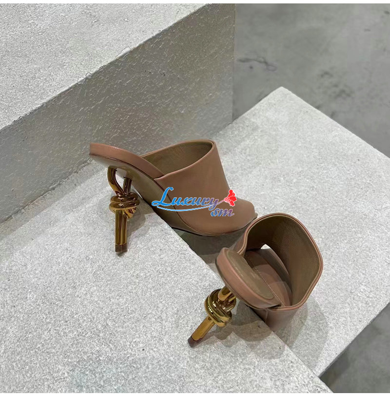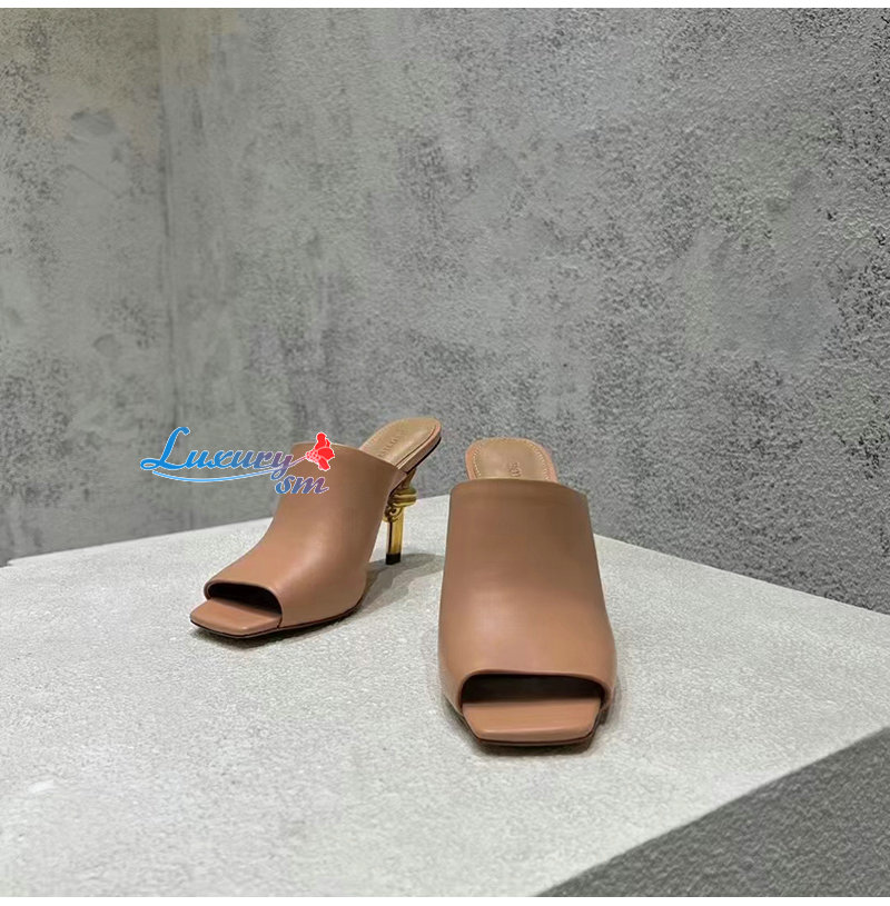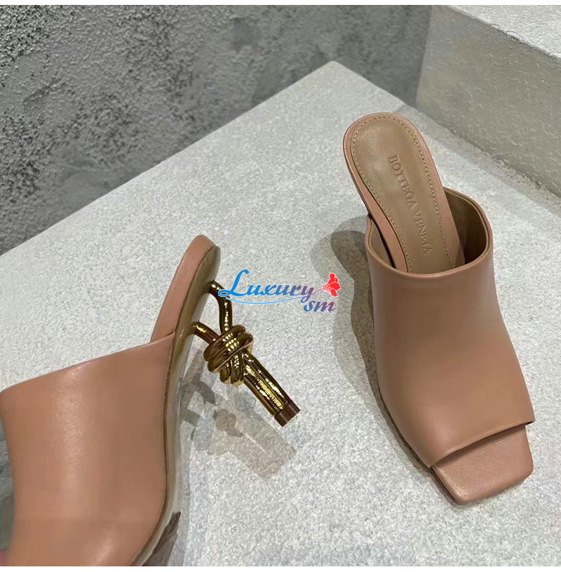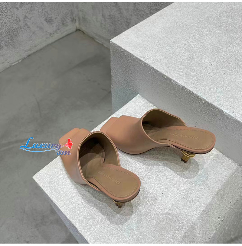 골드 메탈 놋 힐이 돋보이는 뮬. 가죽 아웃솔을