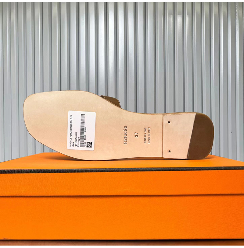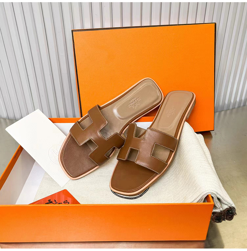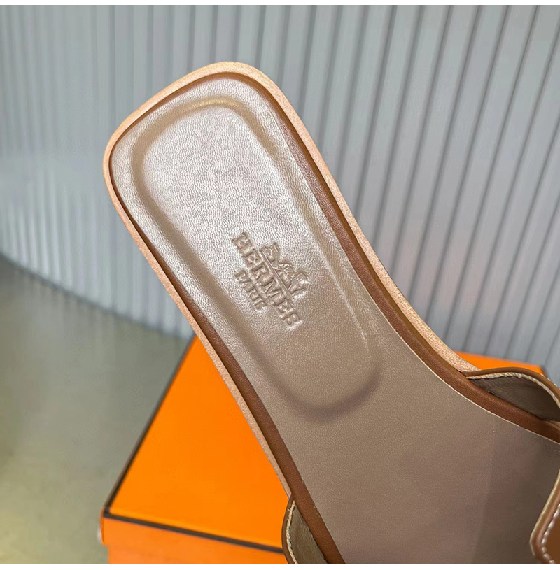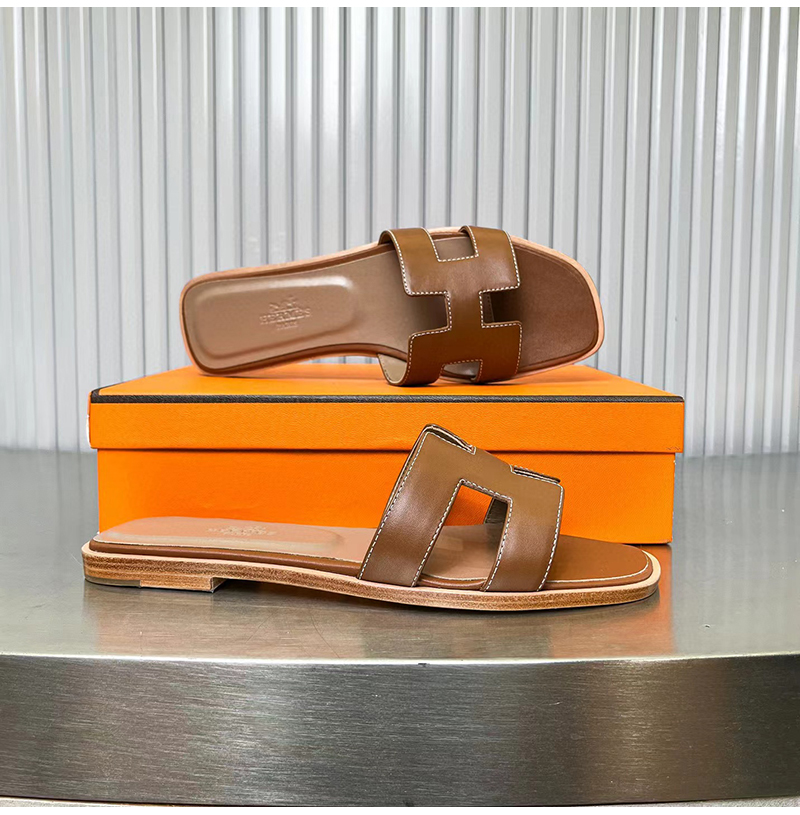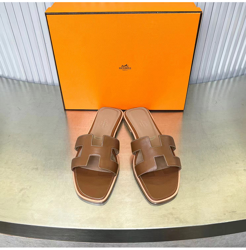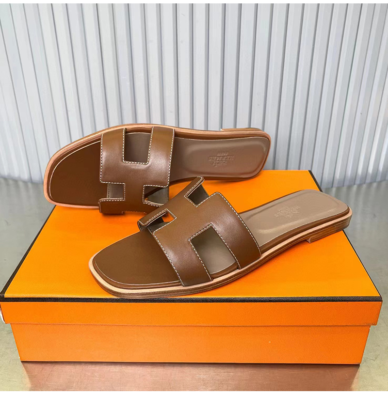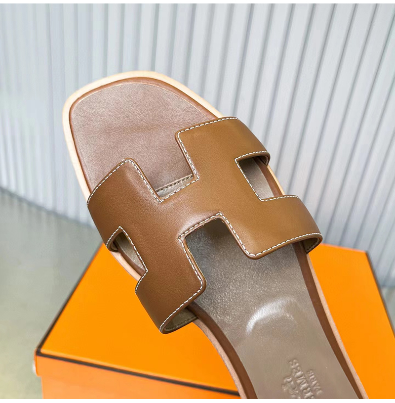 HERMES- 에르메스 브라운 카프스킨 Oran 샌들 여성용