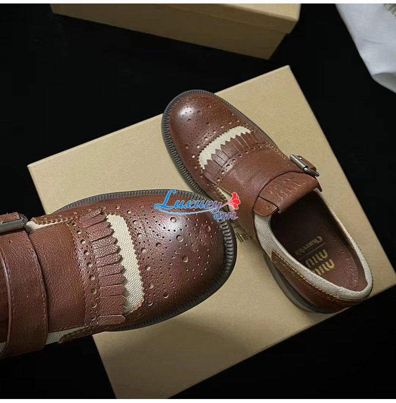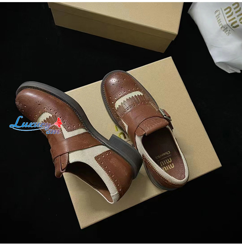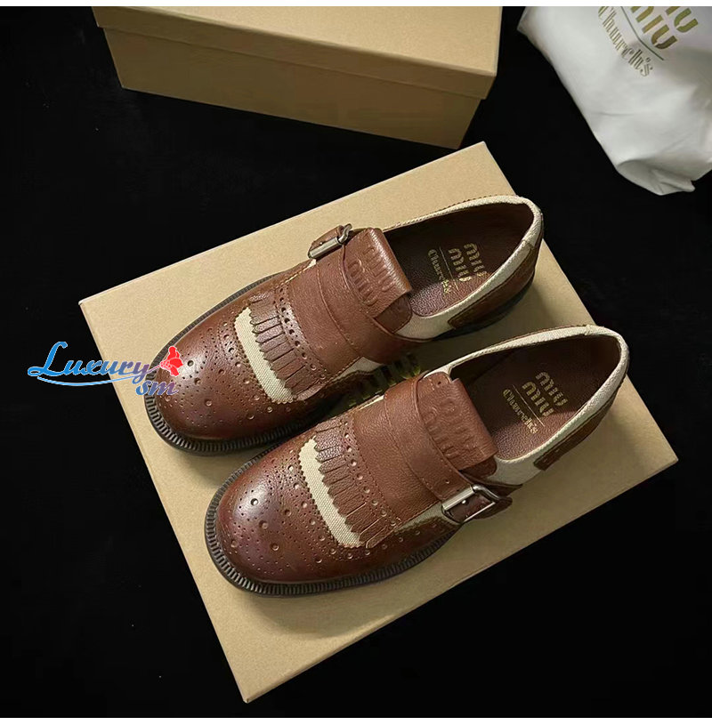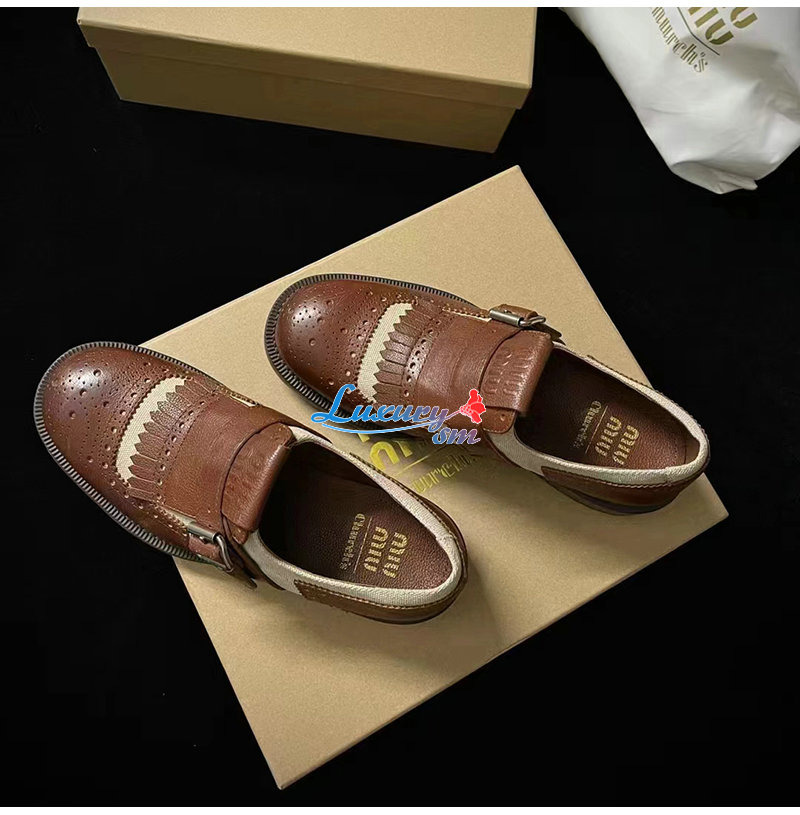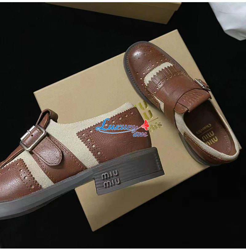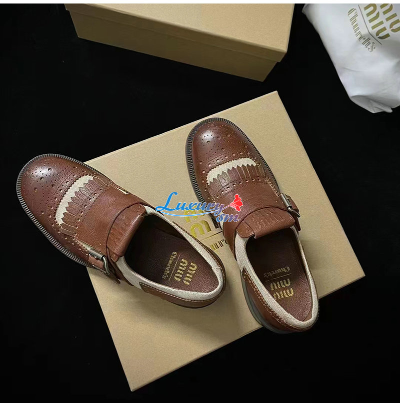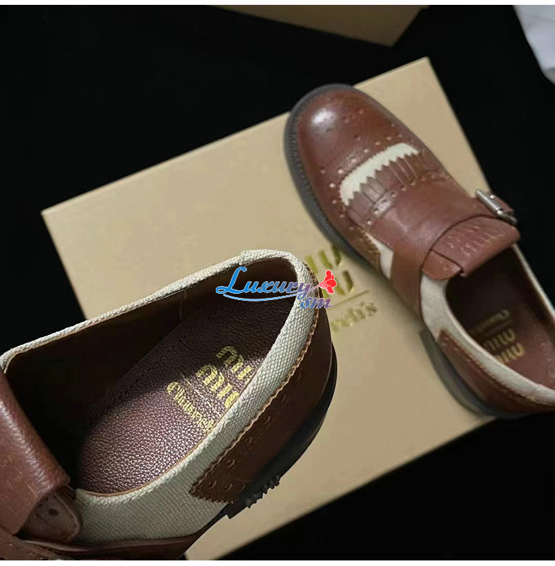 MIUMIU-5E186E 미우미우 브라운 CHURCH S X MIU MIU 리넨 슈즈