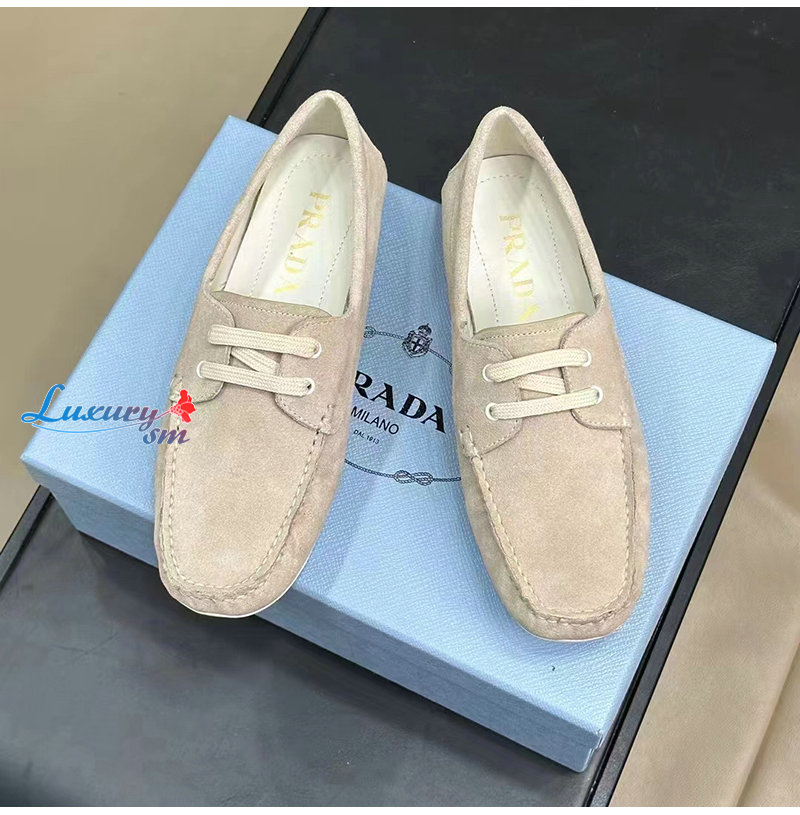 PRADA-1DD078 프라다 베이지 스웨이드 드라이빙 슈즈 여성용