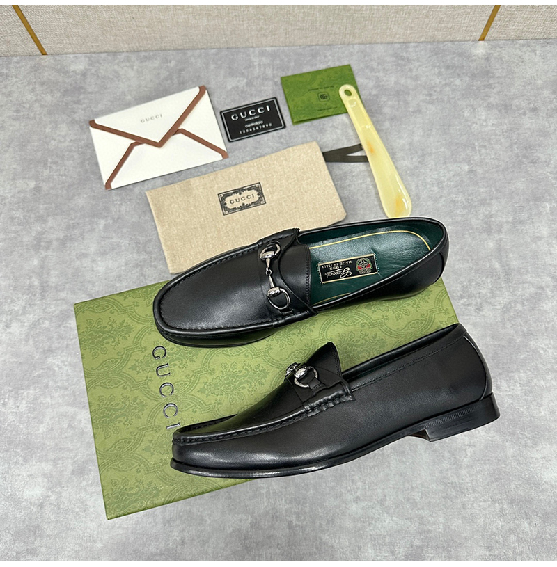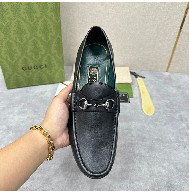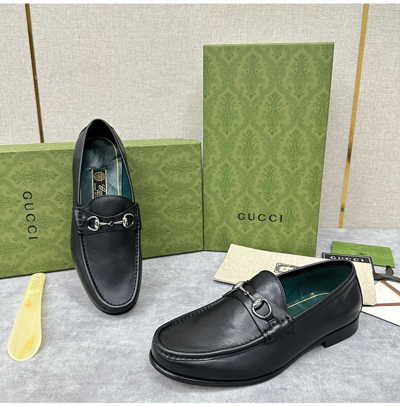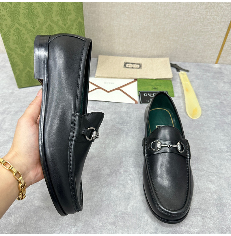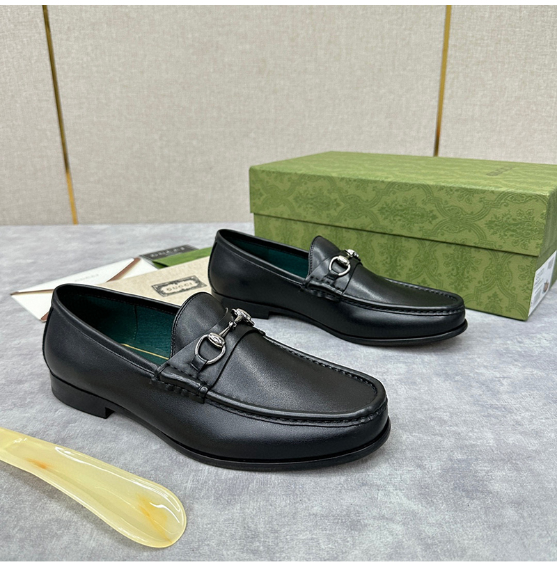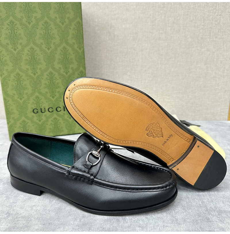 GUCCI-757769 1000 구찌 블랙 가죽 홀스빗 1953 로퍼 남성용