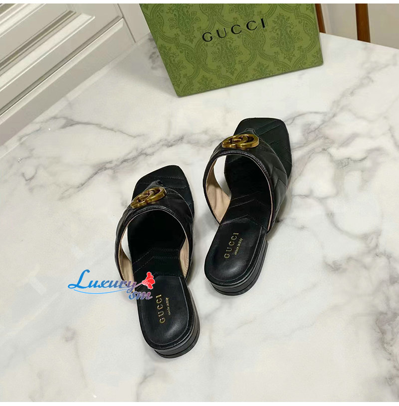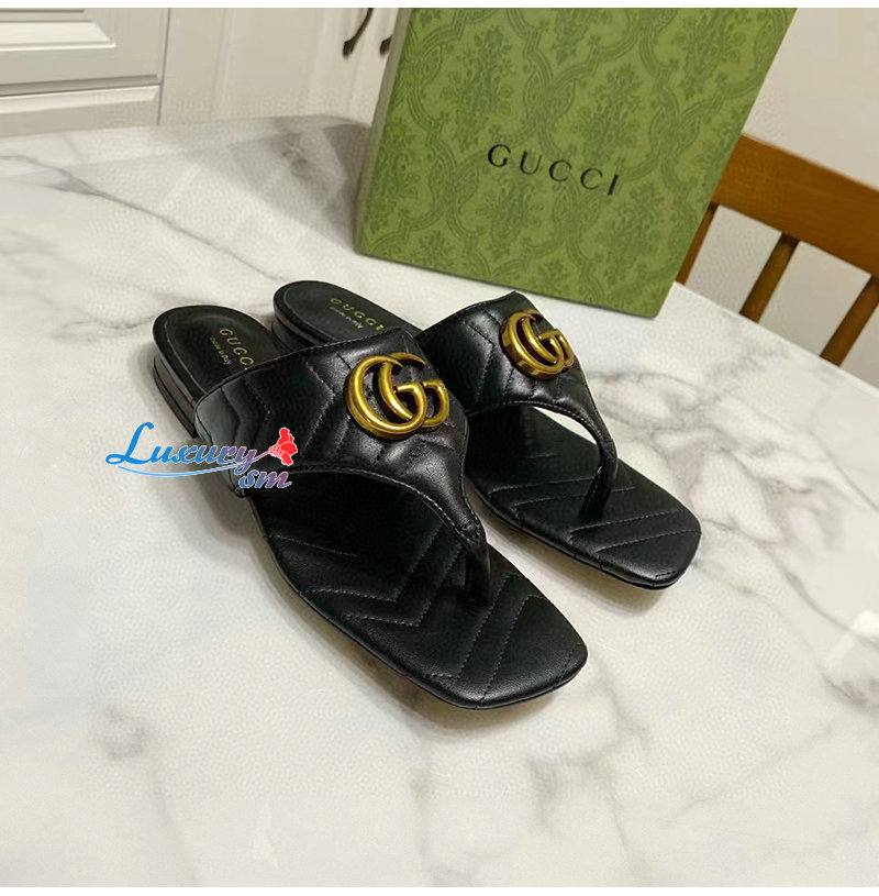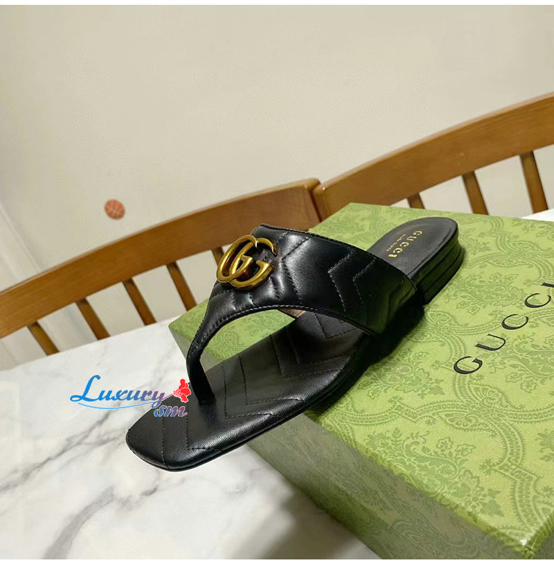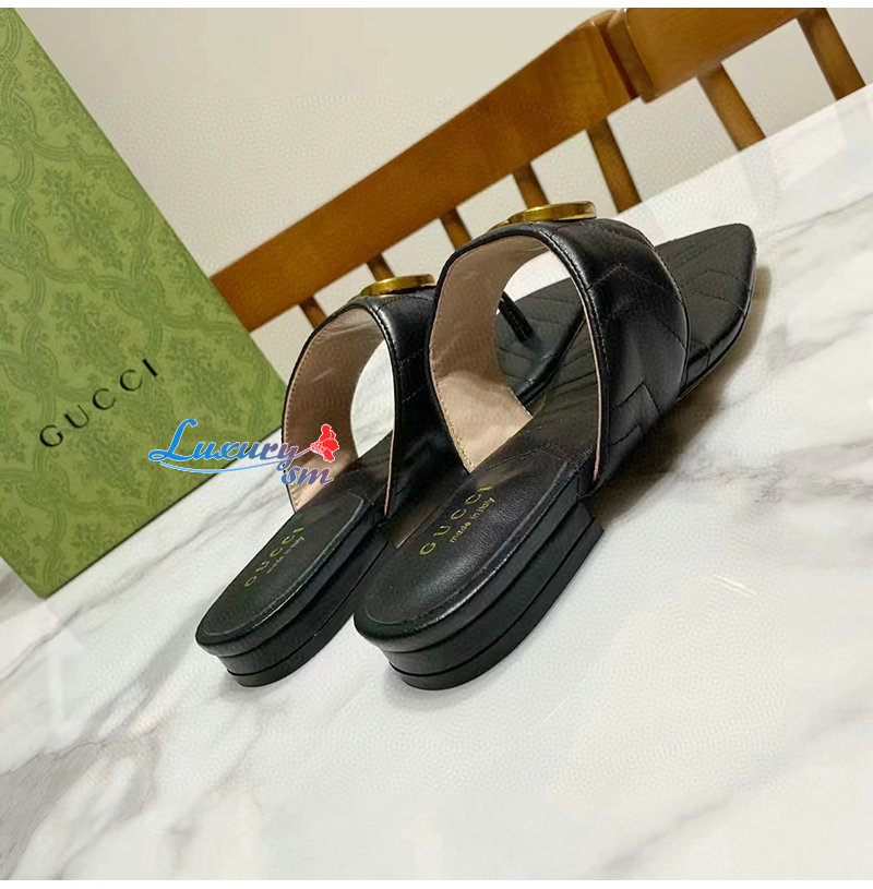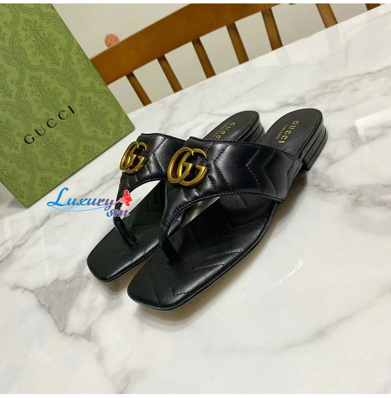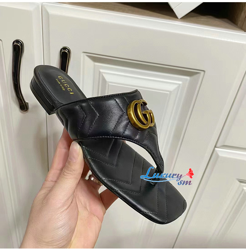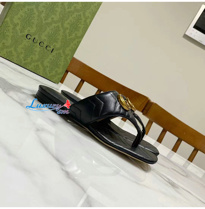 GUCCI-776948 1000 구찌 블랙 더블 G T-스트랩 샌들 여성용
