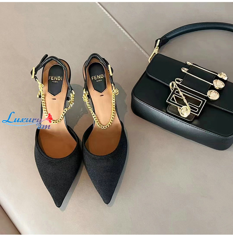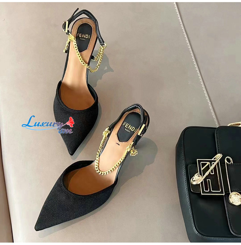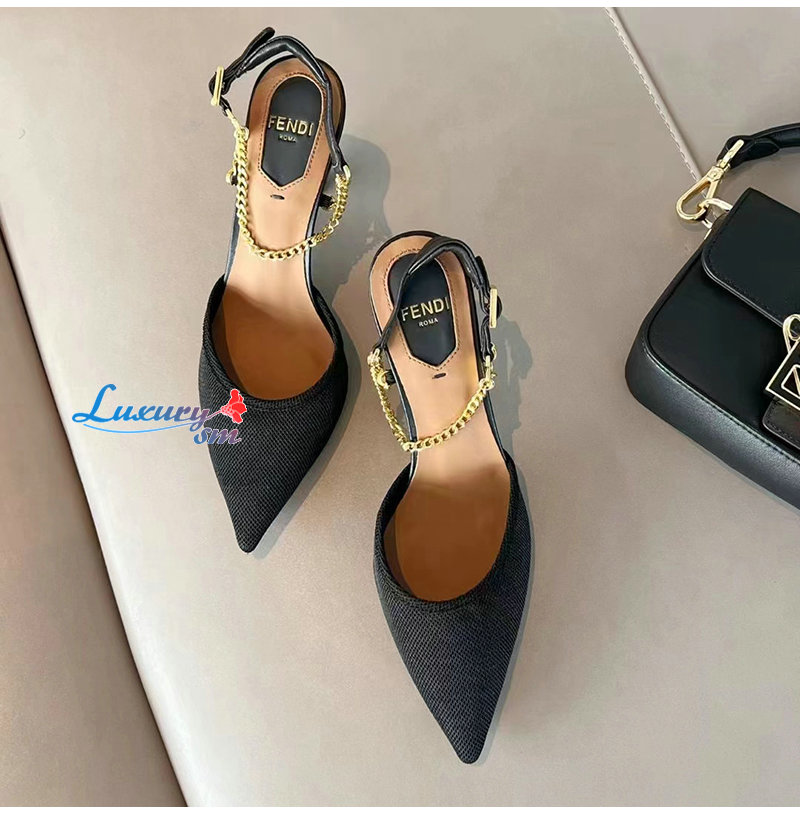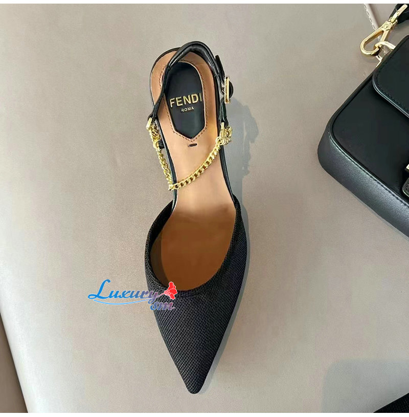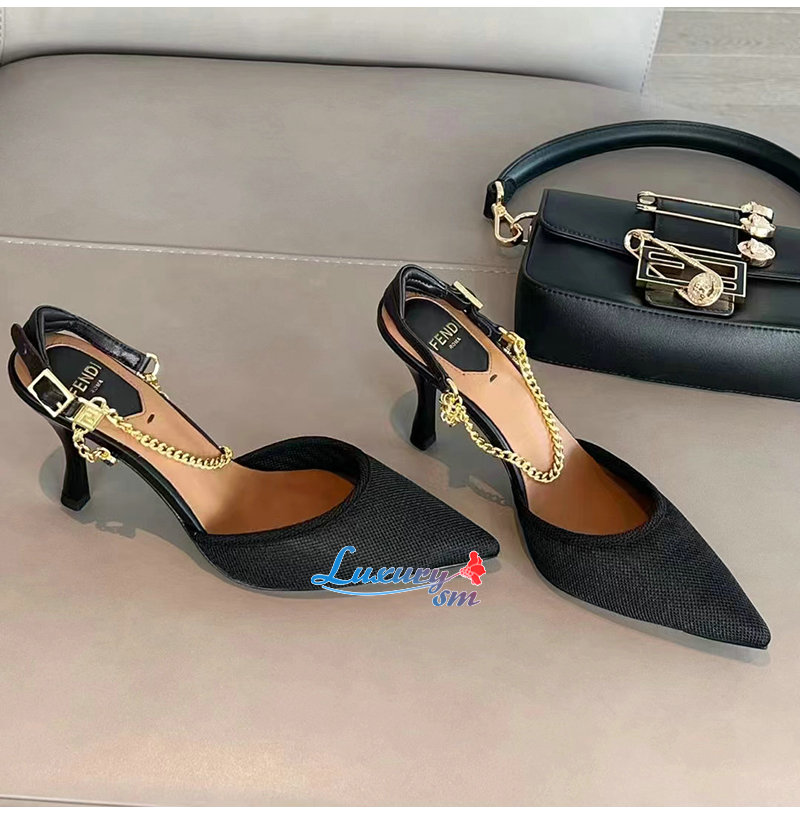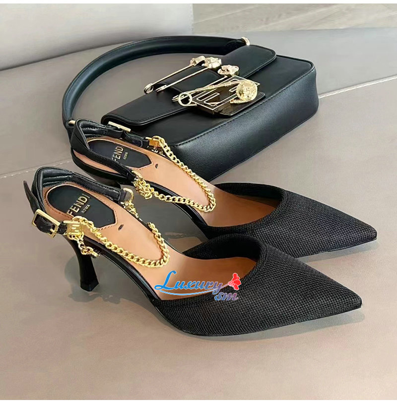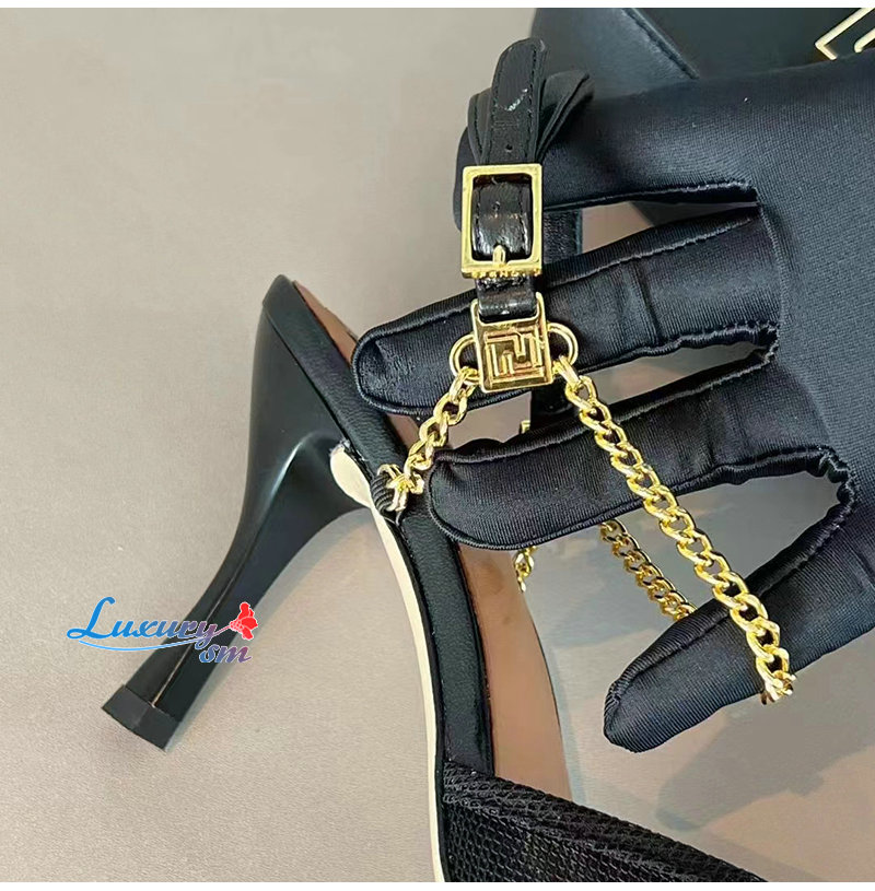 FENDI-8J8446 펜디 블랙 콜리브리 라이트 하이힐 슬링백