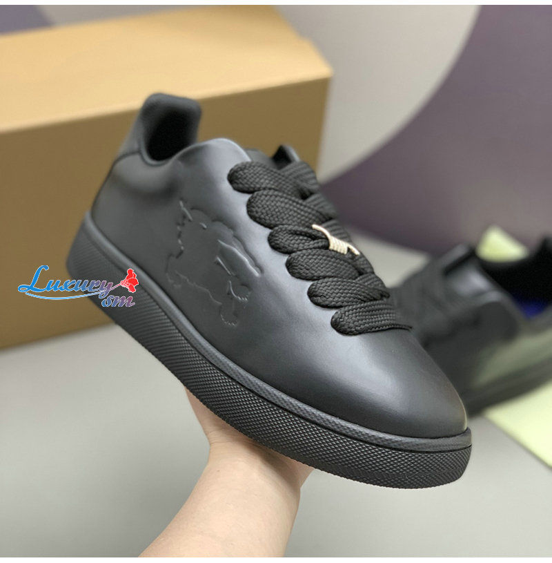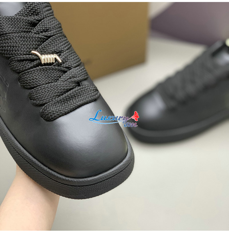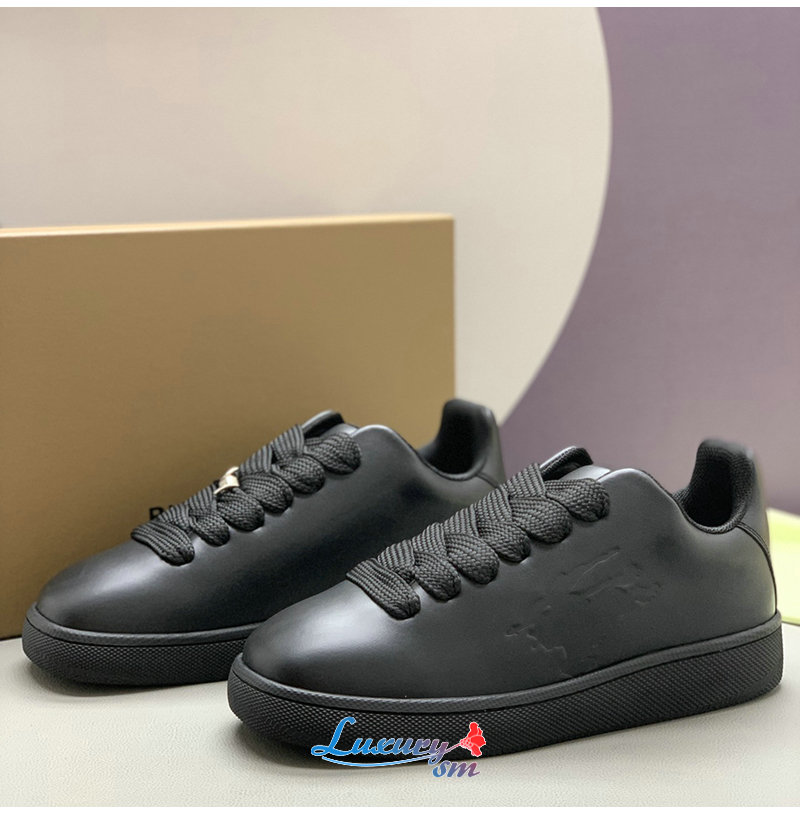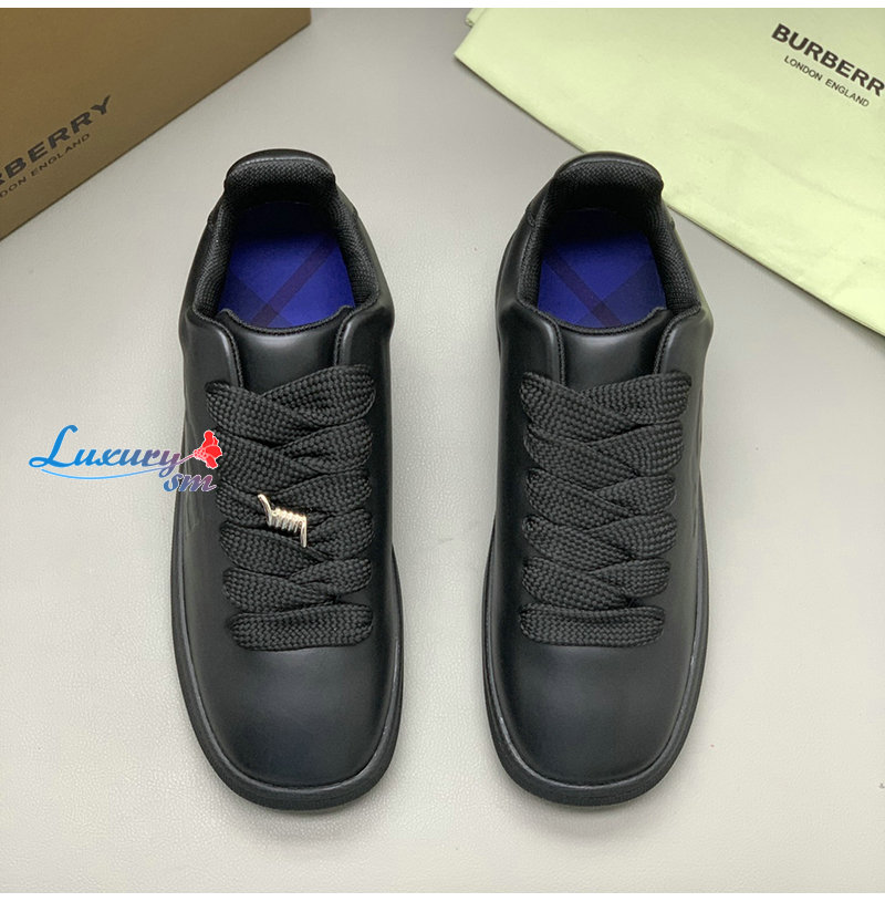 BURBERRY-80833841 버버리 블랙 레더 박스 스니커즈 남여공용