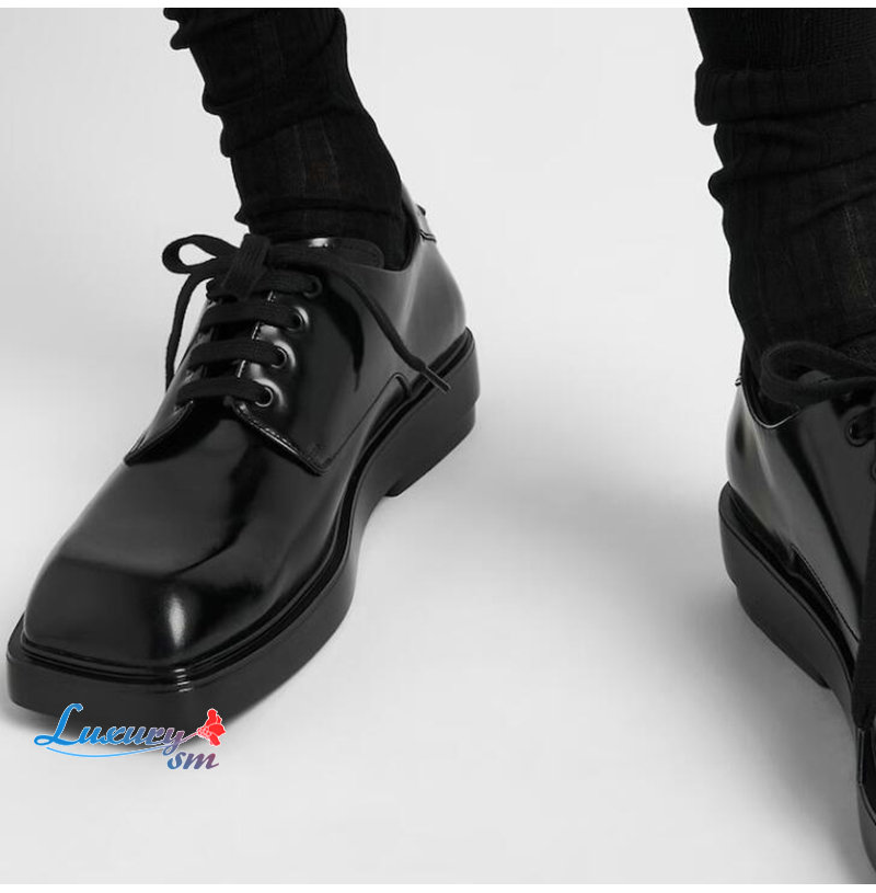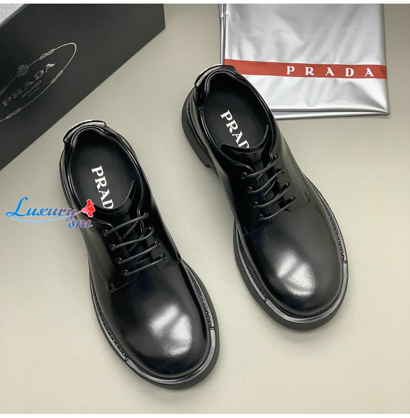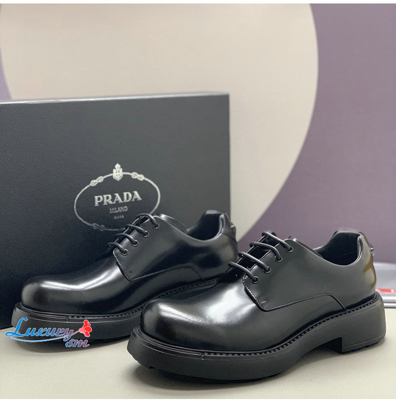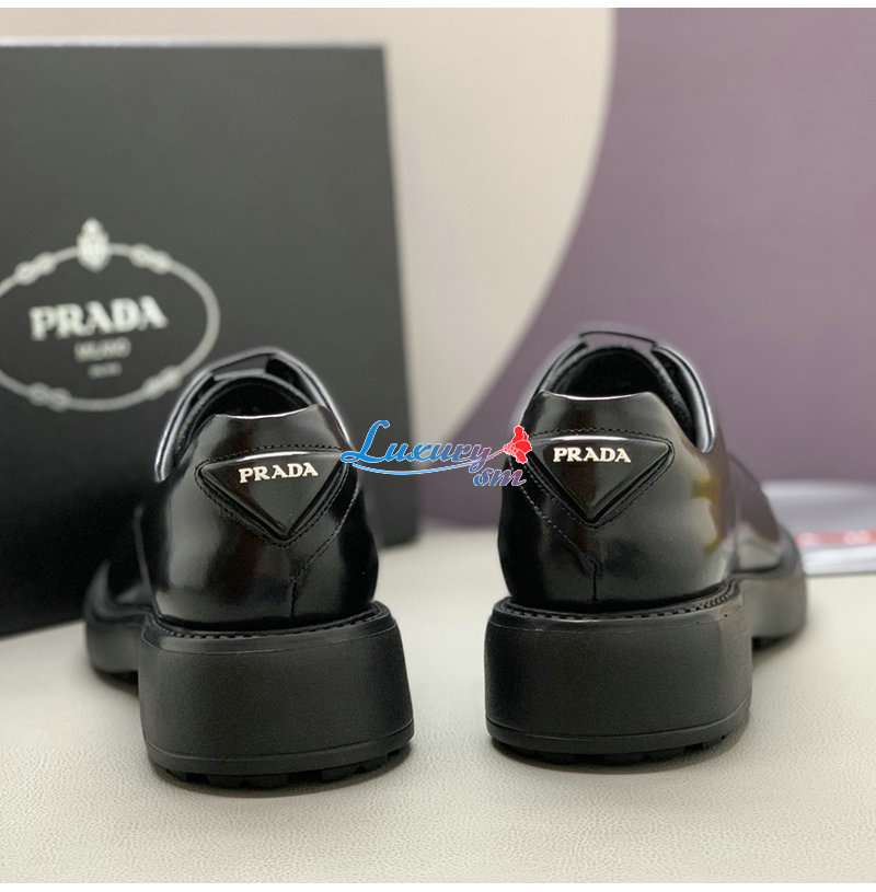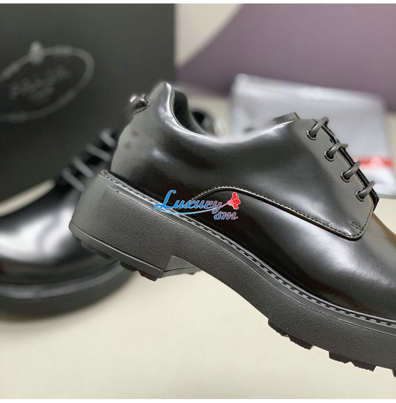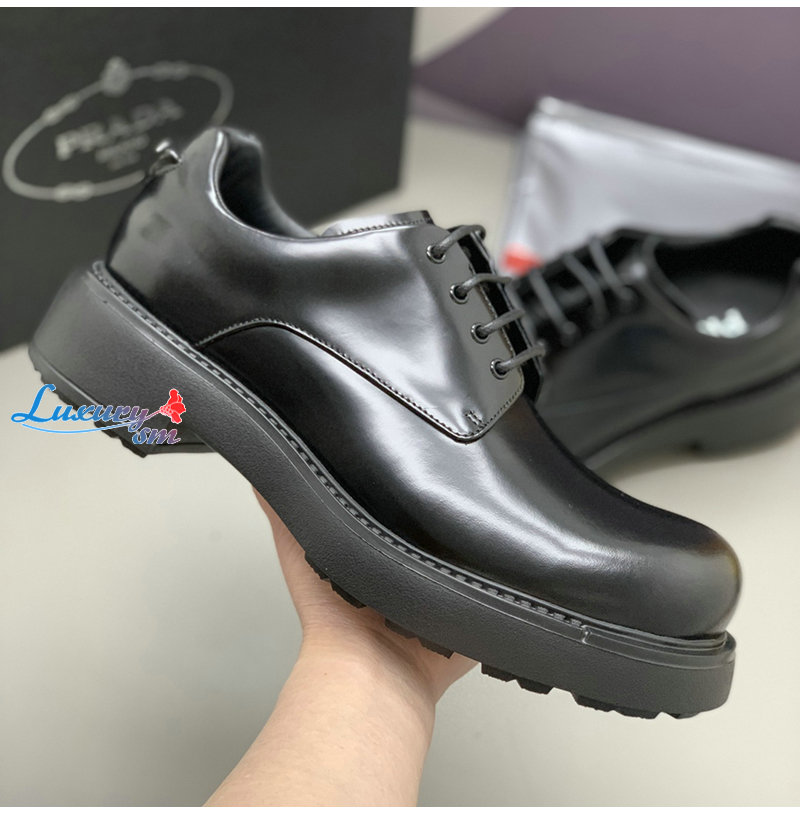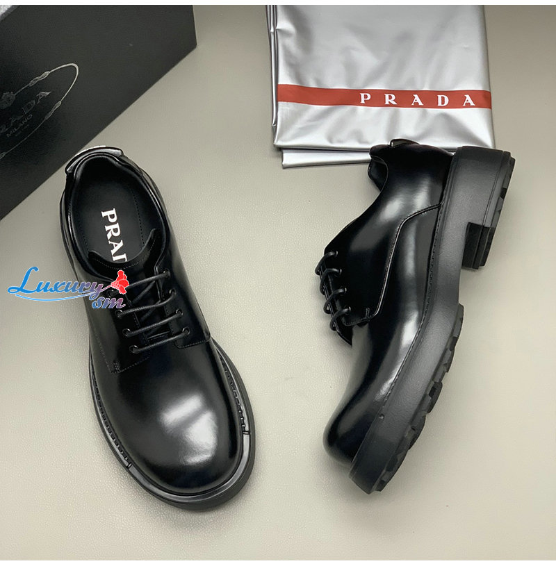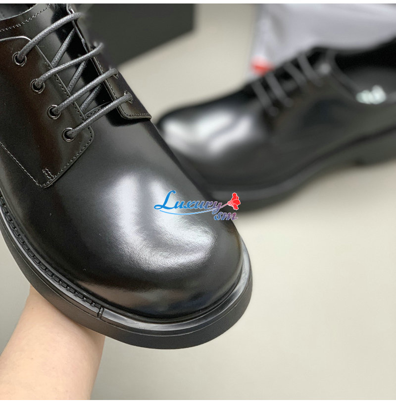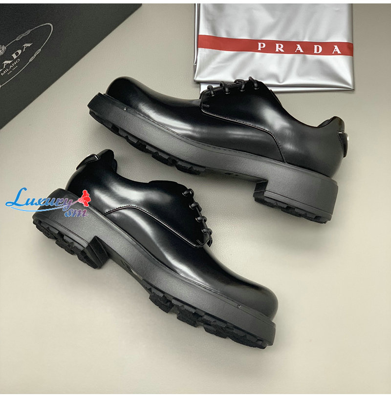 PRADA-2EG427 프라다 블랙 기모 가죽 더비 슈즈 남성용
