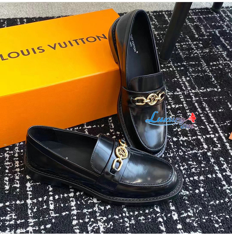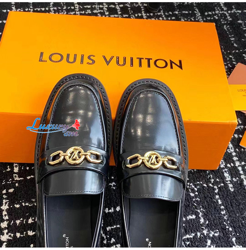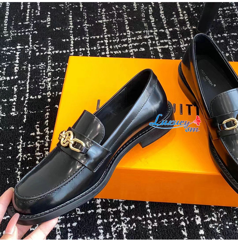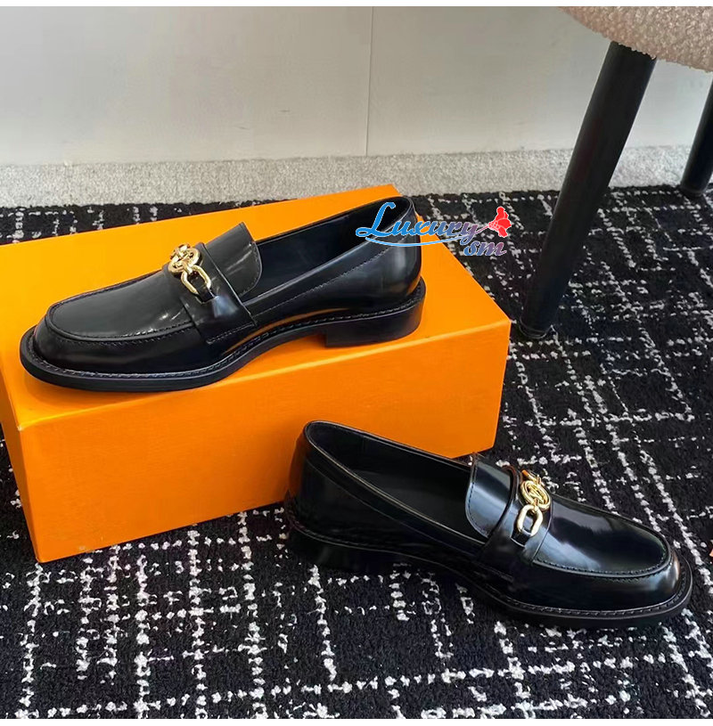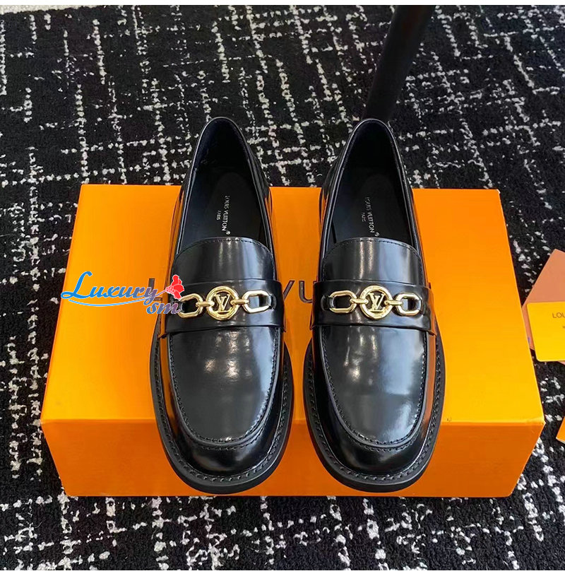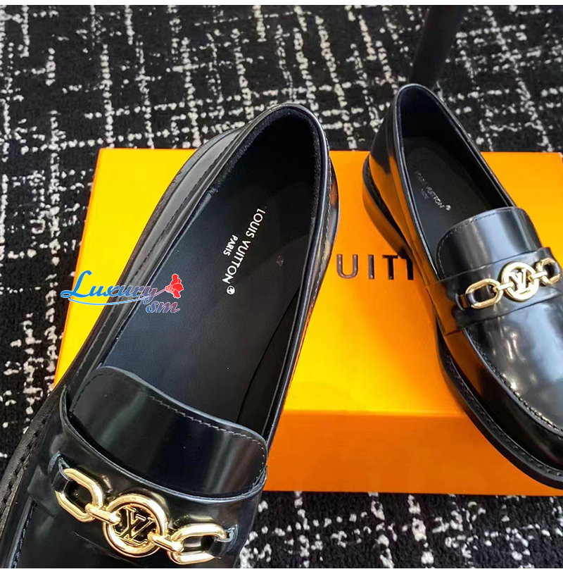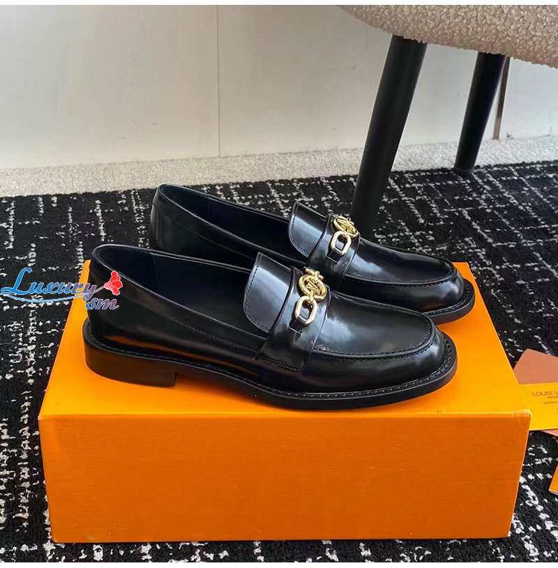 LOUIS VUITTON-1ABIAU 루이비통 블랙 체스 플랫 로퍼 여성용