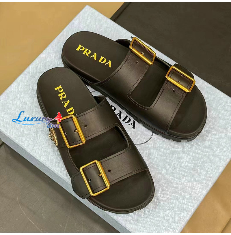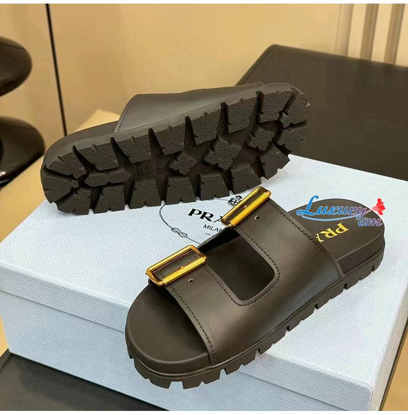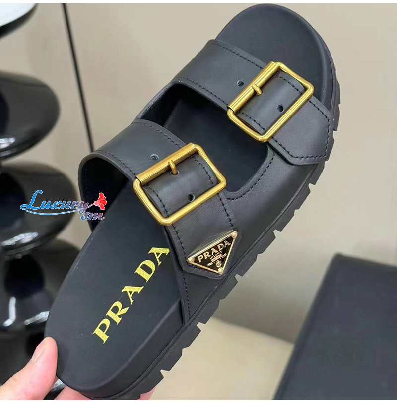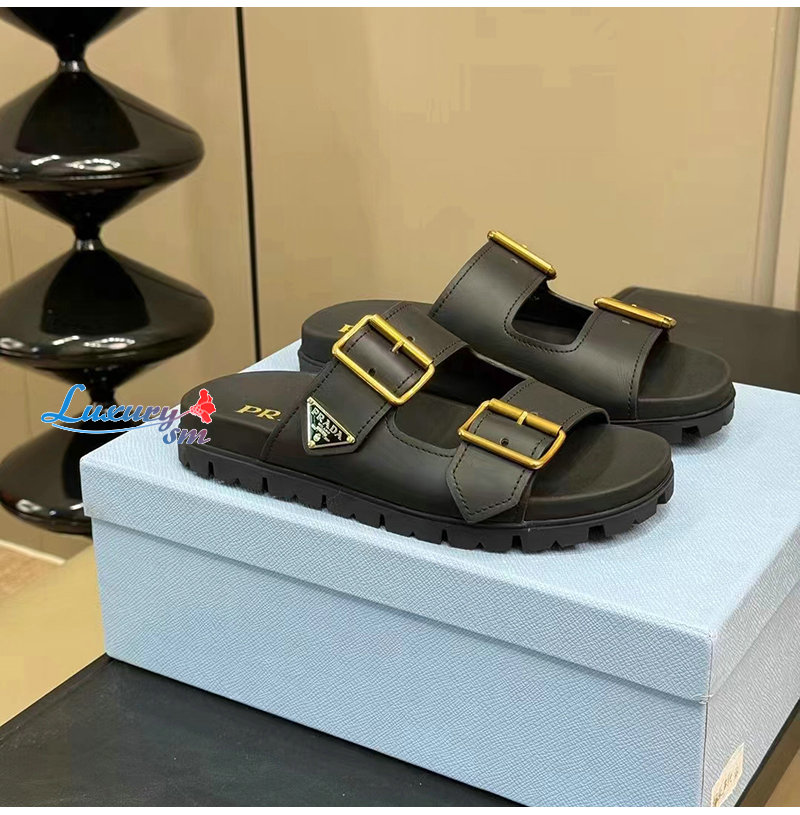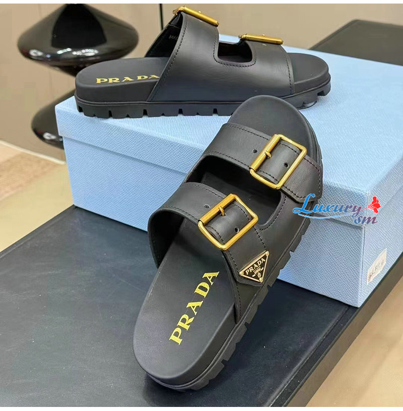 PRADA-1XX692 프라다 블랙 가죽 스트랩 슬라
