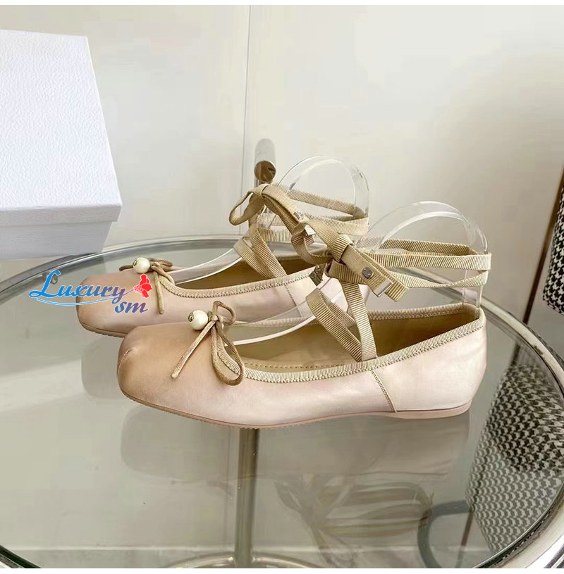 DIOR-KDB880 디올 베이지 핑크 새틴 D-Joy 발레 플랫