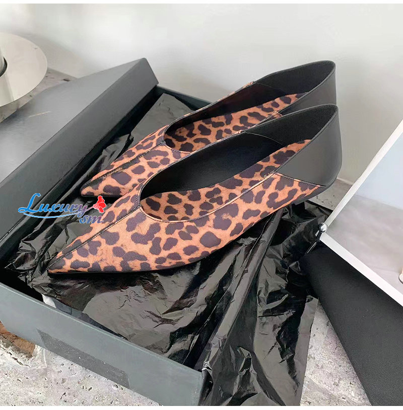 플랫 슬리퍼. 포인티드 토, V 컷 뱀프, 위로 올리