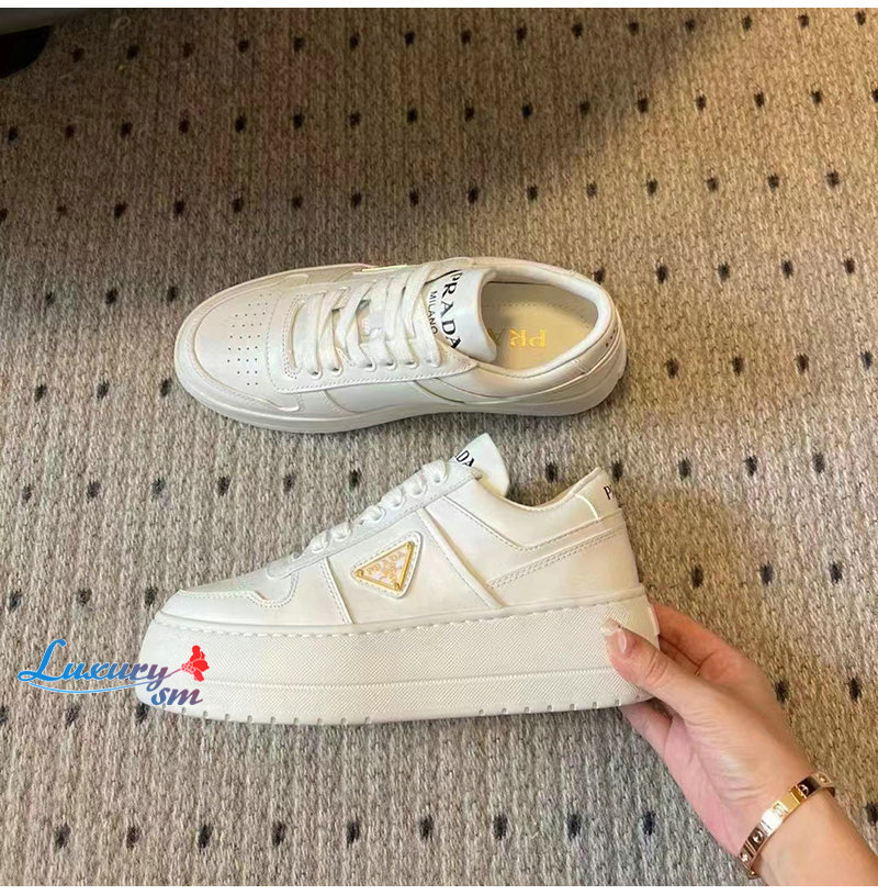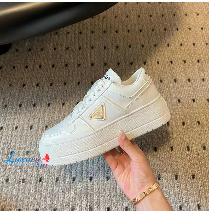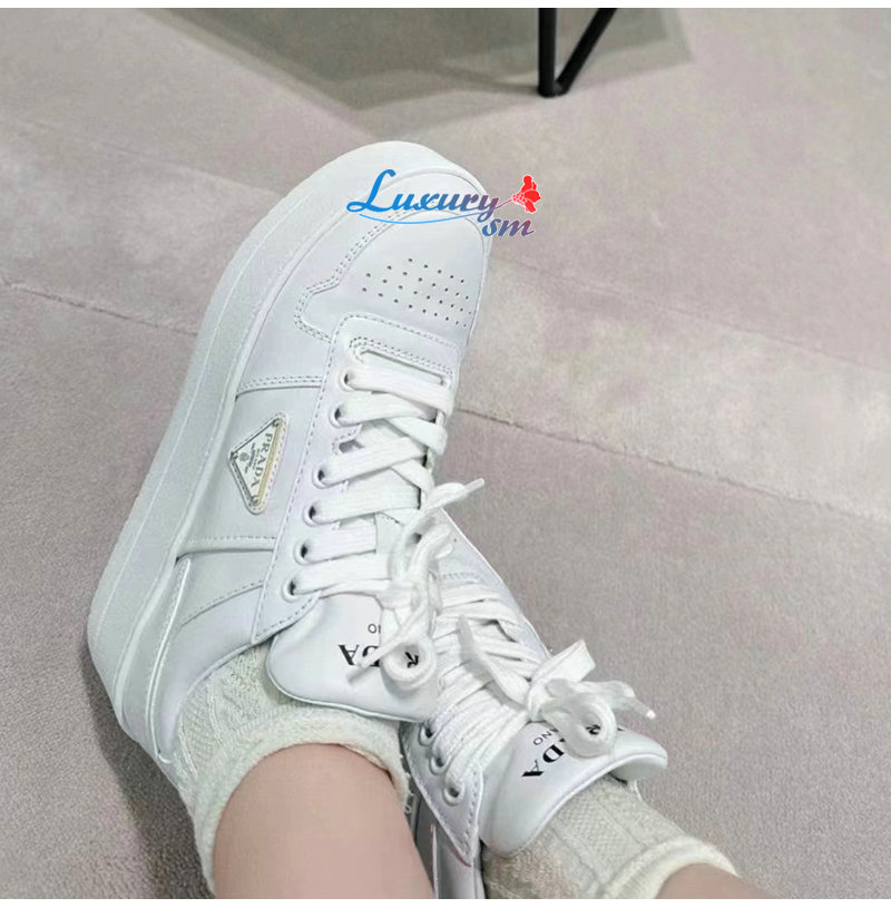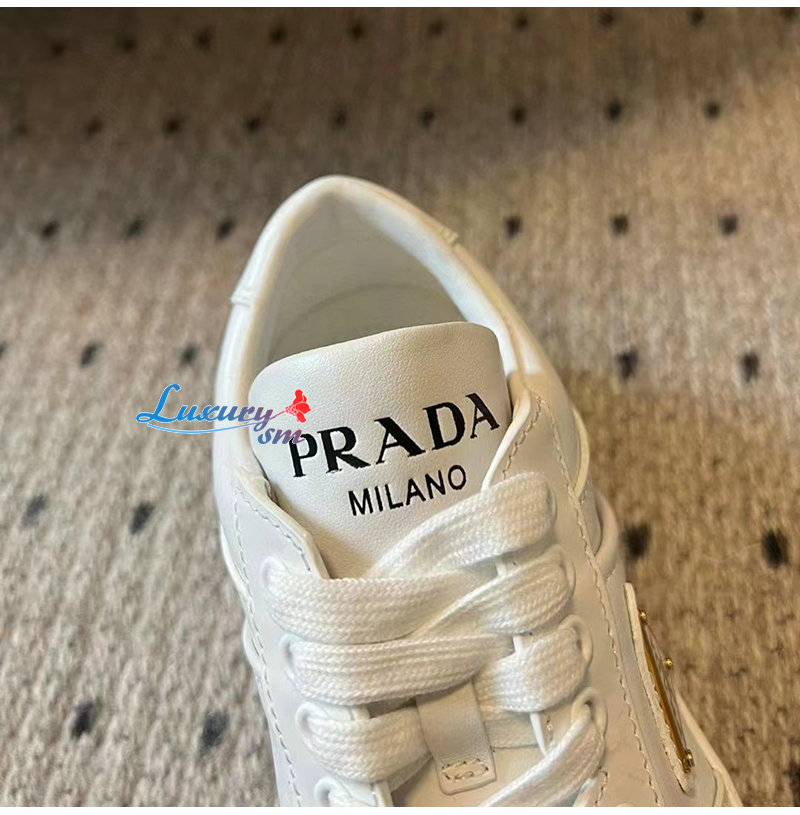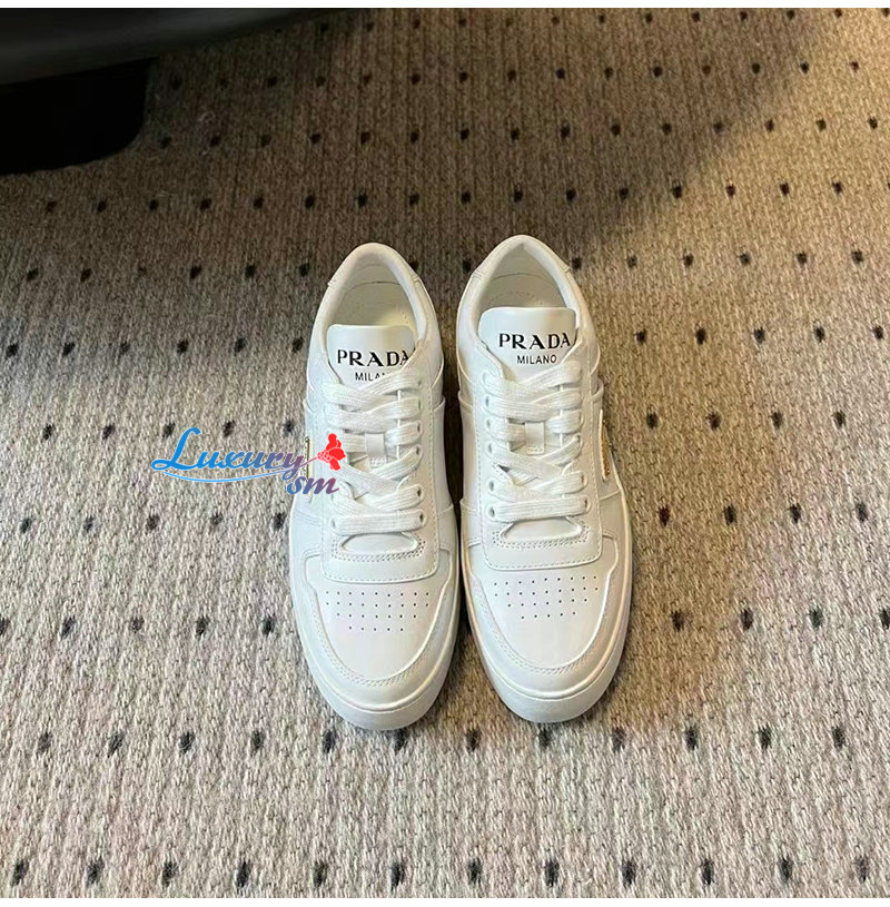 PRADA-1E792M 프라다 화이트 다운타운 볼드 가죽 스니커즈 여성용