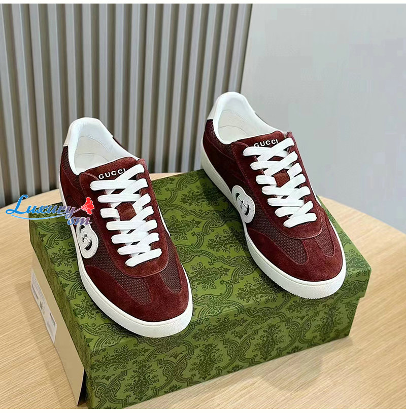 GUCCI-791742 6741 구찌 브라운 스웨이드 인터로킹 G 스니커즈 남여공용