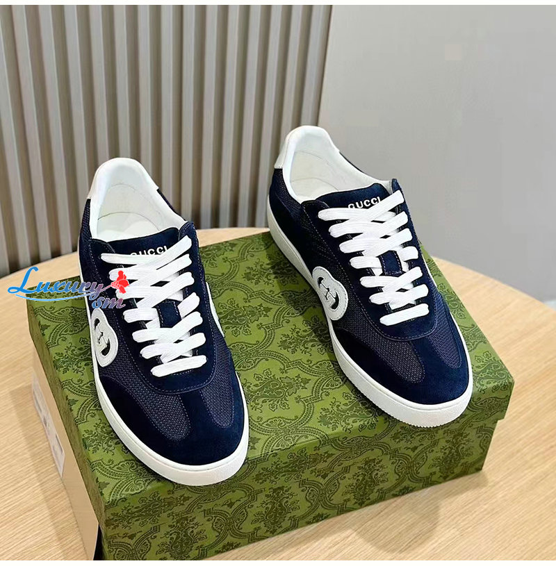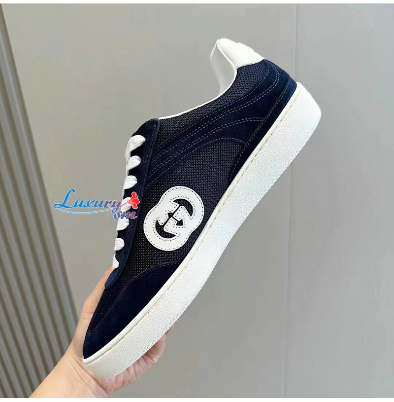 GUCCI-791742 4141 구찌 네이비 스웨이드 인터로킹 G 스니커즈 남여공용