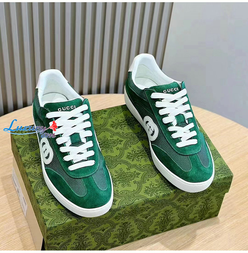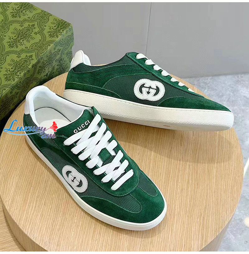 GUCCI-791742 3143 구찌 그린 스웨이드 인터로킹 G 스니커즈 남여공용