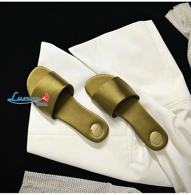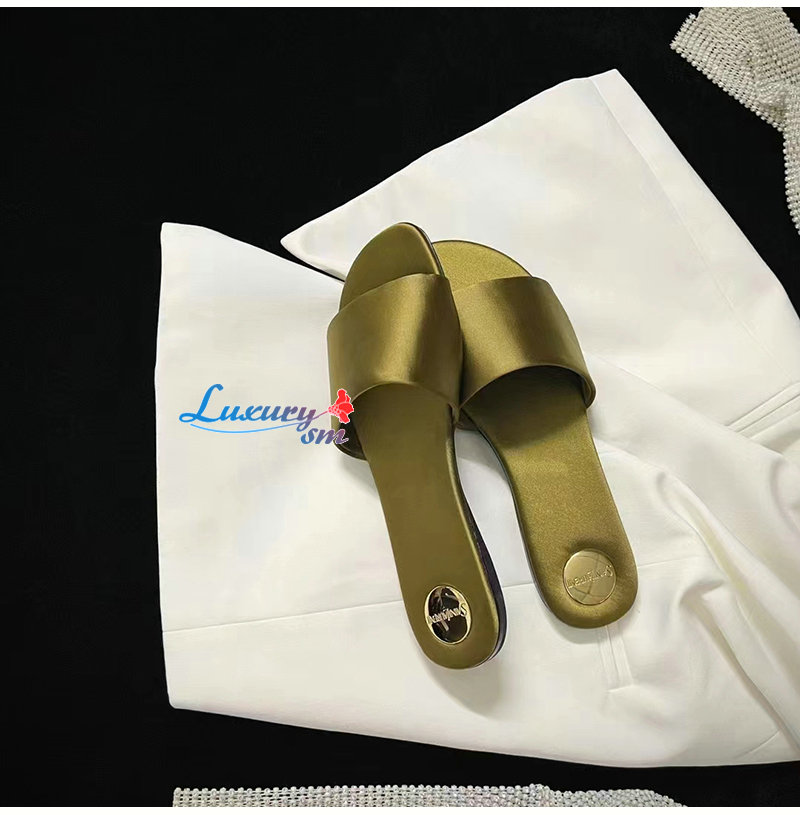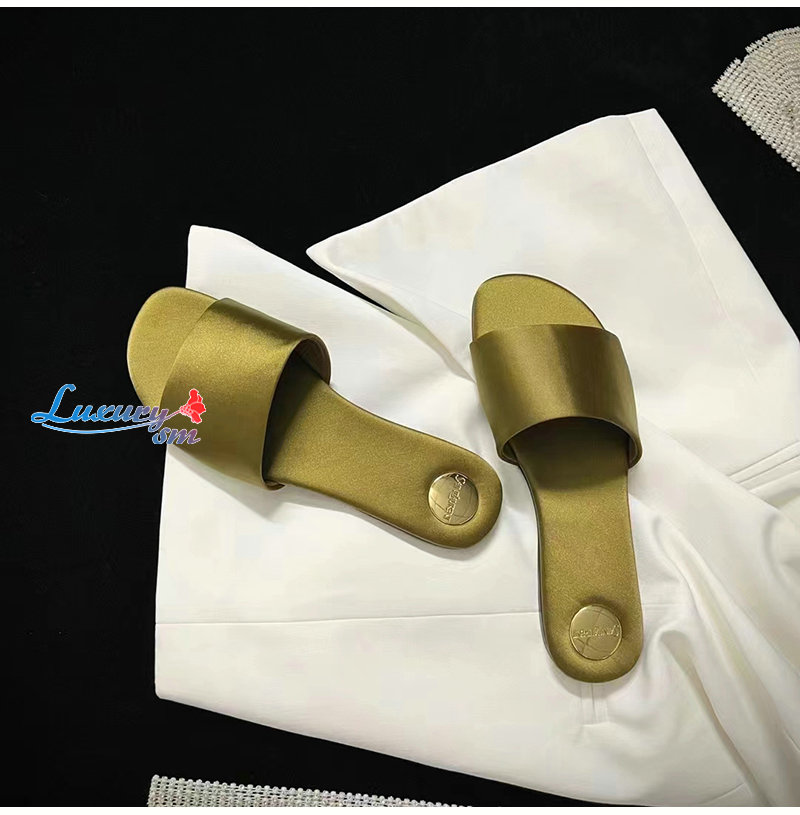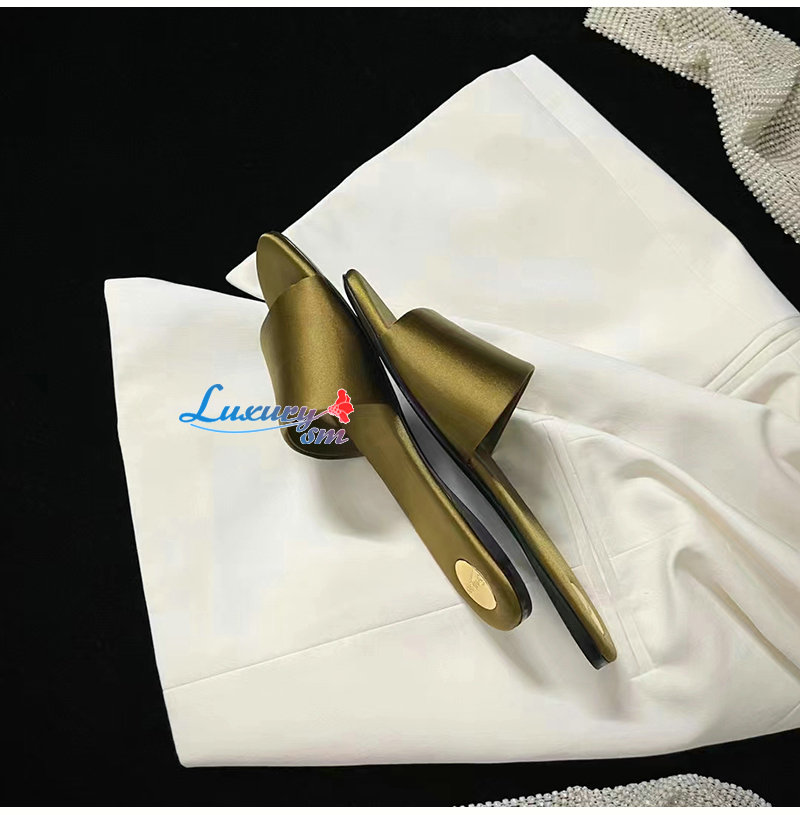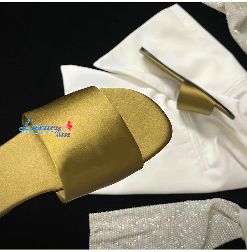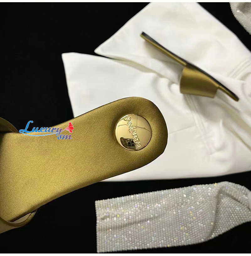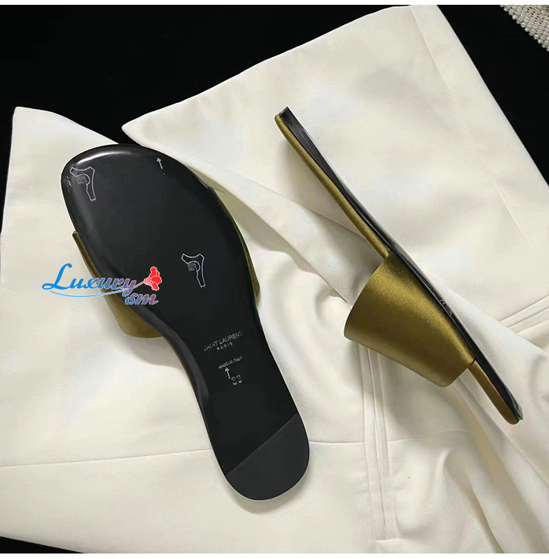 SAINT LAURENT-776066 생 로랑 골드 새틴 크레이프 CARLYLE 슬라이드