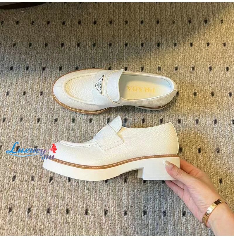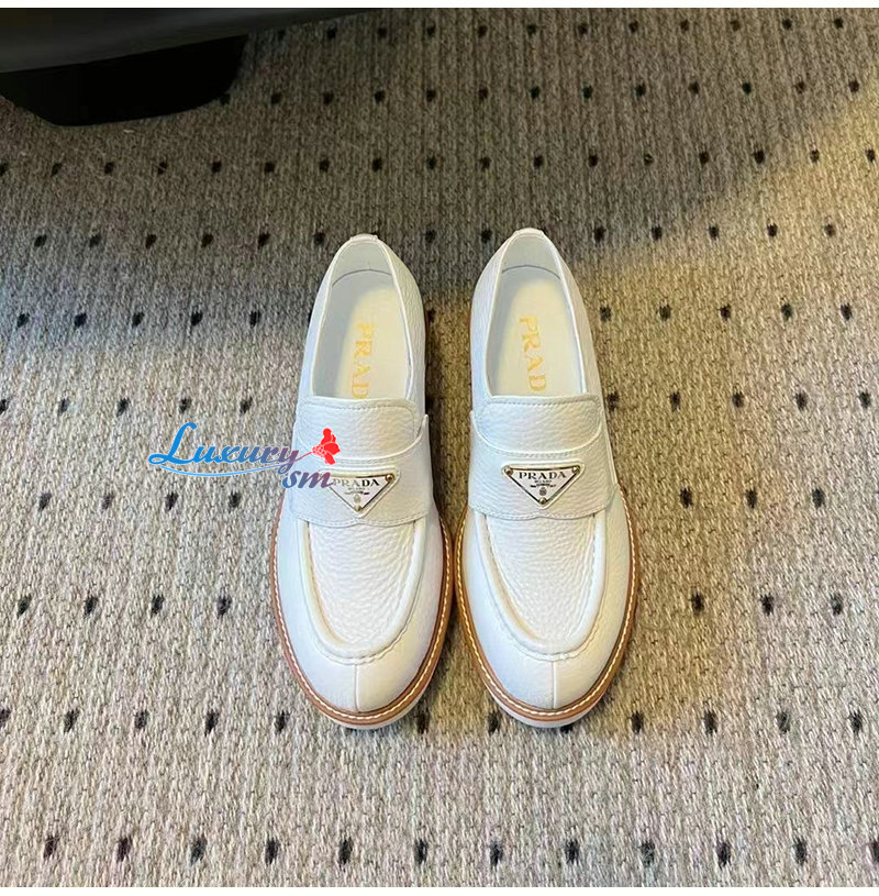 PRADA-1D442N 프라다 아이보리 가죽 트라이앵글 로고 로퍼 여성용