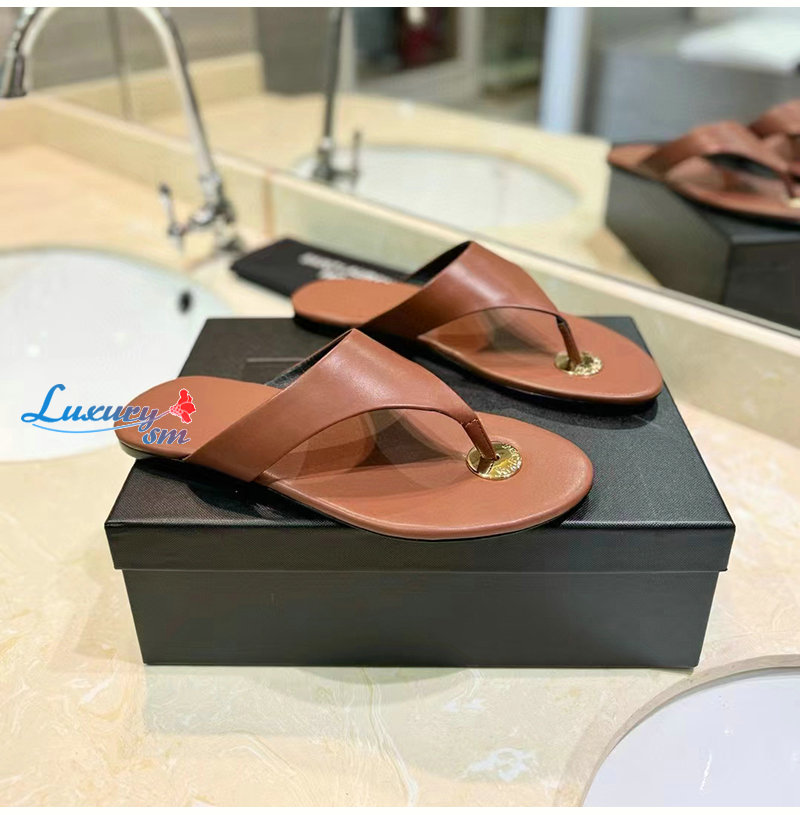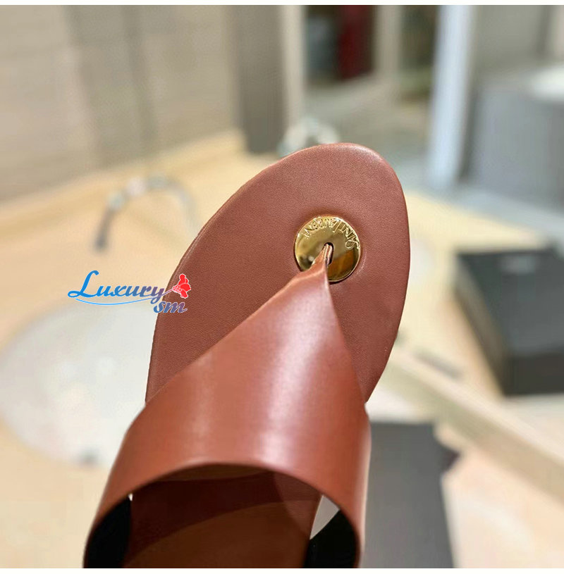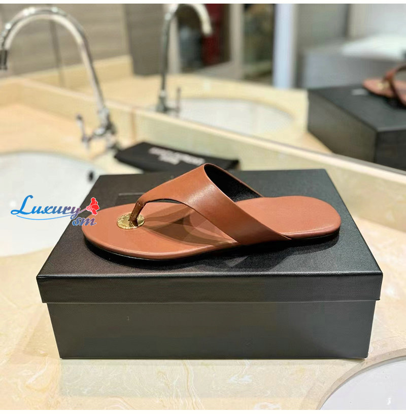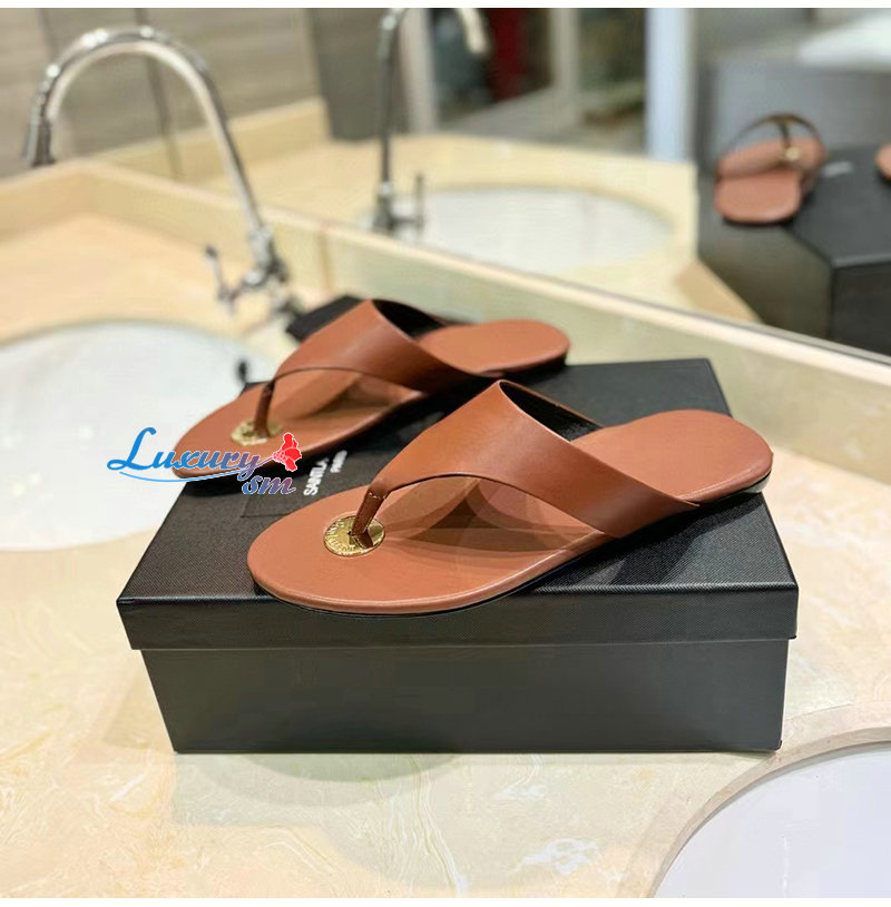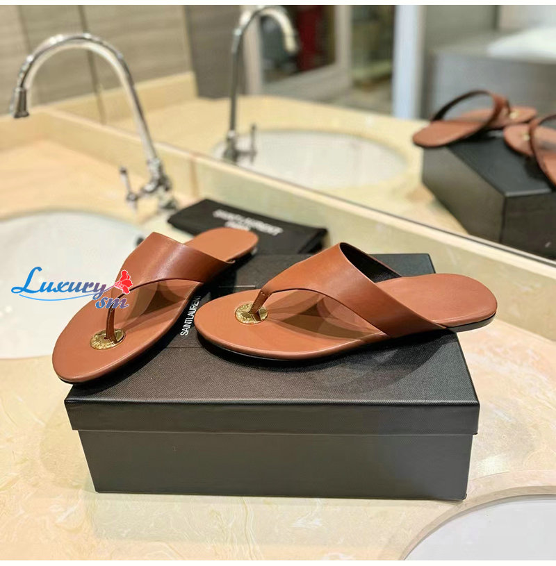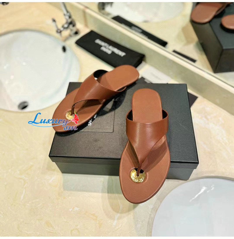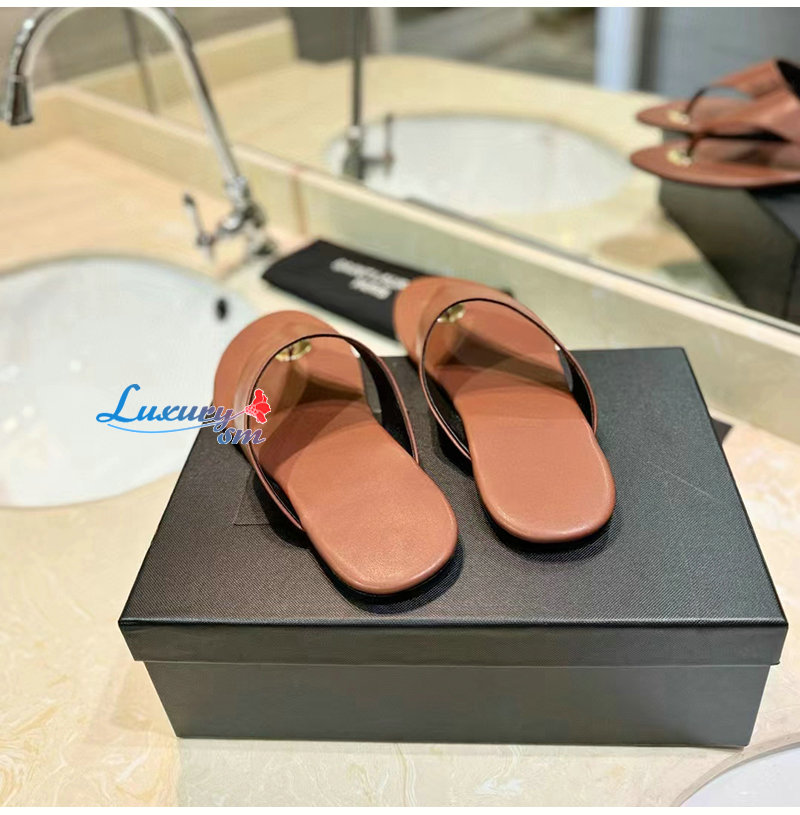 SAINT LAURENT-786971 생 로랑 브라운 램스킨 KOUROS 슬라이드 여성용