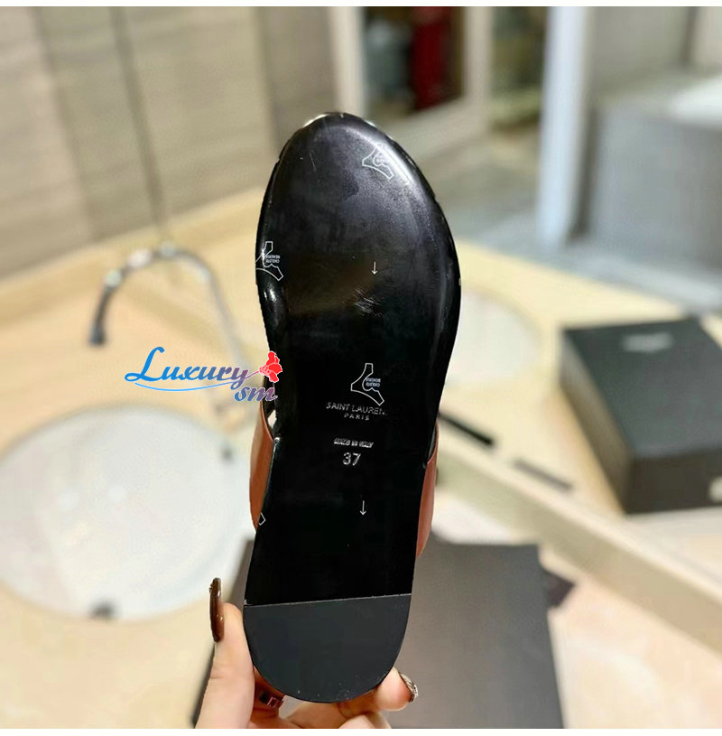 솔에 Saint Laurent 문구가 인그레이빙된 메달리온.