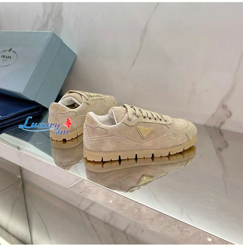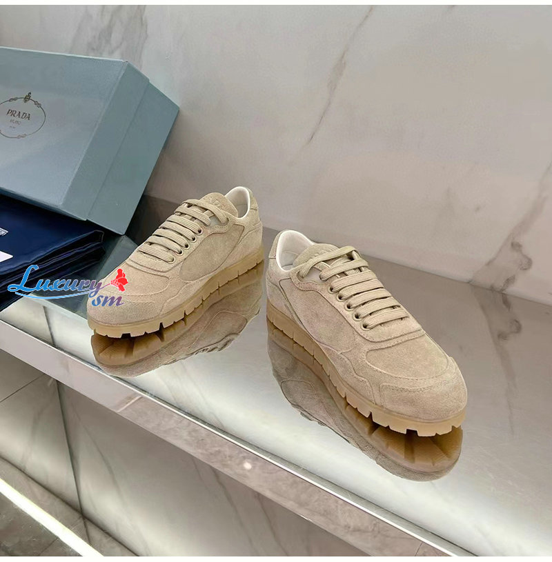 PRADA-1E709N 프라다 에크루 페이드 스웨이드 스니커즈 여성용
