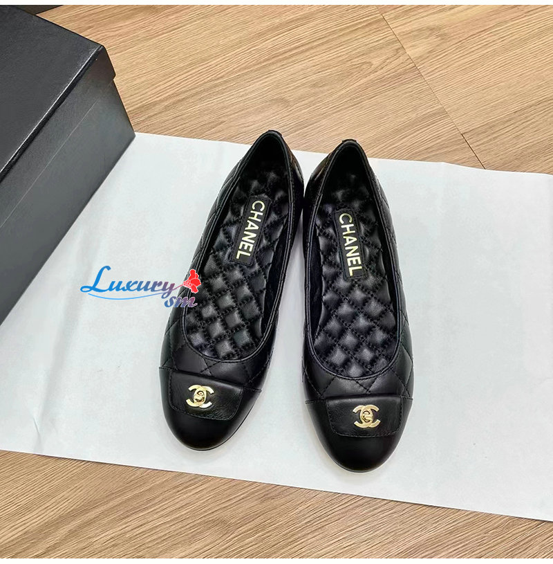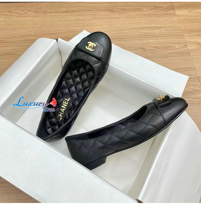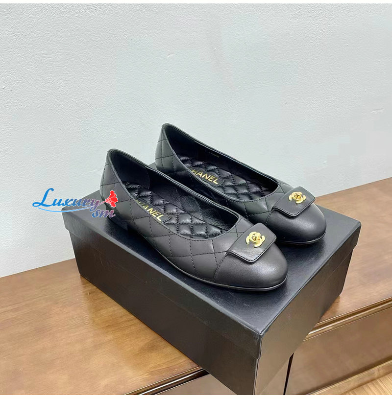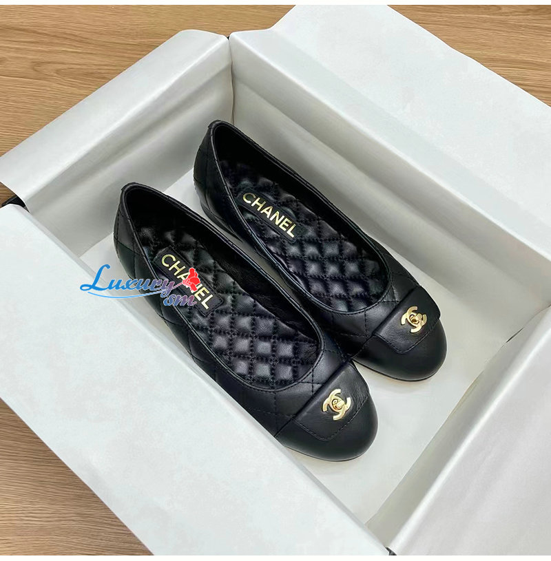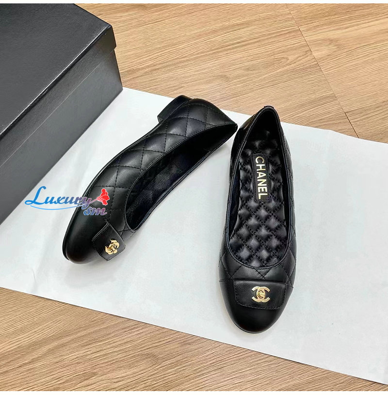 CHANEL-G45879 샤넬 블랙 카프스킨 플랫 슈즈