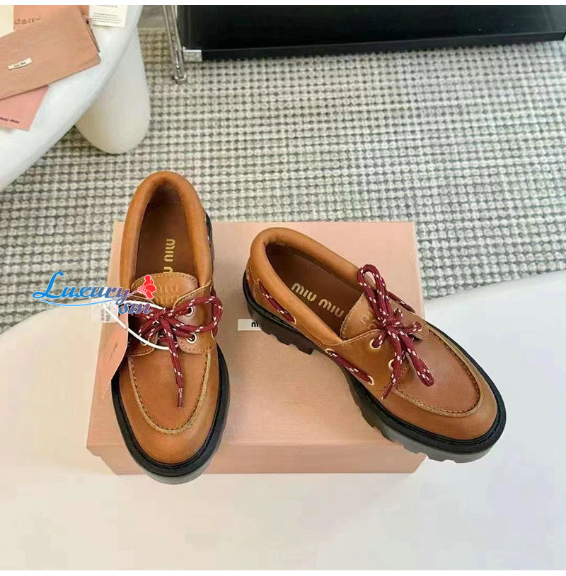 MIUMIU-5D293E 미우미우 코냑 가죽 로퍼