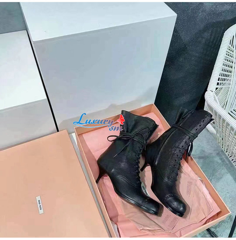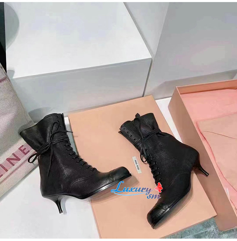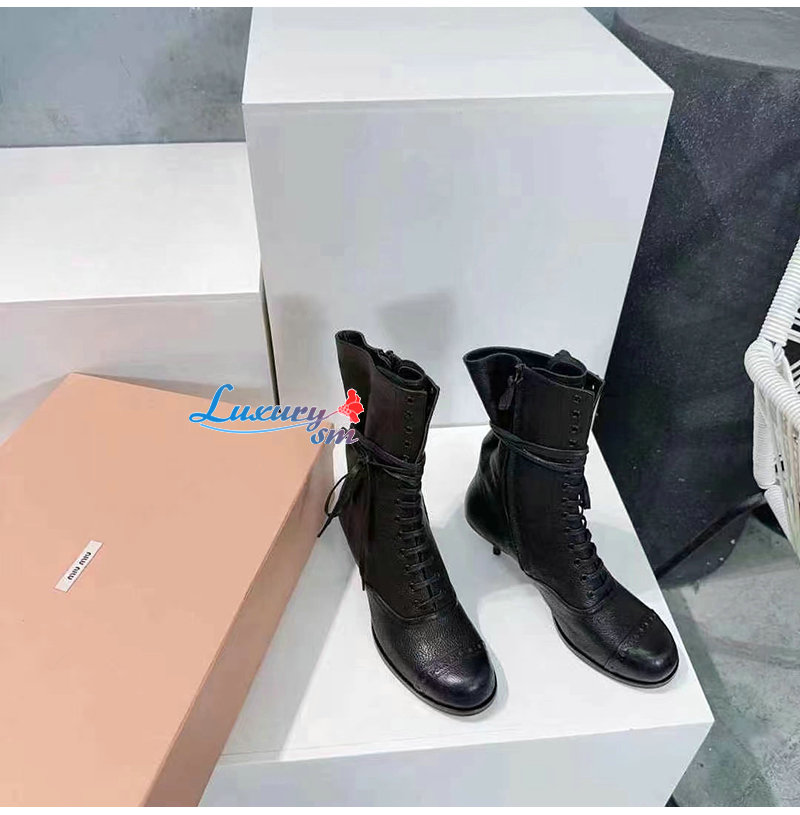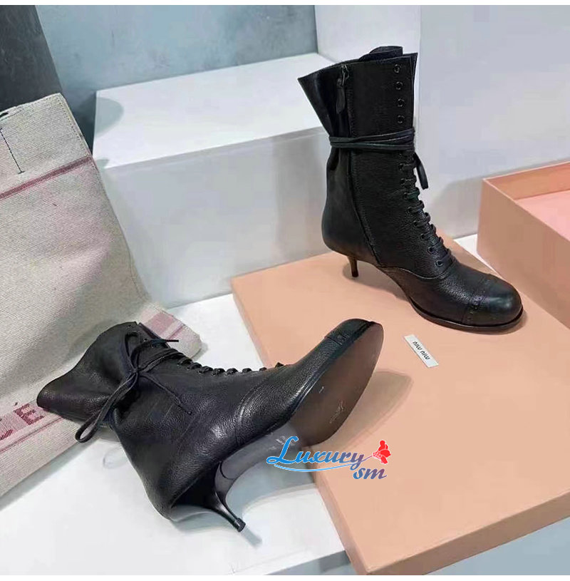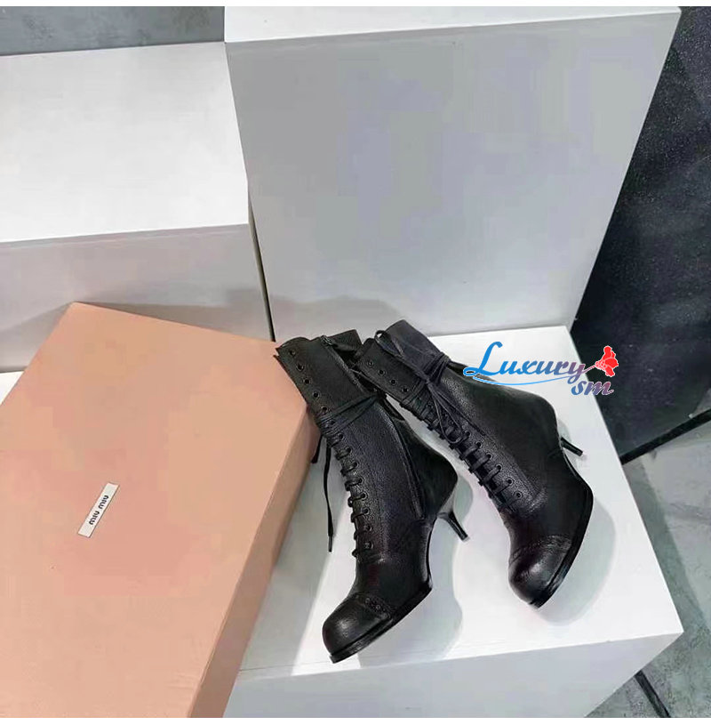 MIUMIU-5U323E 미우미우 블랙 가죽 레이스 부티