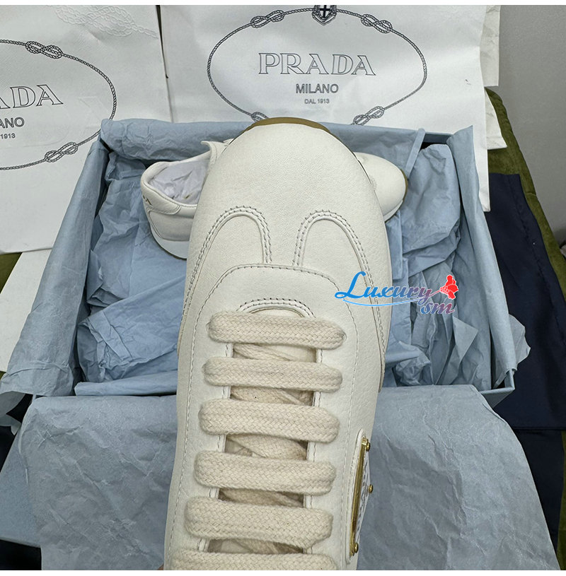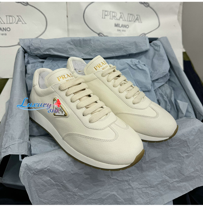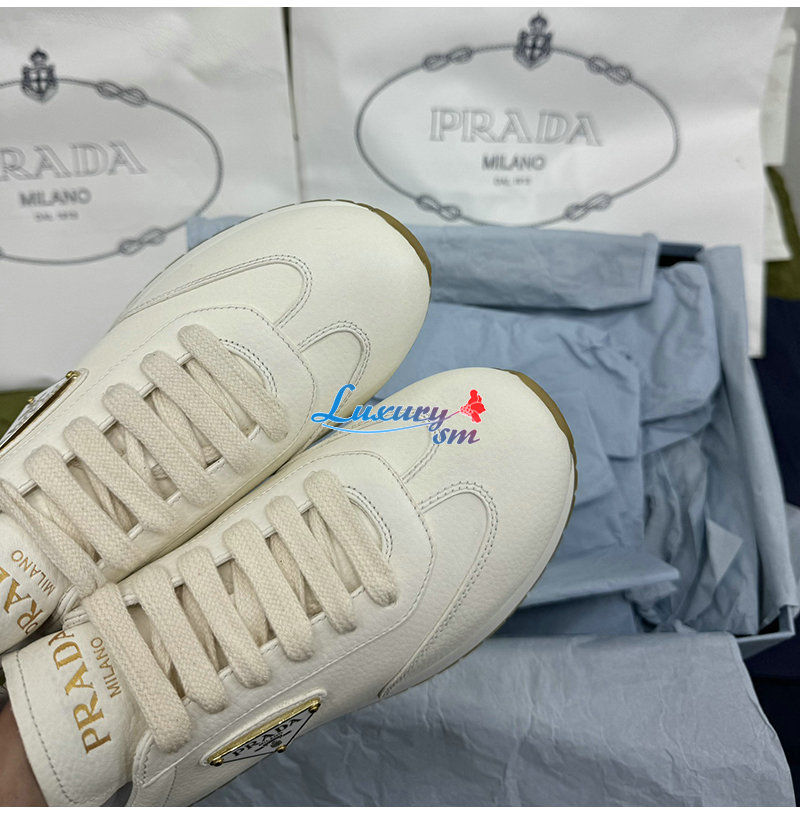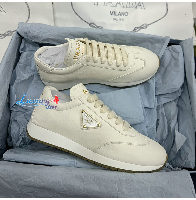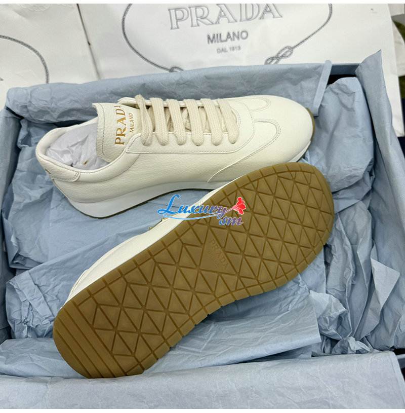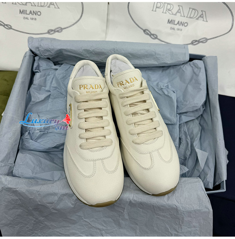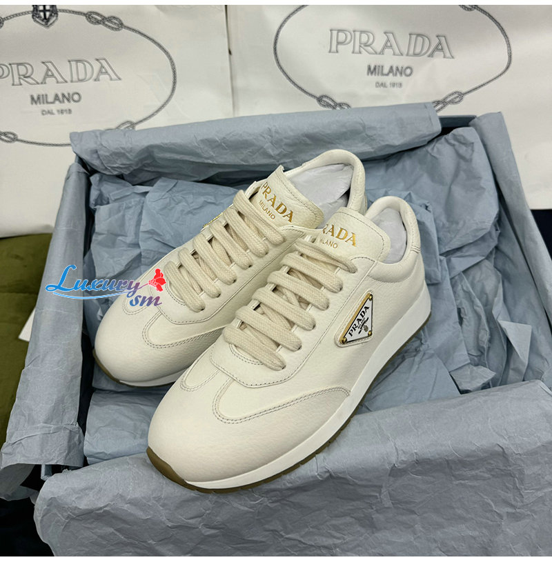 PRADA-2EG436 프라다 아이보리 가죽 트라이앵글 로고 스니커즈 여성용