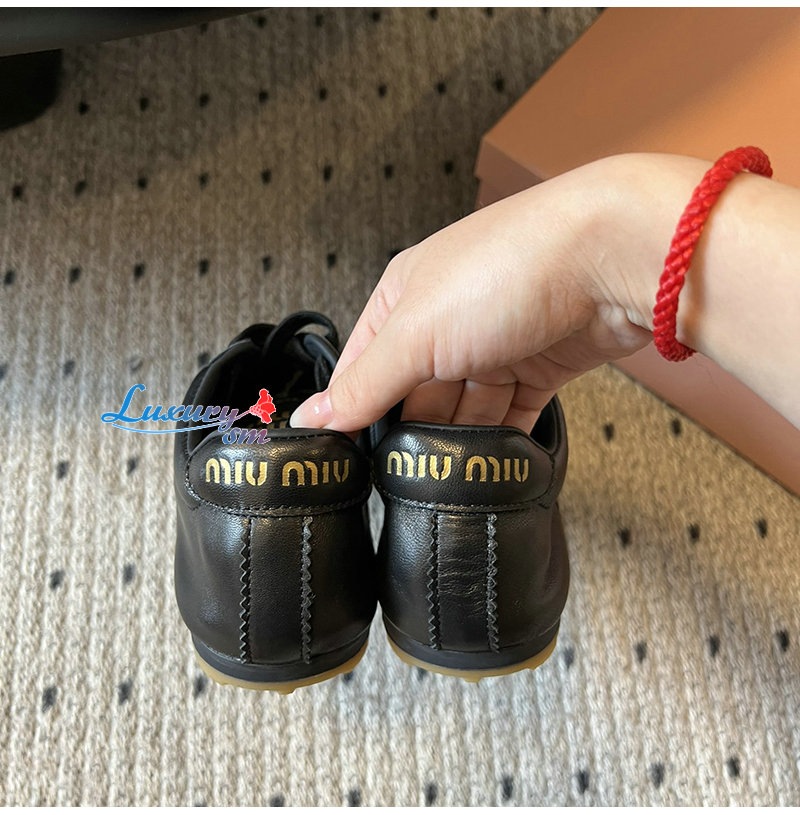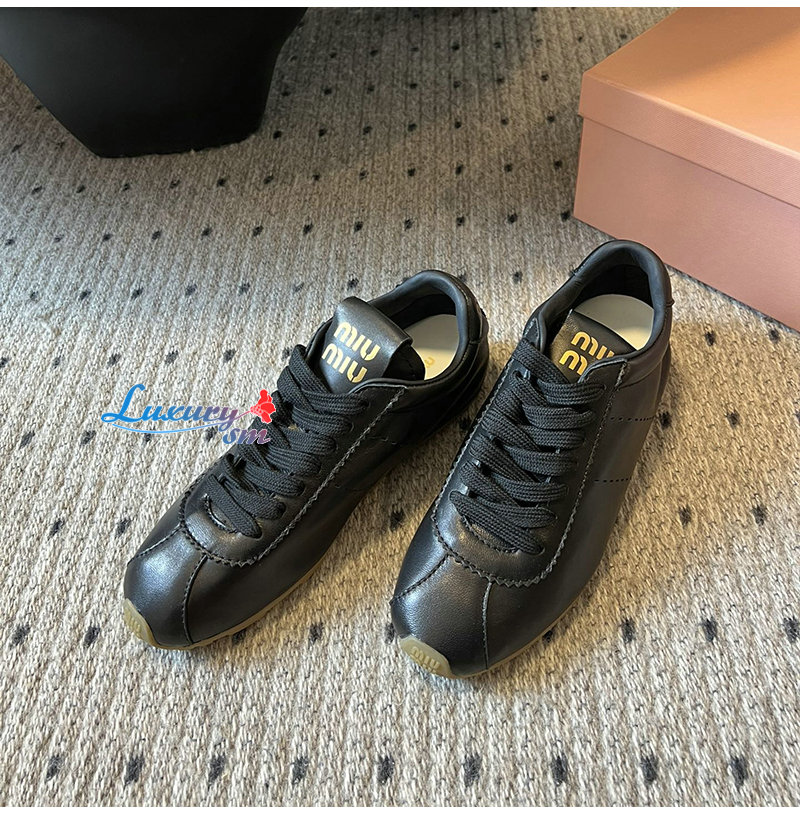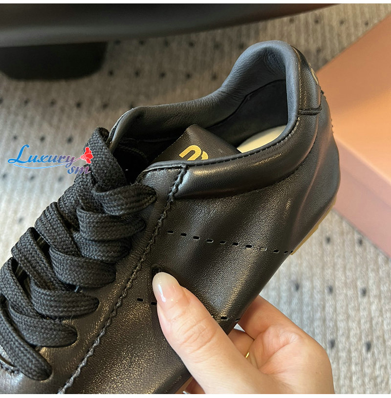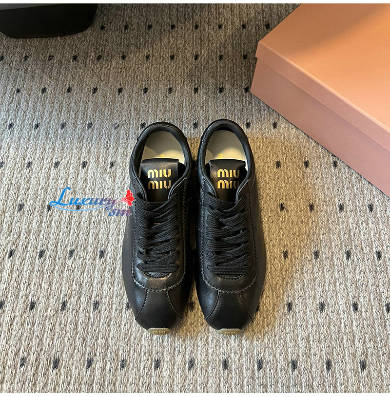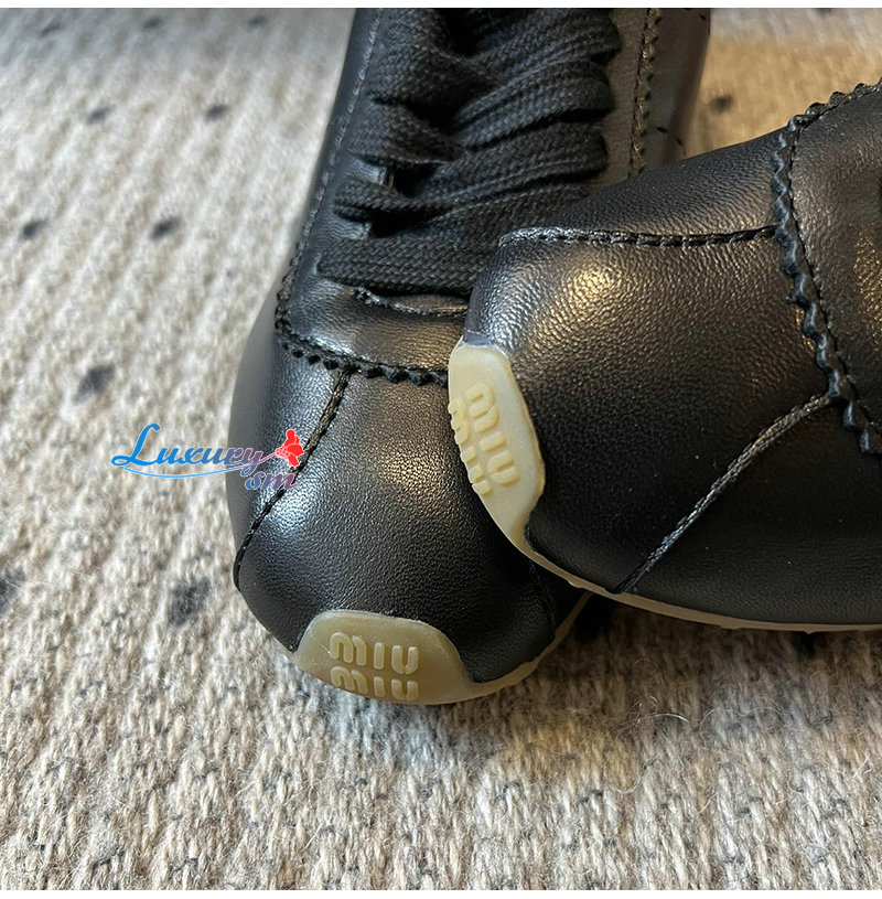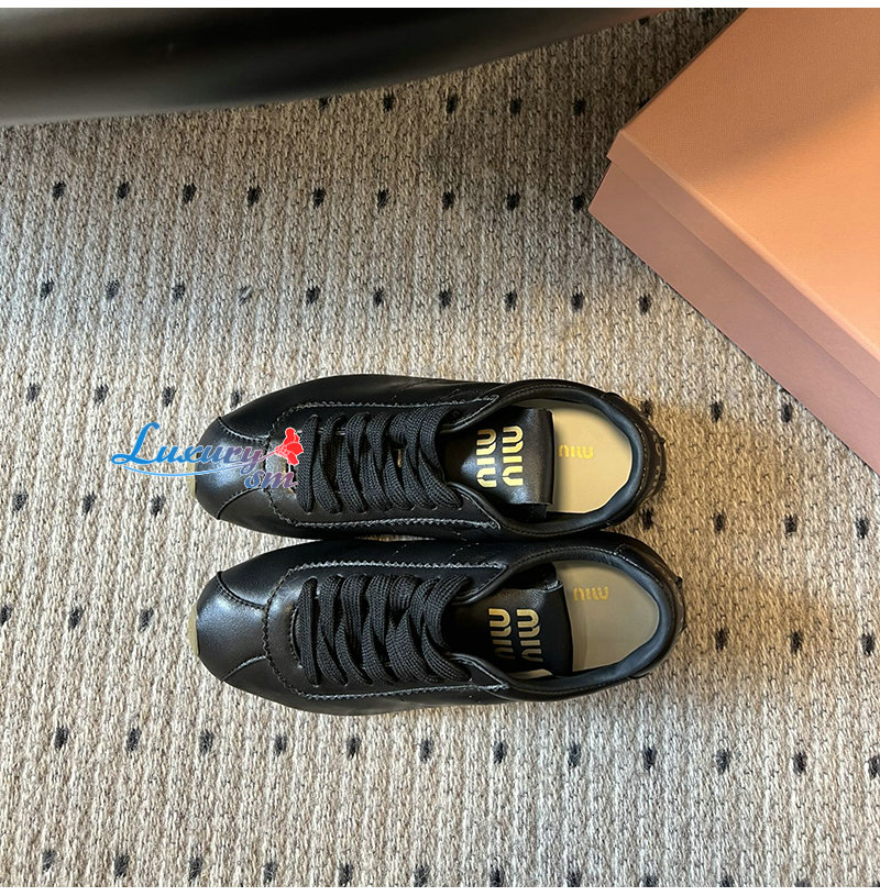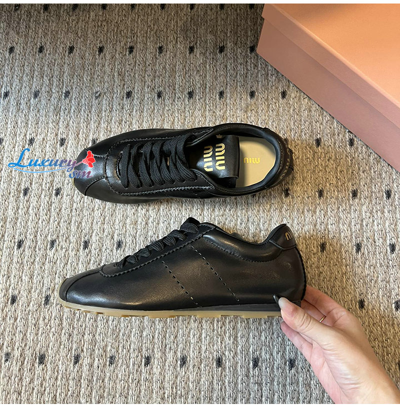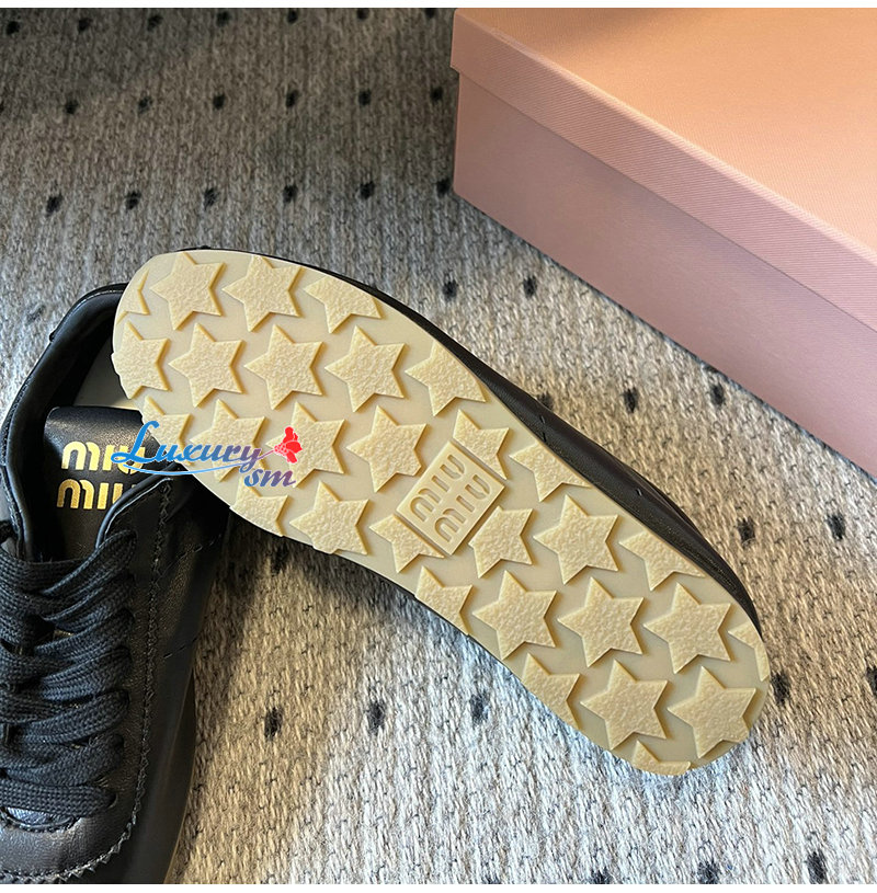 MIUMIU-5E114E 미우미우 블랙 플룸 나파 가죽 스니커즈 여성용