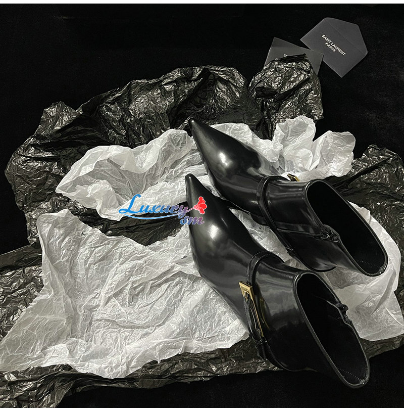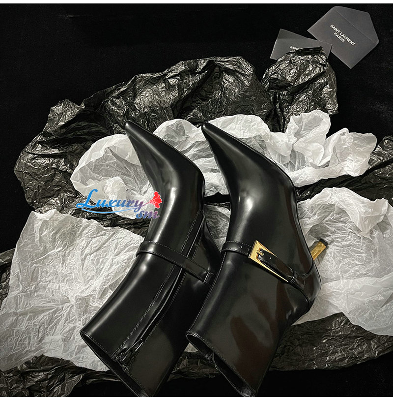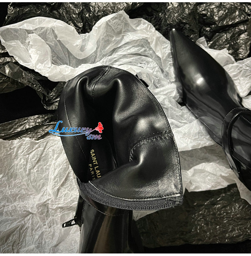 SAINT LAURENT-806645 생 로랑 블랙 글레이즈드 가죽 LEE 부티