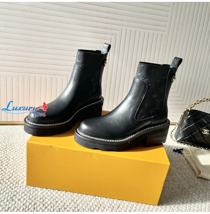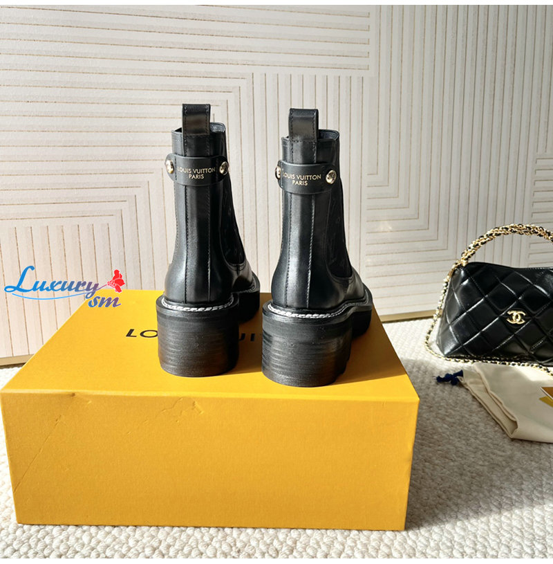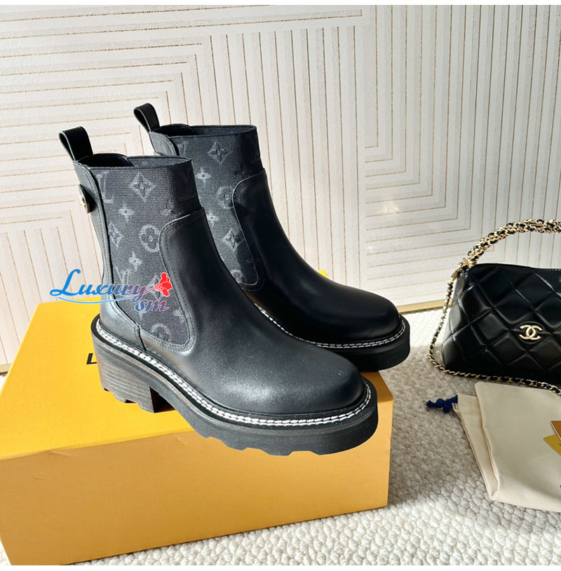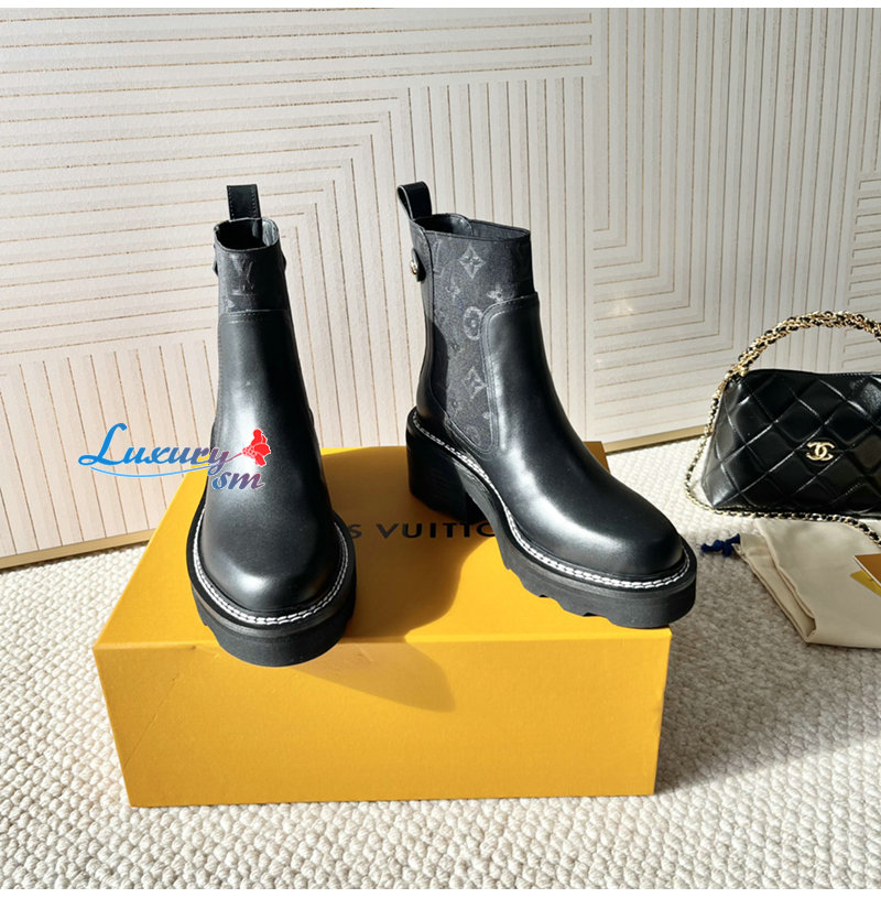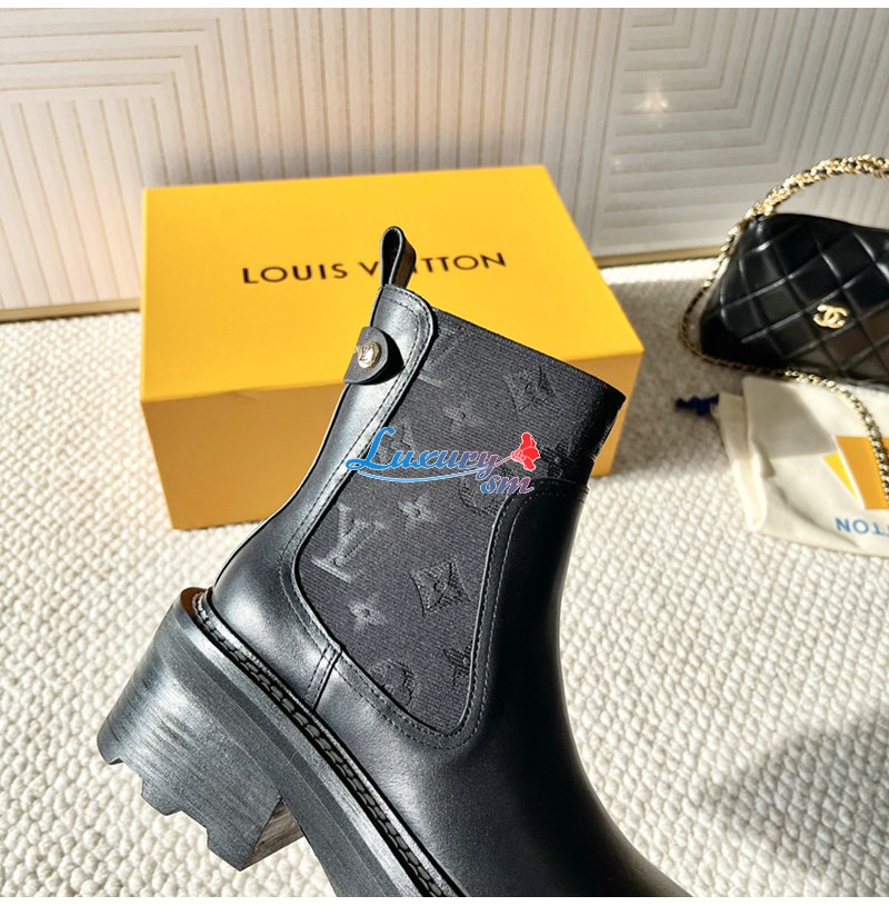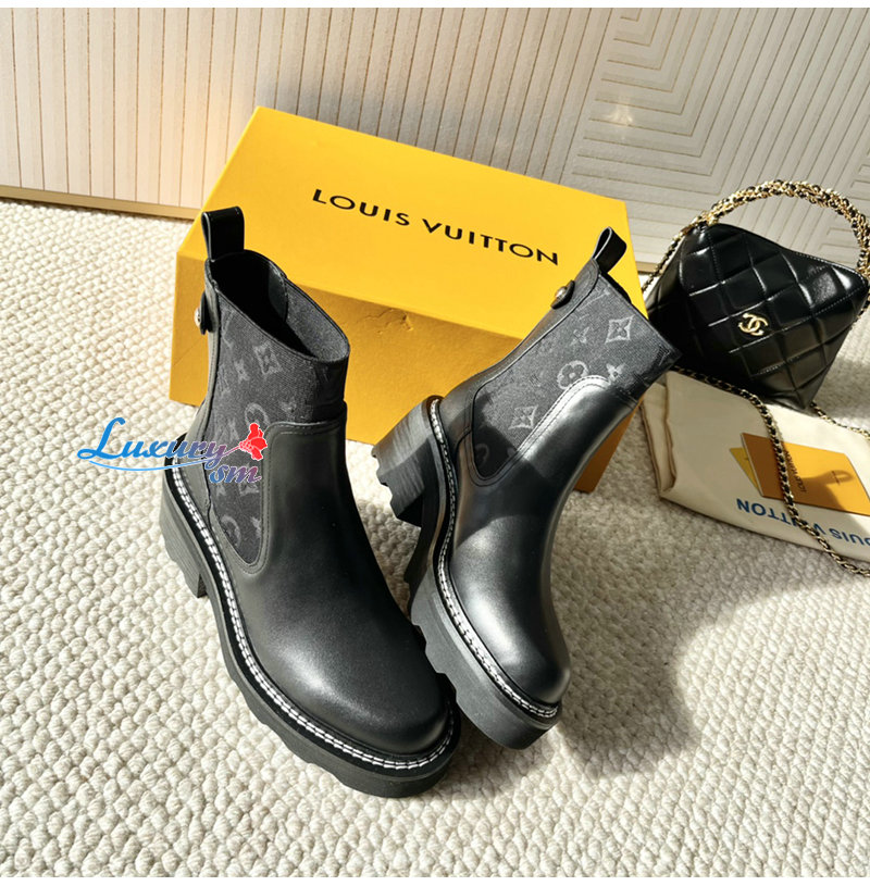 LOUIS VUITTON-1AGV90 루이비통 블랙 LV 보부르 앵클 부츠 여성용