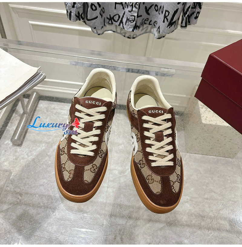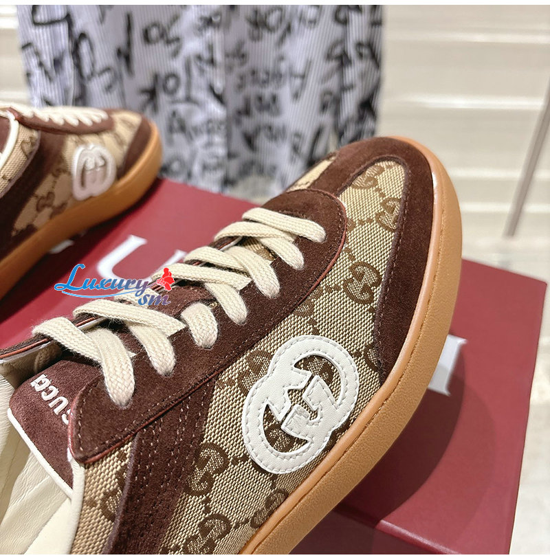 GUCCI-791742 6741 구찌 브라운 스웨이드 인터로킹 G 스니커즈 남여공용
