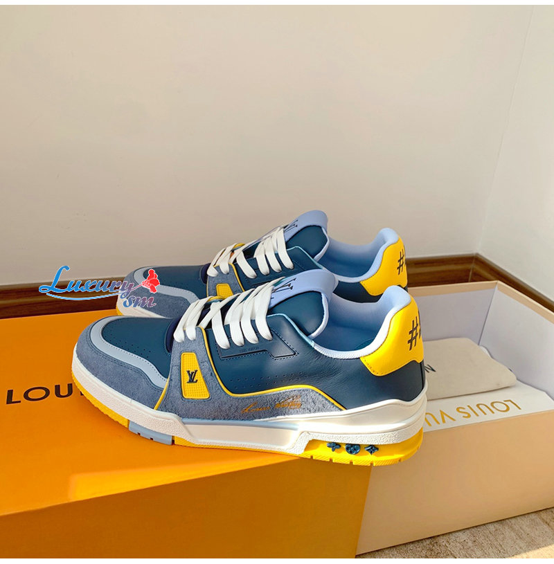 LOUIS VUITTON-1ADHUS 루이비통 블루 LV 트레이너 스니커즈 남여공용
