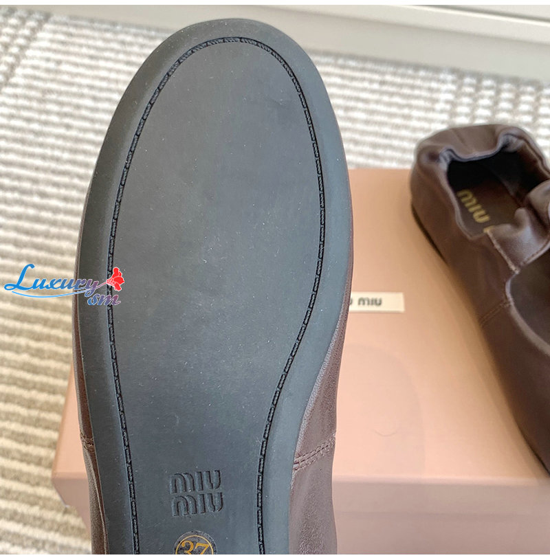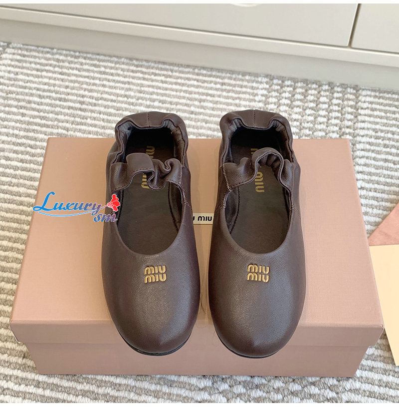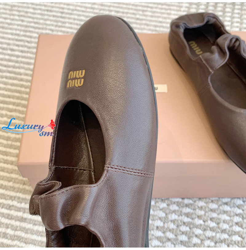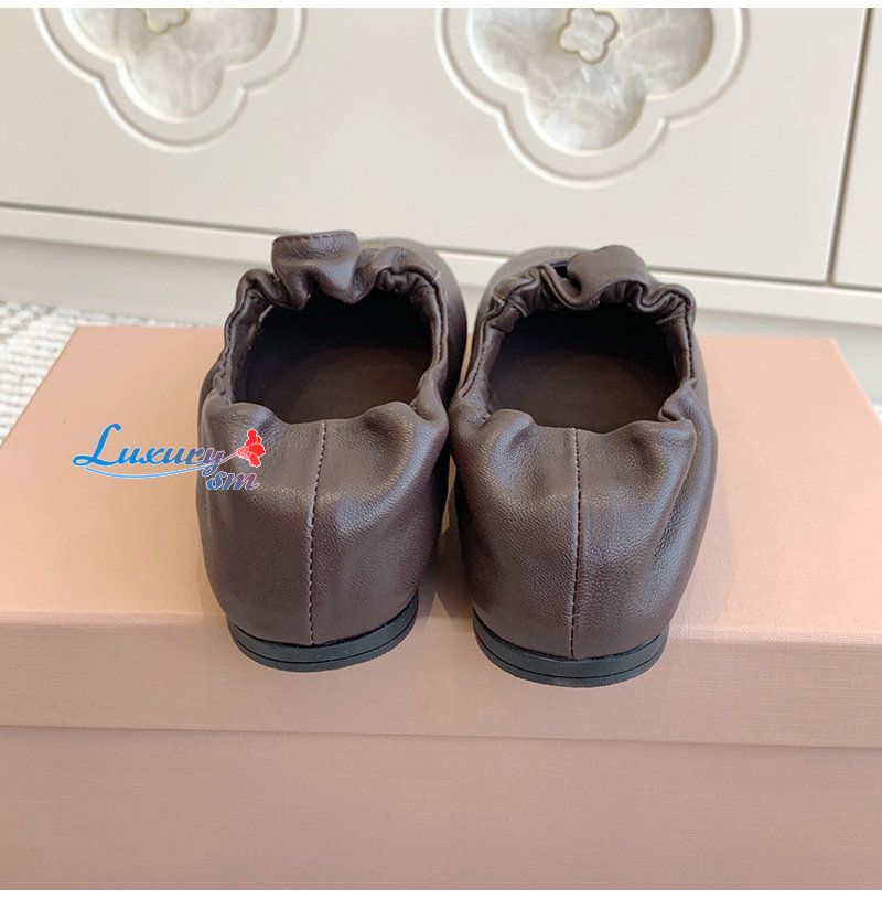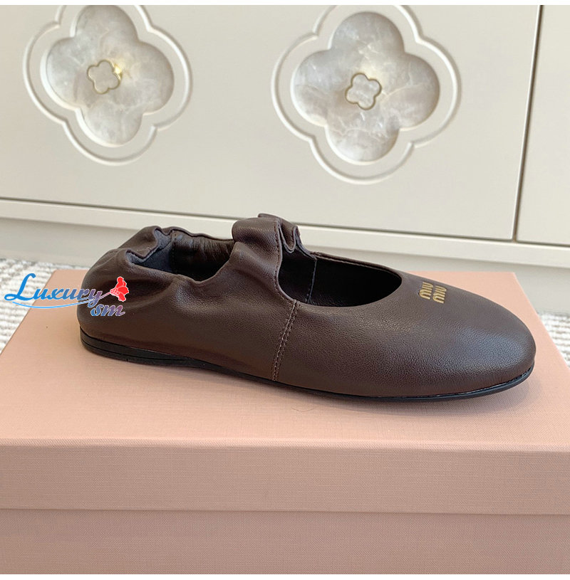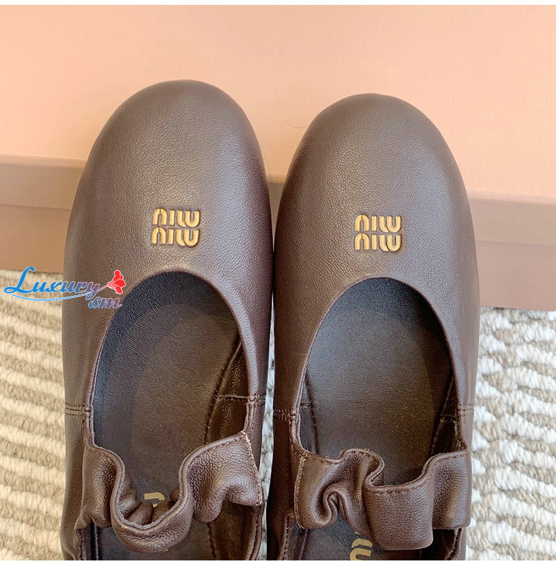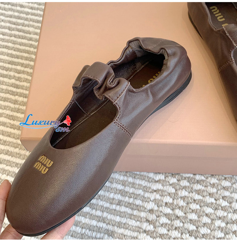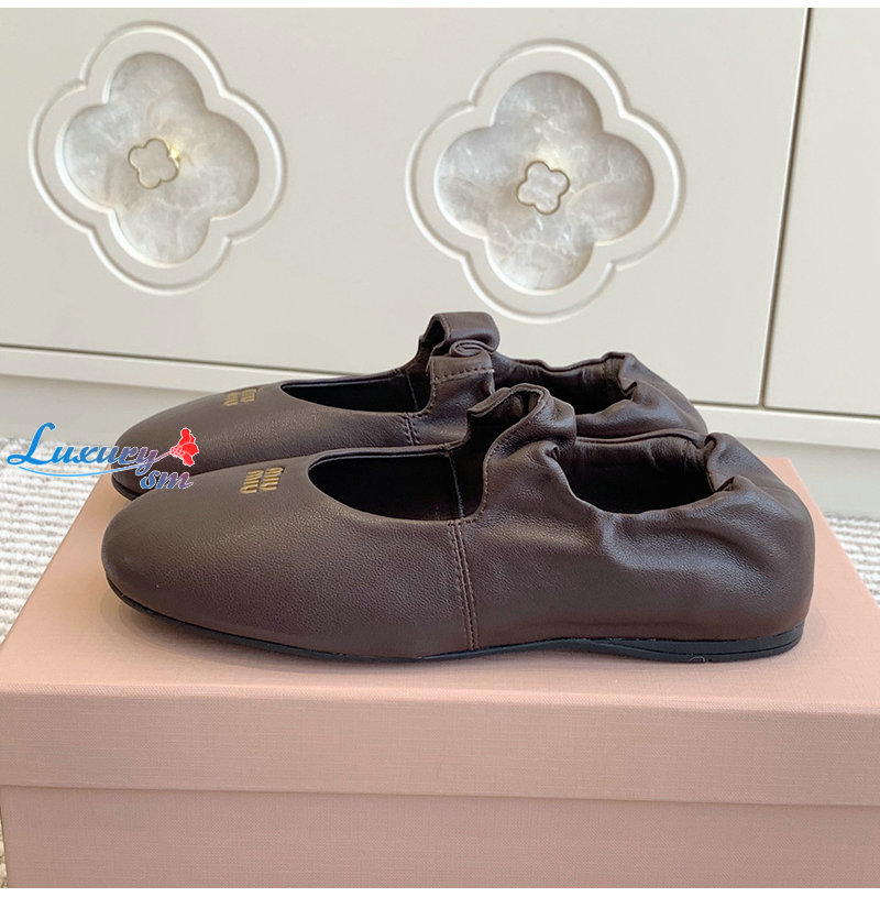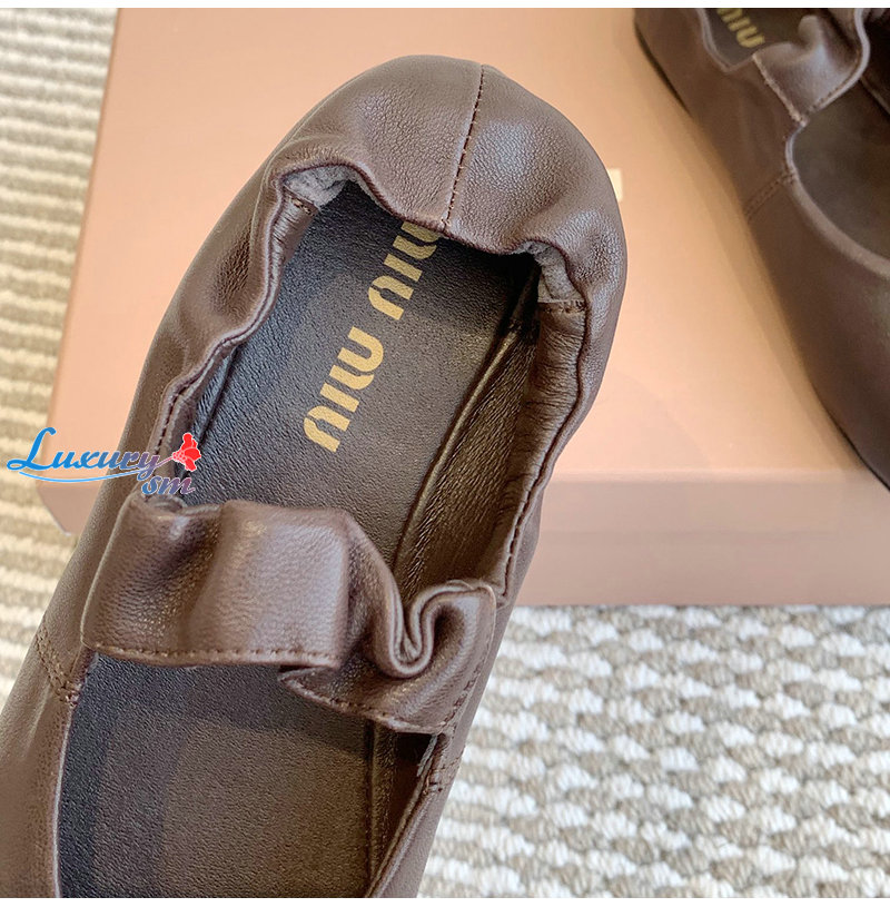 MIUMIU-5F340E 미우미우 브라운 루슈 나파 가죽 발레리나