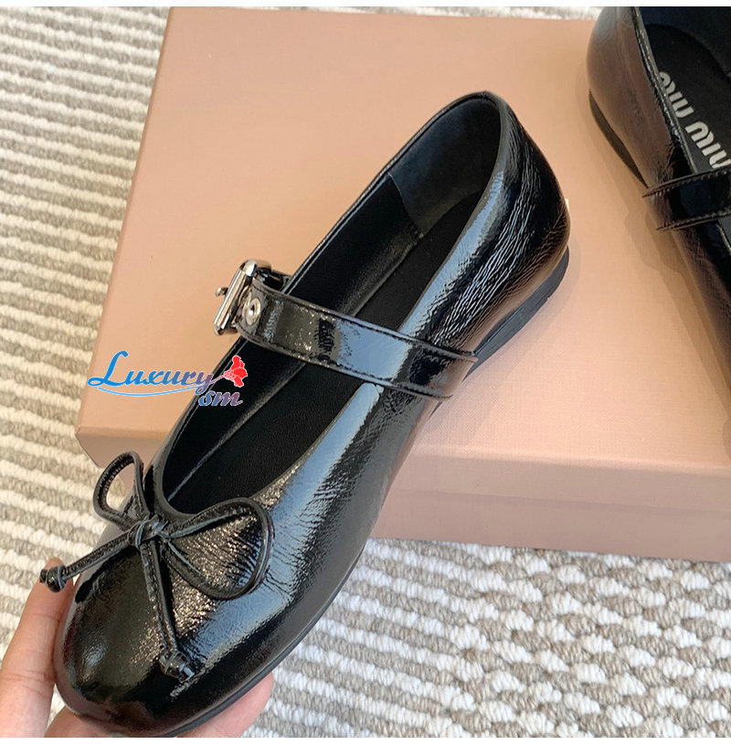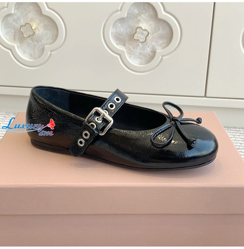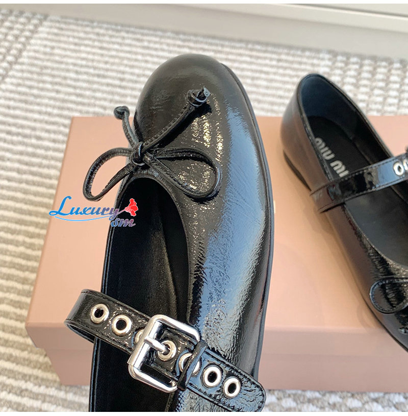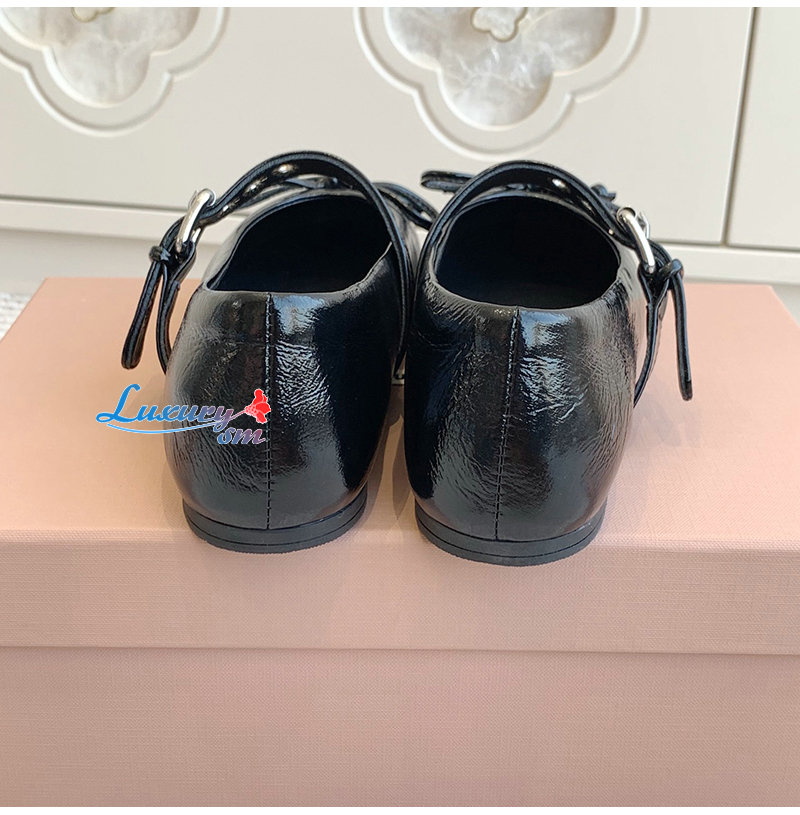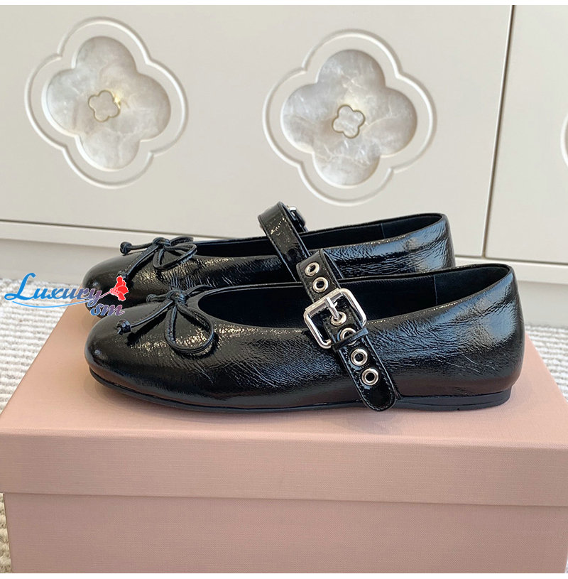 MIUMIU-5F210E 미우미우 블랙 유광 가죽 발레리나 슈즈