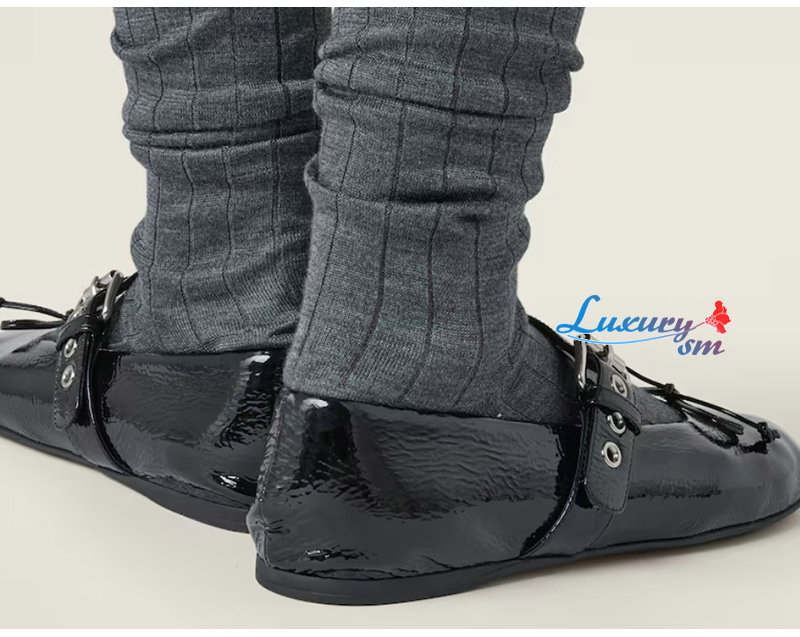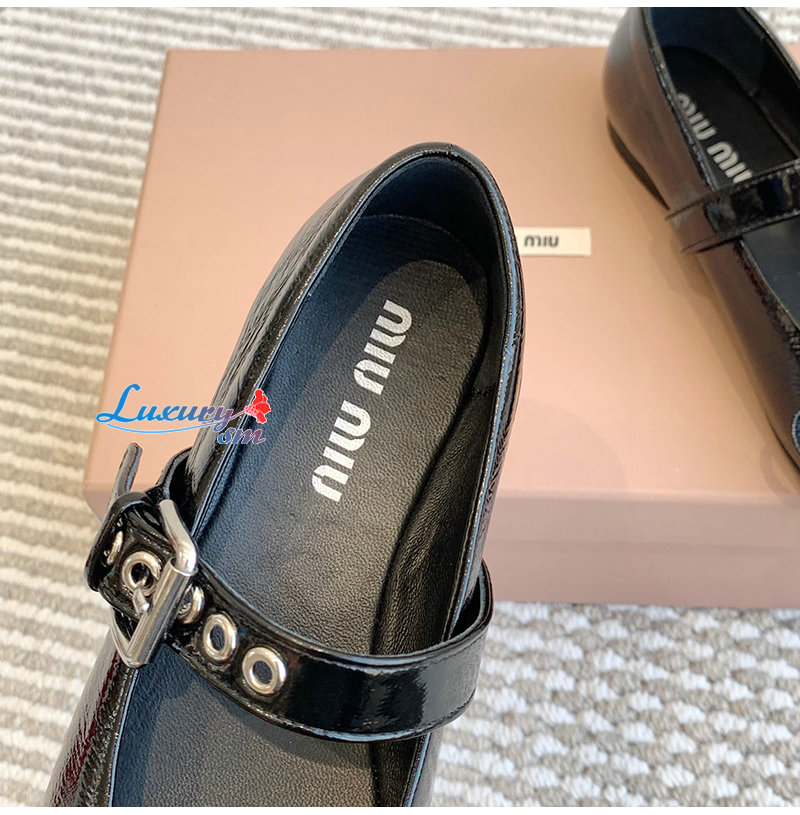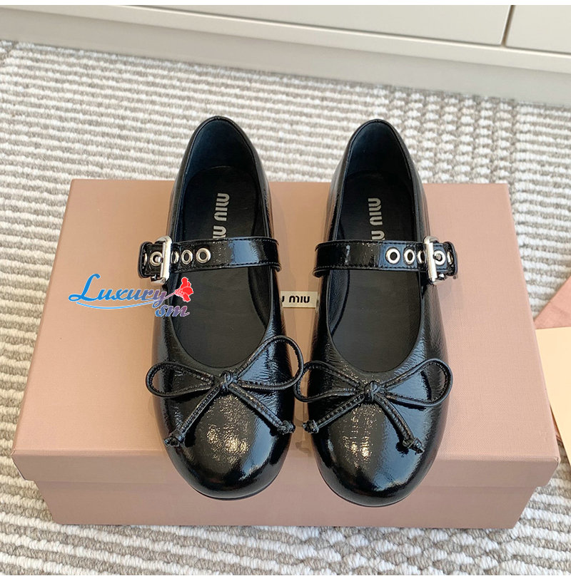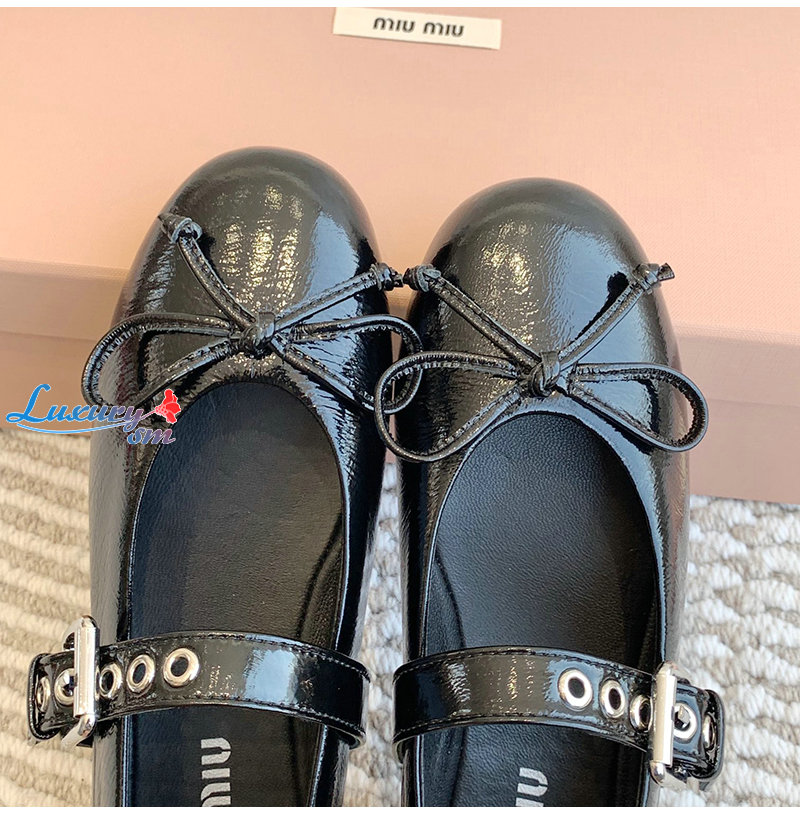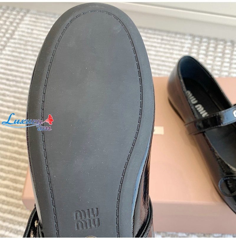 MIUMIU-5F210E 미우미우 블랙 유광 가죽 발레리나 슈즈