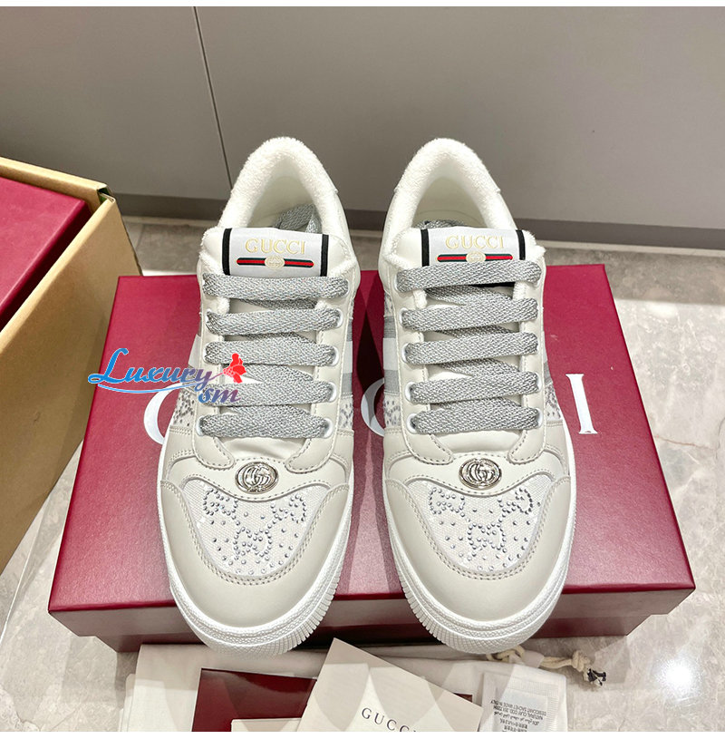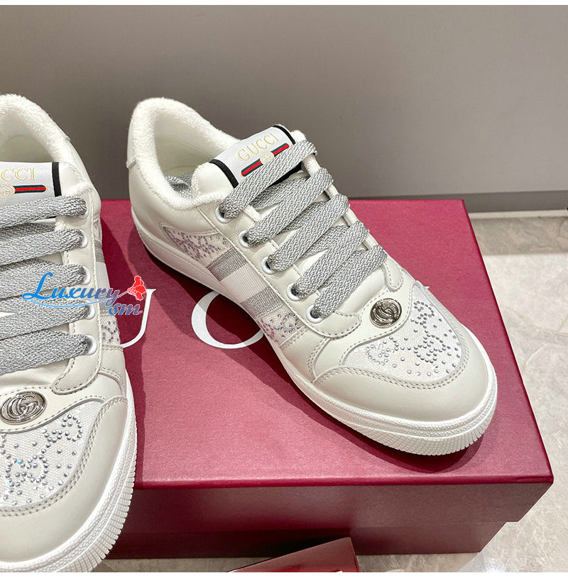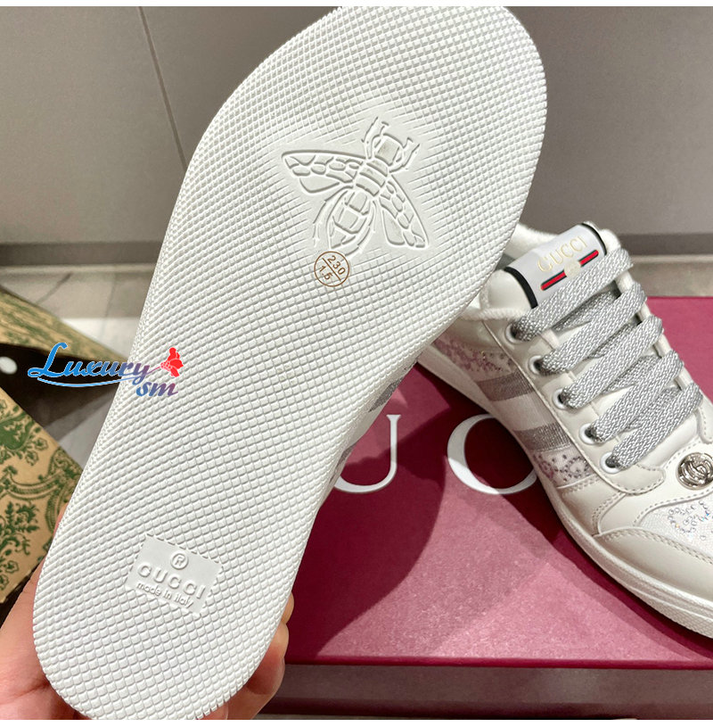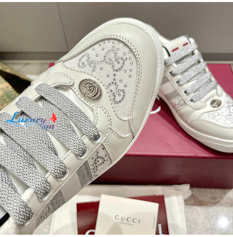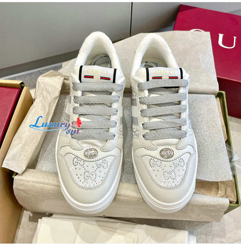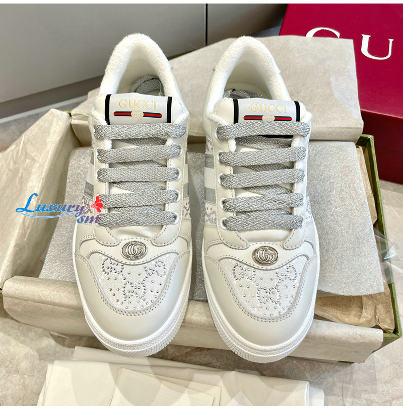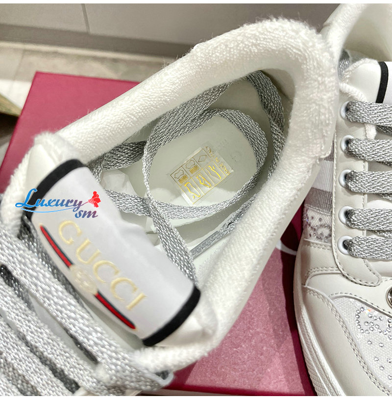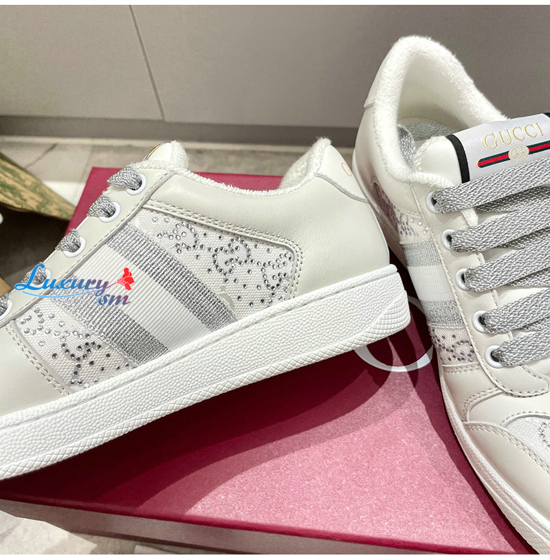 GUCCI-812041 9541 구찌 아이보리 크리스털 장식 스크리너 스니커즈 여성용