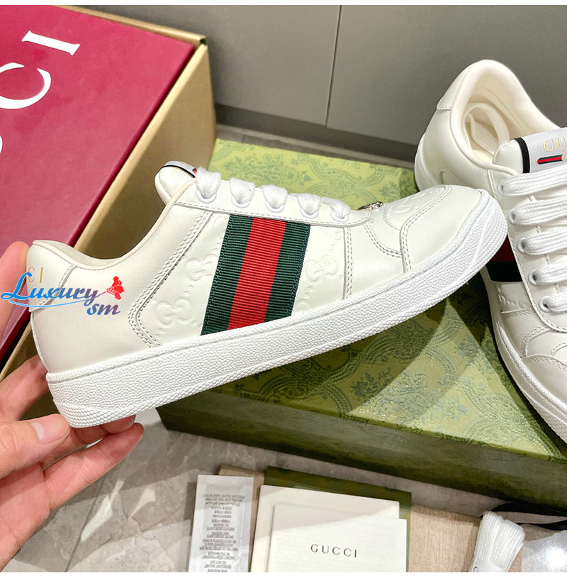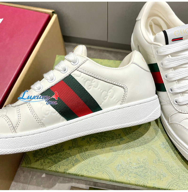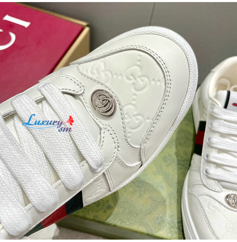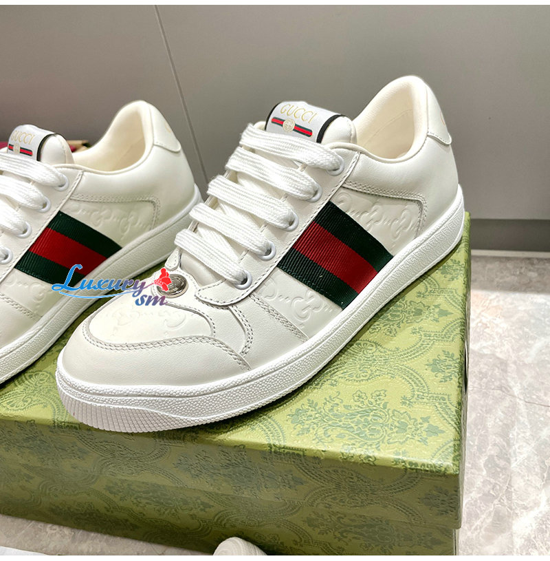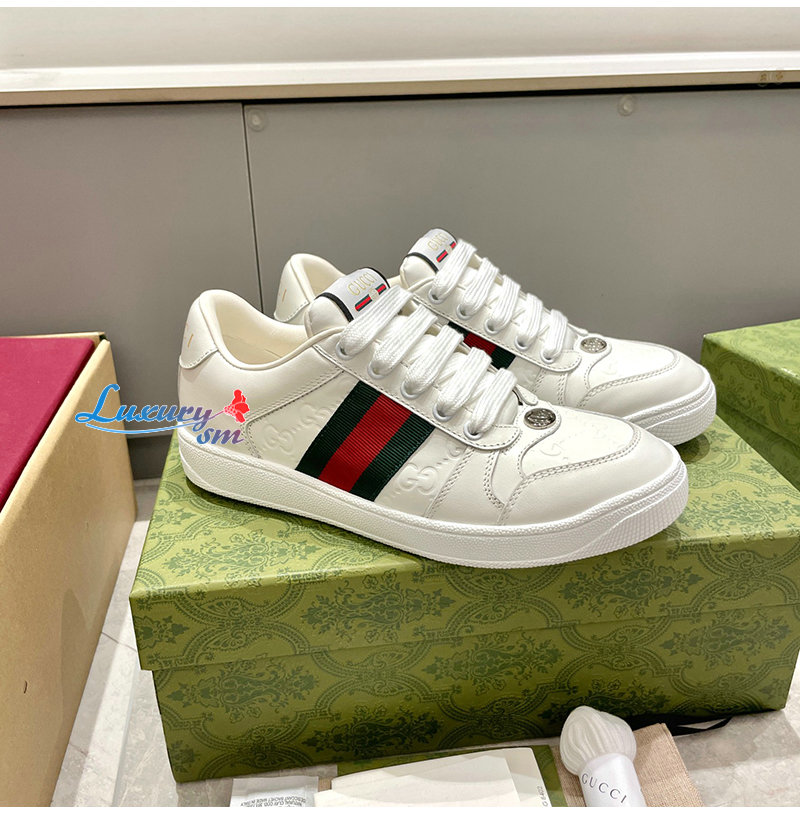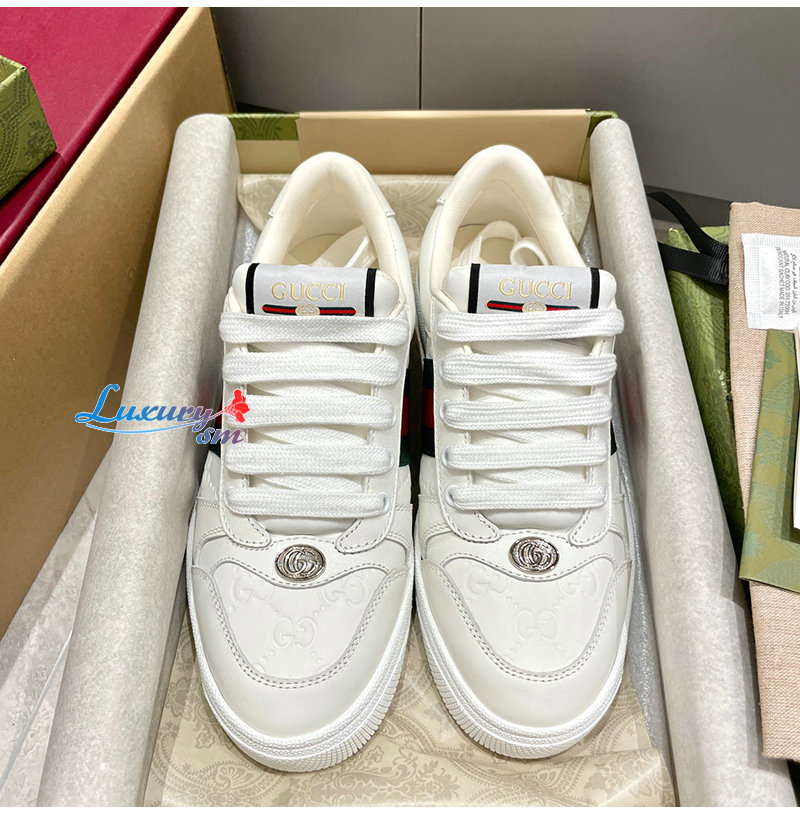 GUCCI-732193 9096 구찌 화이트 가죽 스크리너 스니커즈 여성용