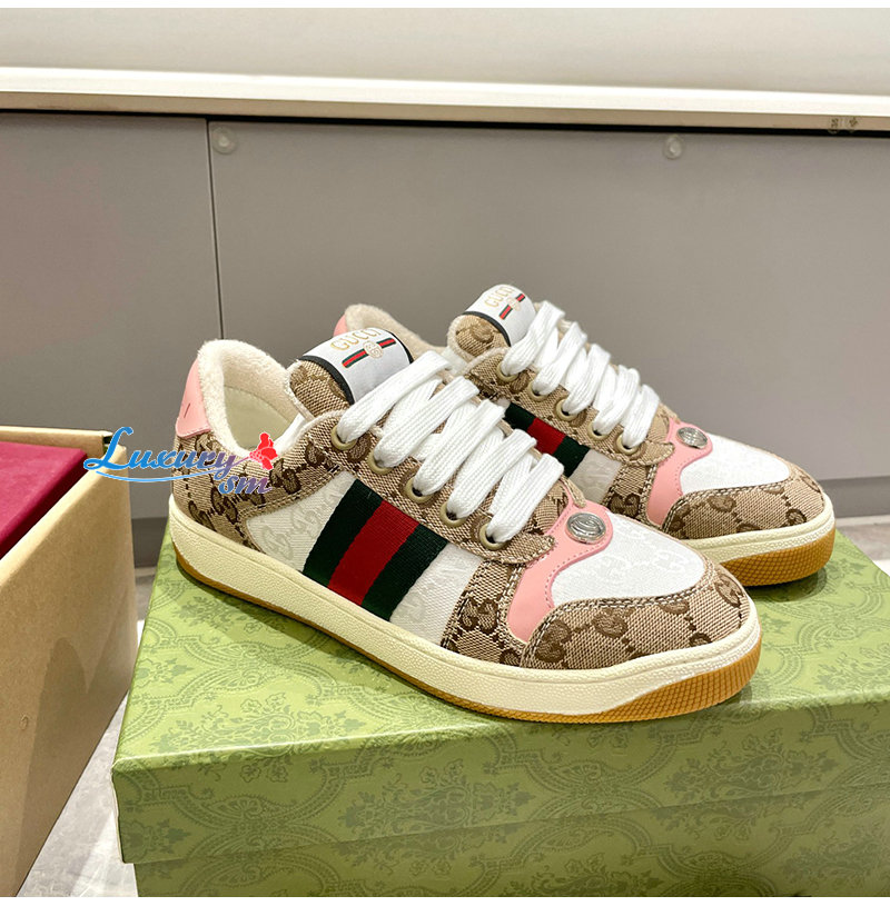 GUCCI-817276 9750 구찌 베이지/핑크 GG 캔버스 스크리너 스니커즈 여성용