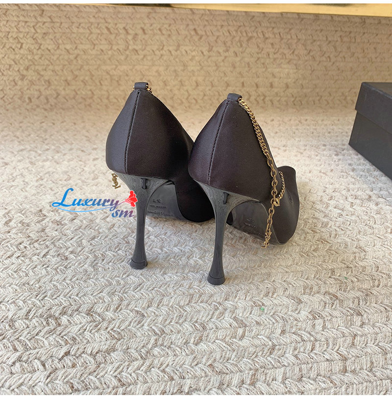 SAINT LAURENT-806021 생 로랑 블랙 새틴 크레이프 regine 펌프스