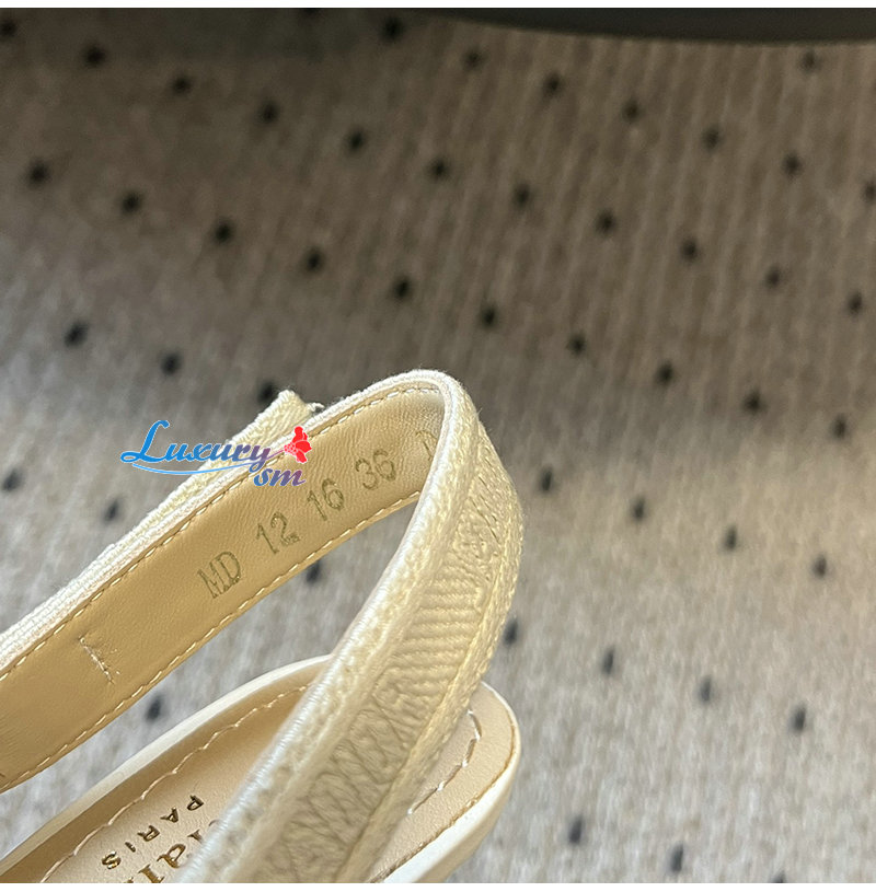 DIOR-KDP866 디올 베이지 스트라이프 자수 코튼 J ADIOR 슬링백 펌프스